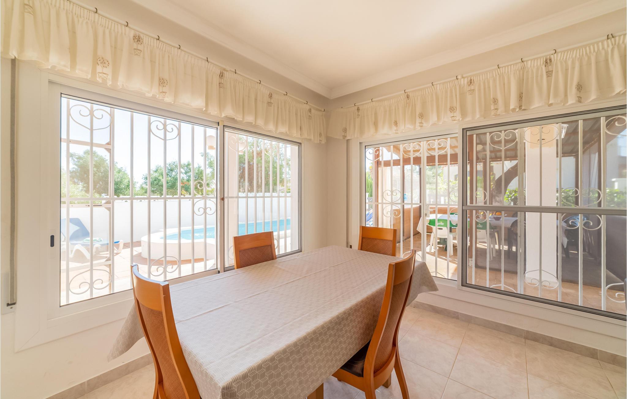 Das geräumige Ferienhaus mit gemütlichem Charakter und einladendem Interieur macht einen warmen Eindruck und bietet den idealen Rahmen für Ruhe und Erholung. Der Ferienort passt gut zu zwei befreundeten Familien. Hier werden Sie und Ihre Lieben herrliche Urlaubstage genießen. Auf der überdachten Terrasse können Sie morgens Ihren Kaffee schlemmen, während sich die große Dachterrasse mit herrlichem Meerblick für das Sonnenbaden eignet. Nach einem langen und heißen Ausflug tut es gut mit einem erfrischenden Sprung in den Pool und einer kühlen Sangria. Abends können Sie auf dem gemauerten Grill die lokalen Zutaten vom Markt zubereiten.