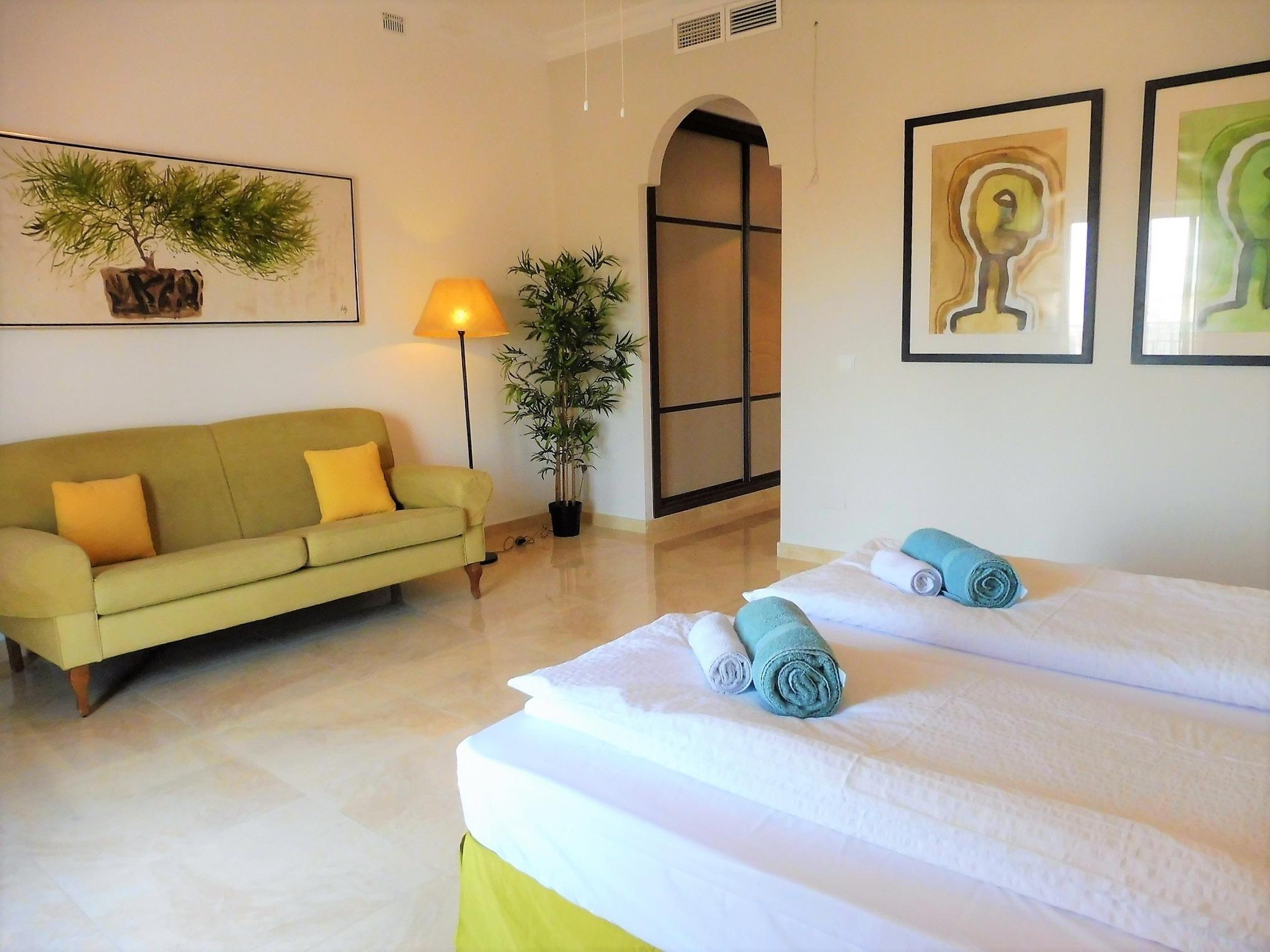 Unsere VILLA PRINCESA KRISTINA befindet sich in einer kleinen Wohnanlage von nur 4 Villen am oberen Ende eines Hügels. Dadurch bietet die Villa und auch die meisten Zimmer einen wunderschönen Ausblick auf die umliegenden Berge, Golfplätze und natürlich das Meer.