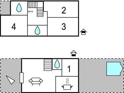 Badezimmer (nr. 1) - WC. Warmes und kaltes Wasser. Dusche