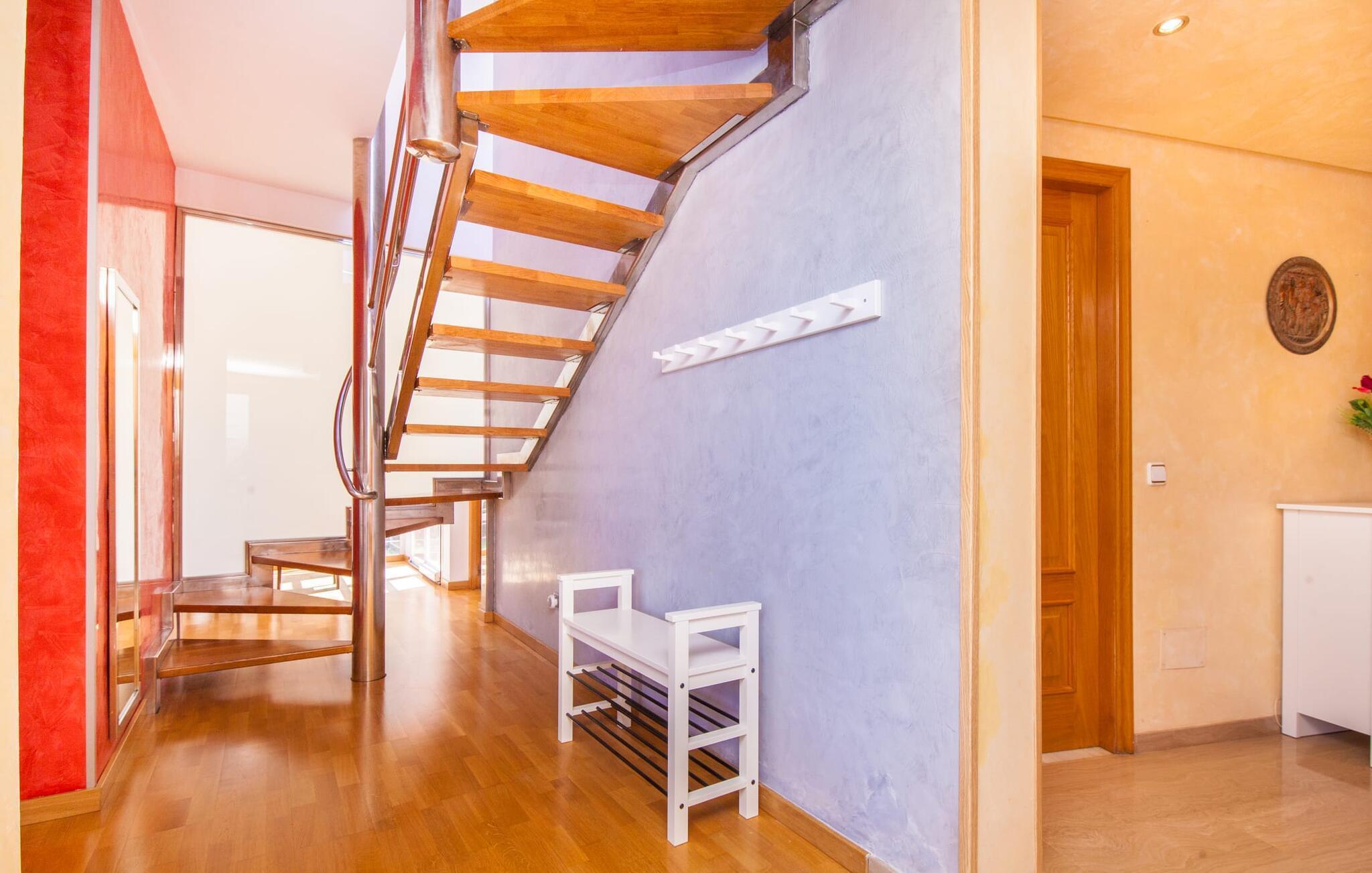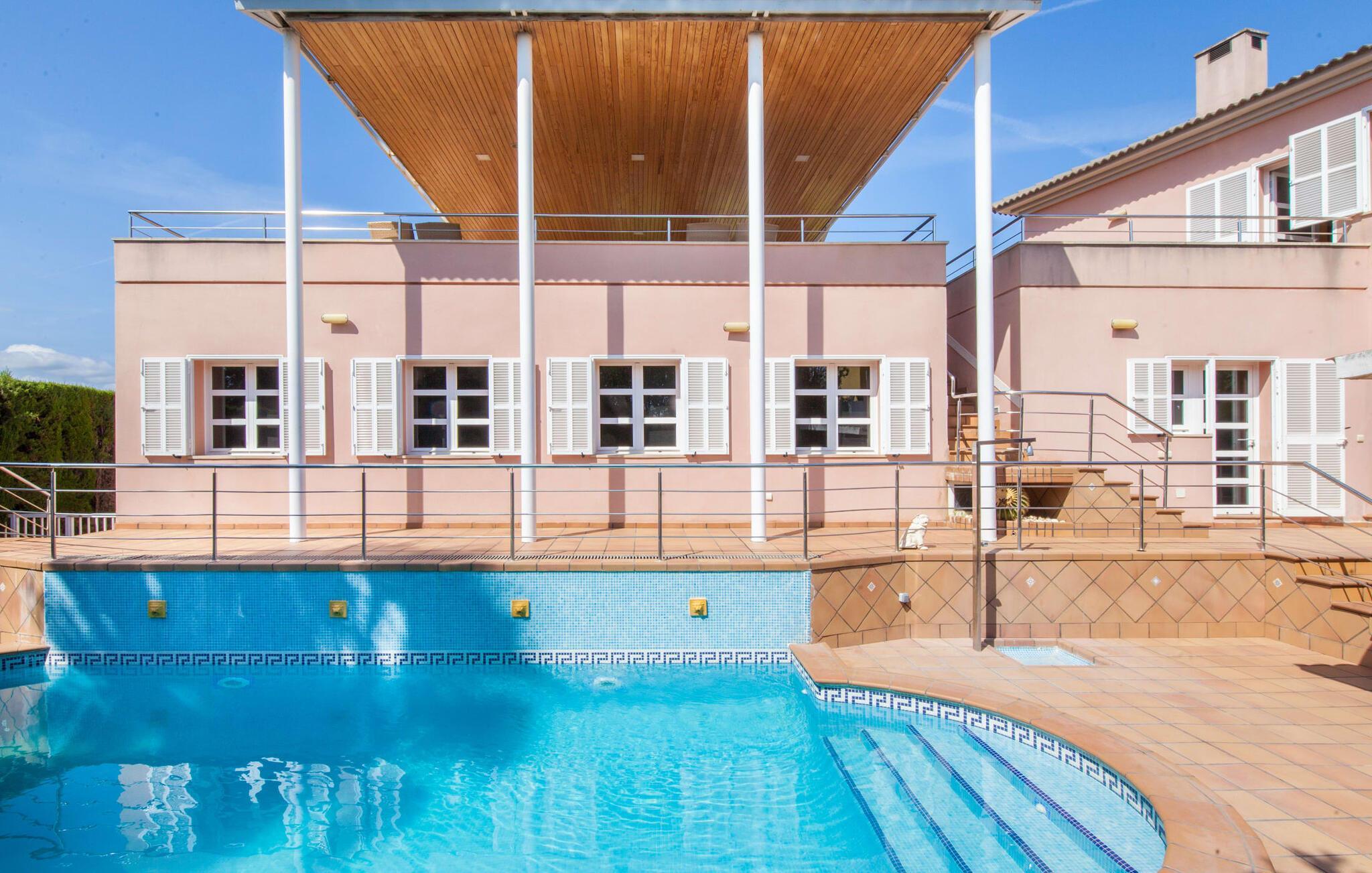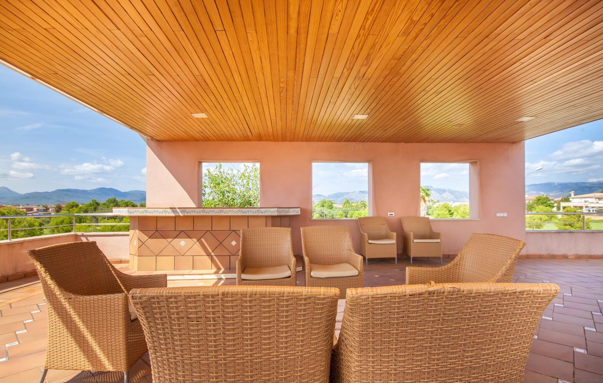 „Alfabia“ bietet den perfekten Rückzugsort nach einem langen Spaziergang durch Palmas geschäftige Straßen. Eine hohe Hecke, die Privatsphäre garantiert, ein großer Pool mit abgestuftem Bodenbelag, umgeben von gepflegtem Kunstrasen – hier dreht sich alles um Entspannung. Direkt neben dem Pool wartet eine gemütliche, überdachte Terrasse darauf, von Ihnen etwas Leben einzuhauchen. Während sich die Lust auf ein erfrischendes Bad noch in der Außendusche aufhält, können sich andere hungrige Besucher daran machen, den Grill anzuzünden. Frischer Fisch, dazu Wein – was braucht man mehr? Und wer noch Lust auf mehr Unterhaltung hat, probiert sich am Abend vielleicht mal bei einer Runde Darts. Oberhalb des Pools beherbergt die Villa eine weitere Dachterrasse mit herrlichem Blick auf die umliegenden Dächer und Berge in der Ferne. Eine kleine Theke, schicke Kunstrattanmöbel, viel Platz und eine tolle Aussicht – das ist eindeutig der perfekte Ort für ein Treffen im Freien. Eine asphaltierte Auffahrt führt direkt bis zur Villa, auf der Straße vor dem Haus sind ausreichend Parkplätze vorhanden.