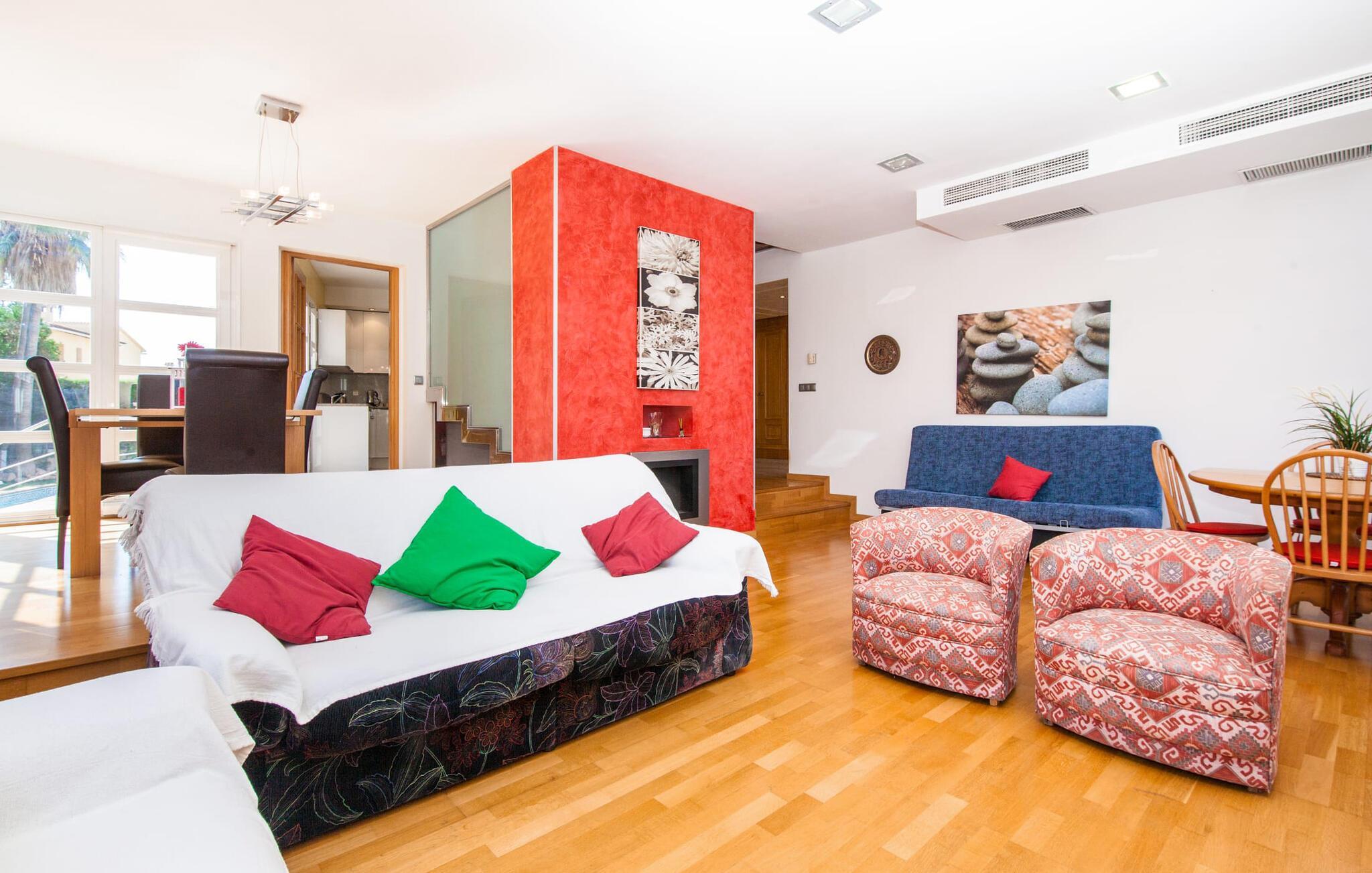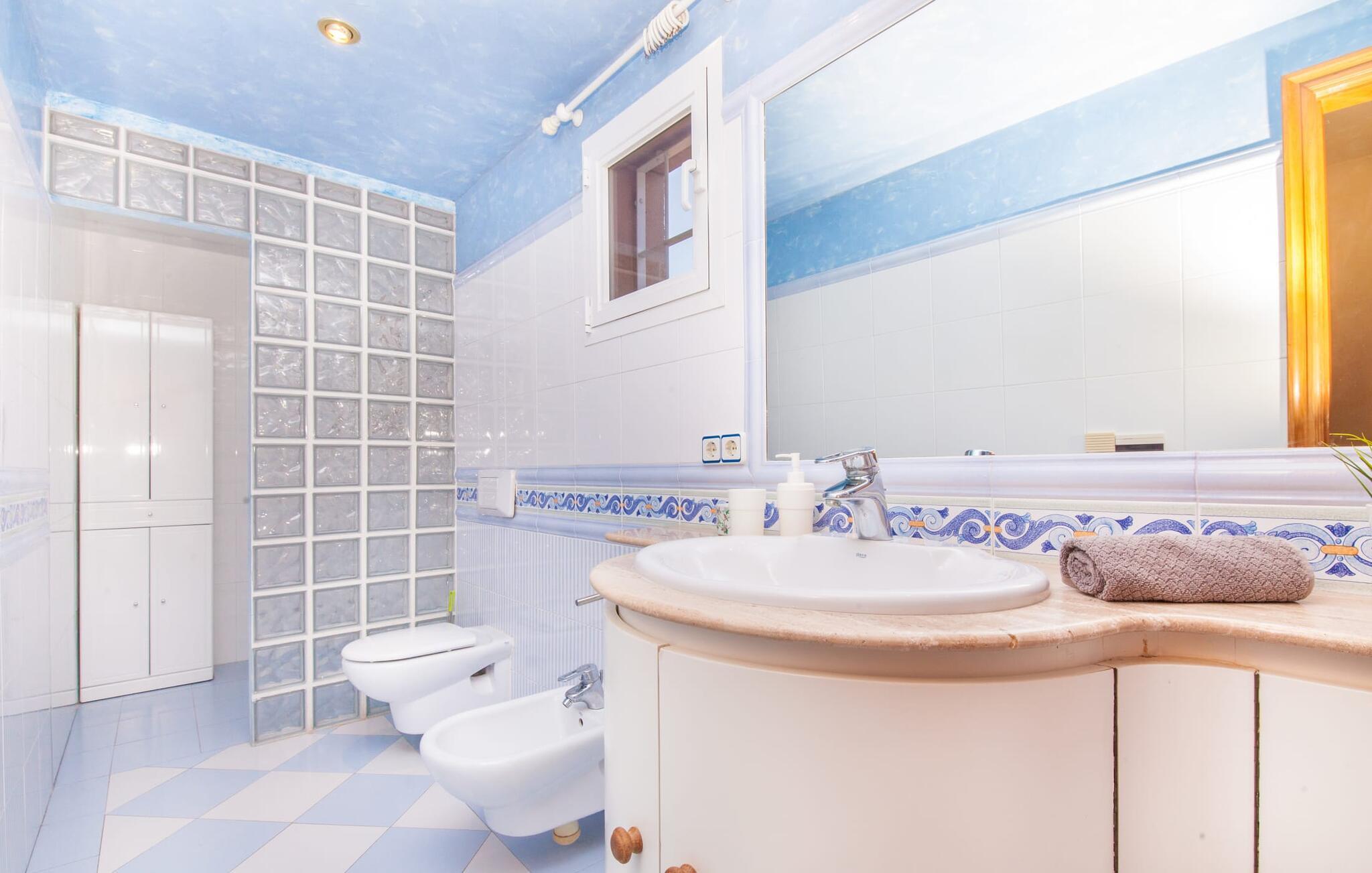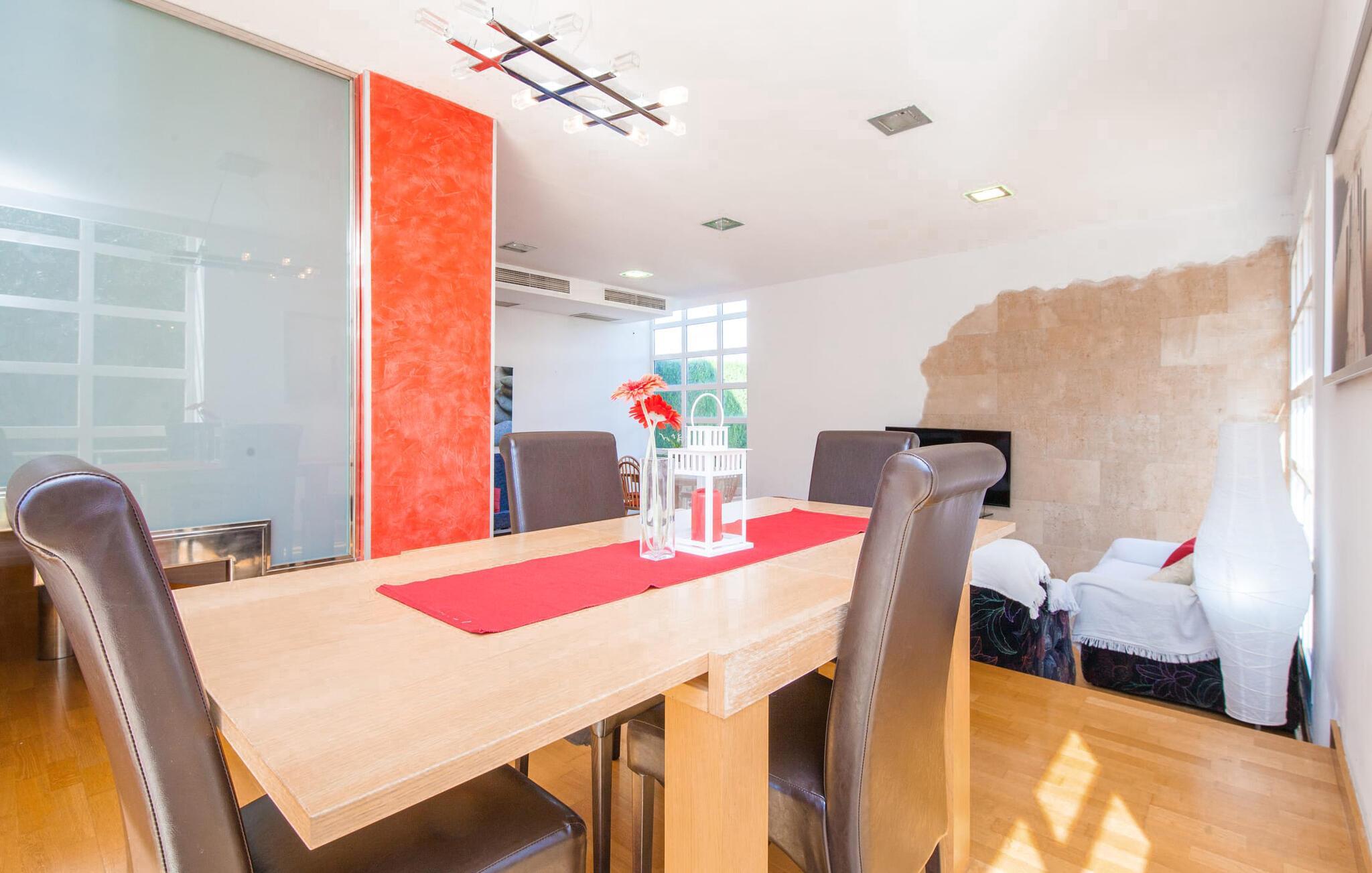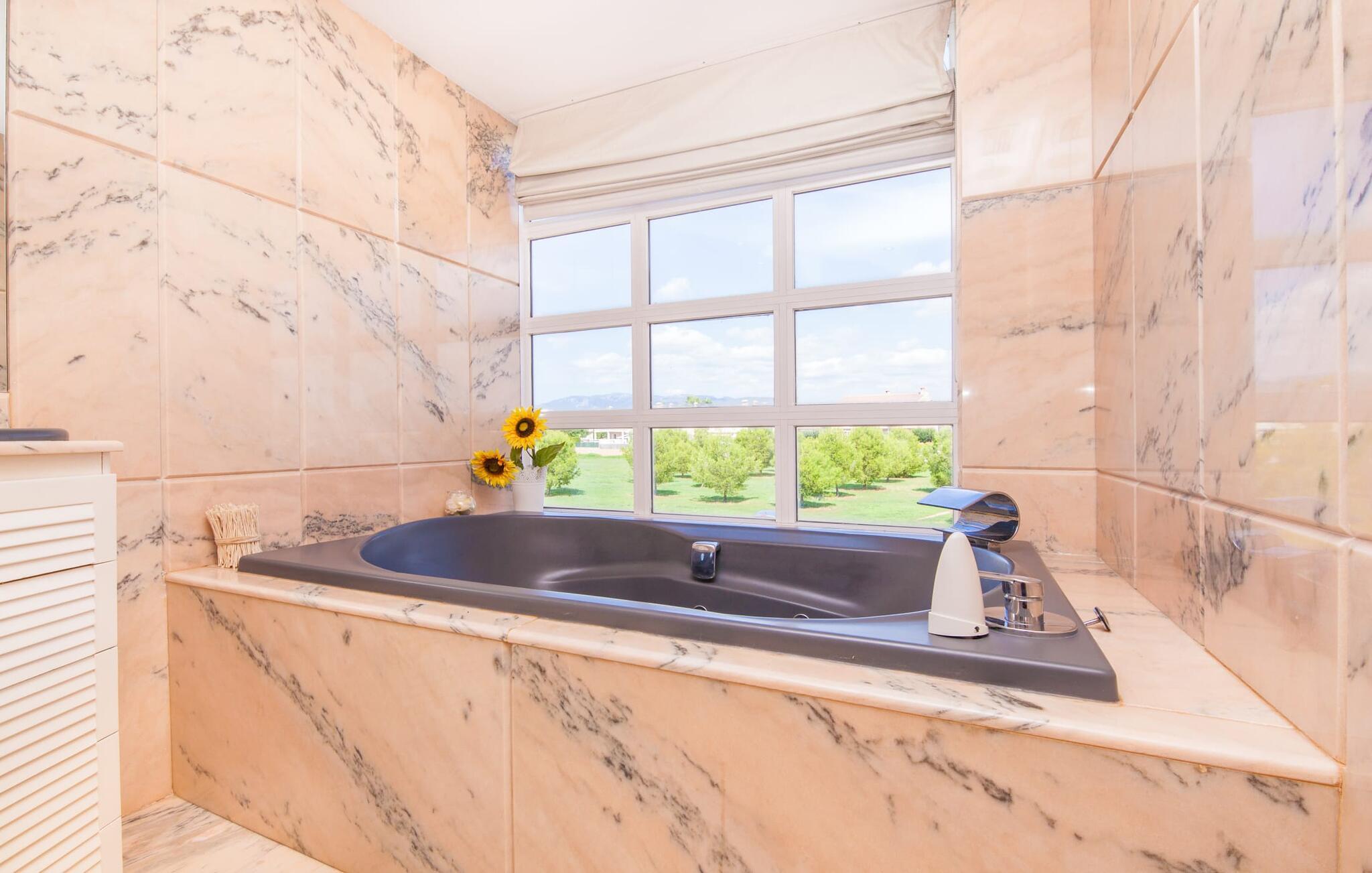 „Alfabia“, nordöstlich von Palma, ist ein toller Ausgangspunkt für zahlreiche Urlaubsaktivitäten: Sightseeing, Tapas am Hafen probieren, Souvenirs einkaufen, Tage am Strand verbringen. Kreative können einmal im Jahr im Frühling das Klangmuseum in Marratxí oder Mallorcas größte Kunsthandwerksausstellung Feria del Fang besuchen. Aufgrund der zentralen Lage im Ort ist gelegentlich Verkehrslärm zu hören. Dank der guten Infrastruktur ist es jedoch einfach, andere Teile der Insel zu erreichen. Wie wäre es zum Beispiel mit einer Tageswanderung im Tramuntana-Gebirge? Familien besuchen oft das Aqualand in El Arenal oder die unglaublichen Strände in der Nähe. Ciudad Jardin ist nur 8 km entfernt und andere hübsche Buchten sind nicht viel weiter entfernt. Die moderne Villa „Alfabia“ liegt gut 7 km nordöstlich von Palma de Mallorca, in der beliebten Gegend Pont d'Inca Nou, in der Gemeinde Marratxí. Die Hauptstadt der Insel ist nur 7 km entfernt und die nächste U-Bahn-Station ist nur wenige Gehminuten entfernt. Der Flughafen Palma ist in kürzester Zeit zu erreichen und auch der schöne Strandort Ciudad Jardin liegt nur 8 km Autofahrt entfernt.