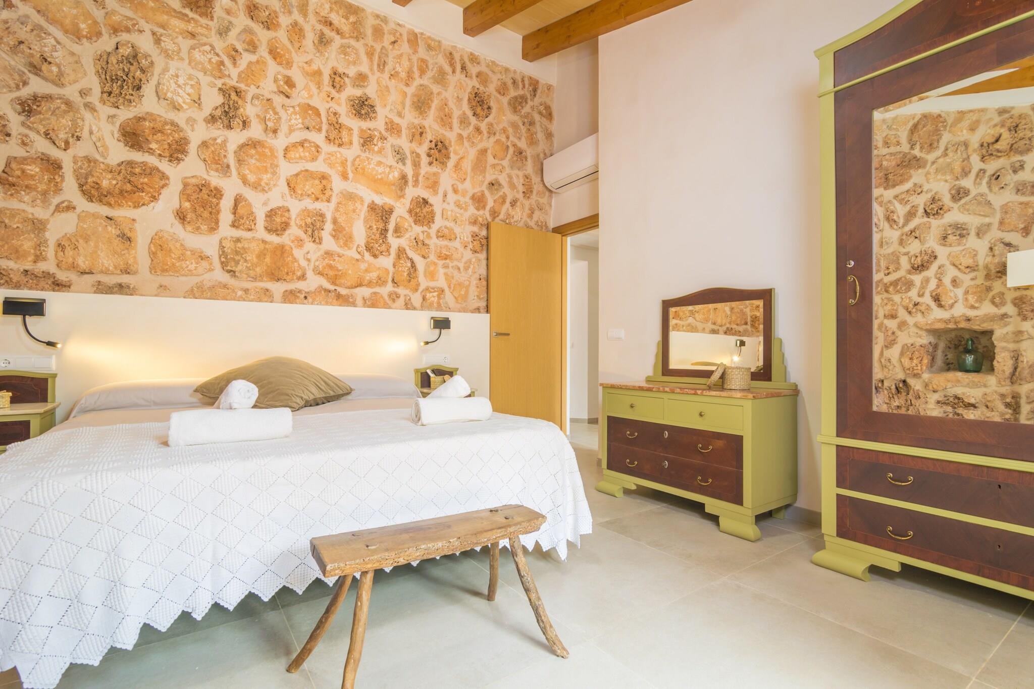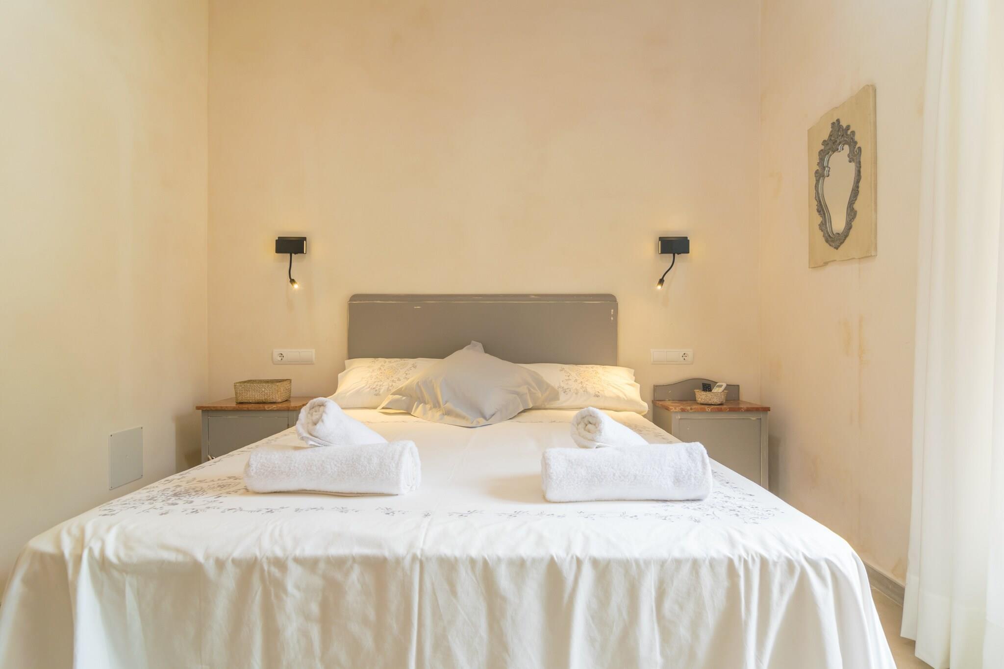 Erfahren Sie das richtige Landleben in diesem hübschen Landhaus mit gepflegtem Außenbereich. Die möblierte Terrasse und der 6 x 3m große Salzwasserpool sind die wahren Protagonisten der Finca und lassen keine Langeweile aufkommen. Der Pool hat eine Wassertiefe von 1 bis 1,5m. Auf einer der bis zu 4 Sonnenliegen können Sie die Seele baumeln lassen und die Ruhe genießen. Mit dem Grill sorgen Sie für Gaumenfreuden und verwöhnen Ihre Liebsten mit Leckereien. Es empfängt Sie ein gemütlicher Wohn - Essbereich mit Sat TV, dekorativem Kamin (er kann nicht benutzt werden) und Essbereich gefolgt von der Küche mit Induktionskochfeld und allen wichtigen Geräten und Utensilien. Der Raum ist klimatisiert und eignet sich hervorragend gemeinsame Stunden mit Familie und Freunden zu verbringen. Ein Flur bringt Sie zu den 2 Schlafzimmern, die mit je einem Doppelbett eingerichtet sind. Beide sind klimatisiert, verfügen über je einen Schrank, haben einen Deckenventilator und Ausgang auf die Terrasse. Auf Anfrage kann ein Babybett und Hochstuhl bereitgestellt werden. Alle Bewohner teilen sich ein Duschbad und natürlich gibt es auch eine Waschmaschine, Bügelbrett und Bügeleisen. Die Finca liegt ca 4,6km vom Zentrum von Algaida entfernt, ein charmantes Dorf im Inselinneren mit allen wichtigen Dienstleistungen und einem guten gastronomischen Angebot. Da sich das Dorf in der Inselmitte befindet erreichen Sie jeden Punkt schnell und einfach. Der nächste Strand, in Ca'n Pastilla, liegt ca 16,1km entfernt. Es lohnt sich jedoch die Küste entlang zu fahren um weitere kleine Buchten und Traumstrände wie Es Trenc zu besuchen. Eventuelle Nebenkosten müssen beim Anbieter nachgefragt werden. Haustiere sind verboten. Partys oder ähnliche Veranstaltungen sind nicht gestattet. Es gibt Freiluftparkplätze für 2 Autos. Entfernungen Strand: 16.1 km - Ca'n Pastilla Flughafen: 16.5 km - Son Sant Joan Golfplatz: 13.8 km - Golf Son Gual Ortsmitte: 4.6 km - Algaida Bahnhof: 20.2 km - Palma Bushaltestelle: 5.5 km - Algaida Fähre: 25.4 km - Port de Palma Krankenhaus: 13.9 km - Son Llatzer Touristen Lizenz: ETV/11035Einheitsregister: ESFCTU0000070250010232330000000000000000000ETV/110358Auf den Balearen gibt es eine Touristensteuer, die Ecotasa genannt wird. Diese Steuer muss vom Gast bezahlt werden. Der zu zahlende Betrag beträgt zwischen 0.55EURO pro Nacht und Gast in der Nebensaison und 2.2EURO pro Nacht und Gast in der Hochsaison. Ab dem 9. Tag reduziert sich die Steuer um die Hälfte. Personen unter 16 Jahren sind davon ausgenommen
