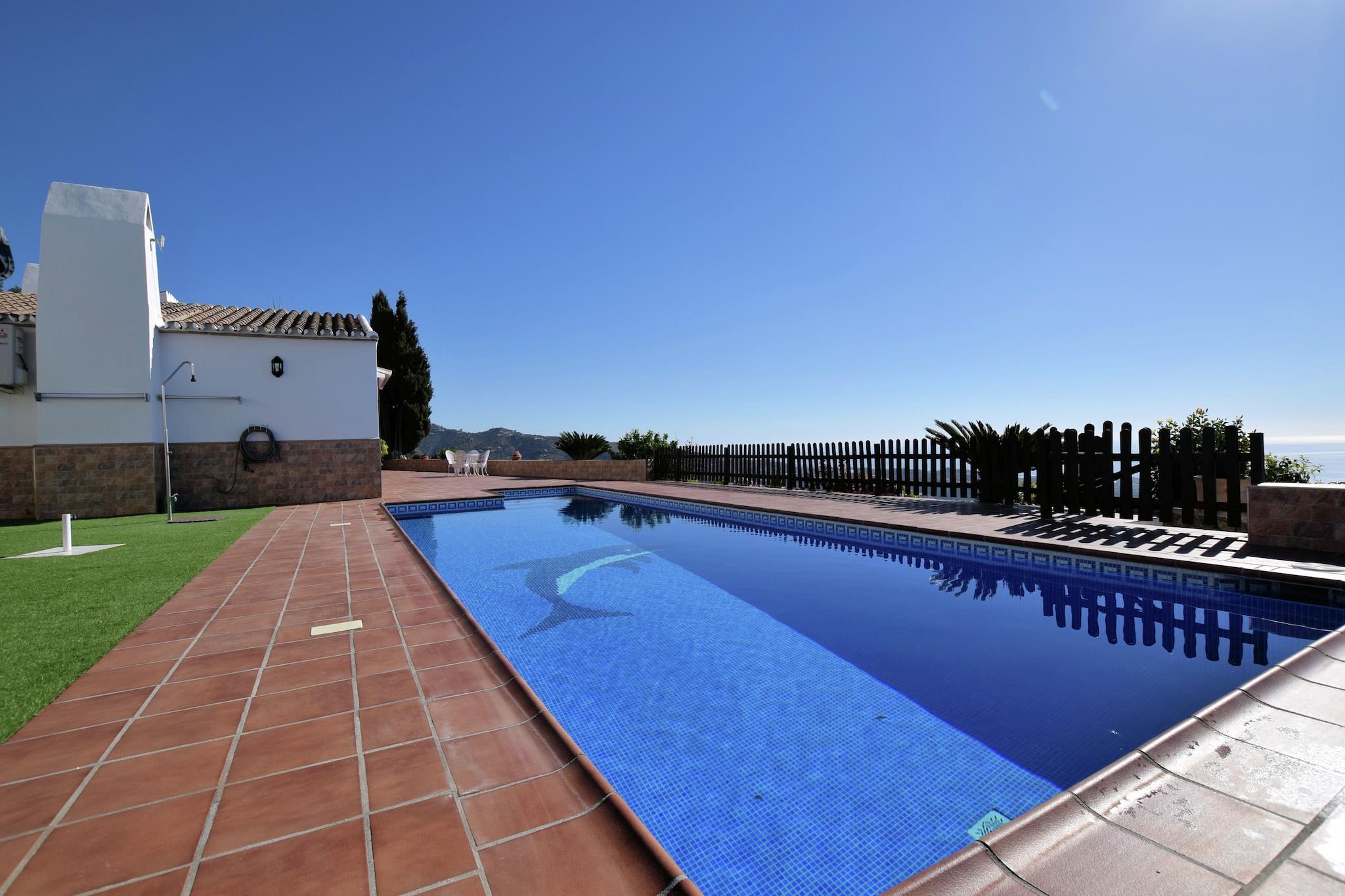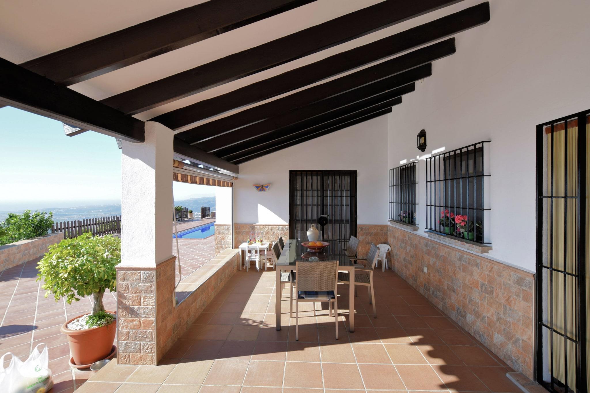 Villa mit Meerblick Diese ruhige Villa in Arenas bietet Platz für bis zu 6 Gäste und ist somit ideal für Familien oder Gruppen. Sie verfügt über 3 Schlafzimmer, 2 Badezimmer, eine voll ausgestattete Küche, einen Wohn-Essbereich mit Kamin und Klimaanlage sowie einen Wintergarten mit Tischfußball. Im Außenbereich erwartet Sie ein privater 10 x 4 m großer Pool und ein eingezäunter Garten mit Gartenmöbeln, Grill, Liegestühlen und Sonnenschirm. Sichere Parkplätze stehen vor Ort zur Verfügung, und die großzügigen Terrassen bieten einen atemberaubenden Blick auf die Mittelmeerküste. Umgebung erkunden Nur 6 km entfernt laden die Sandstrände zum Sonnenbaden, Schwimmen und für Wassersport ein. Eine 10-minütige Fahrt bringt Sie nach Algarrobo-Costa, wo Sie noch mehr Strandzeit verbringen und lokale Restaurants genießen können. In der Nähe können Gäste die malerischen Küstenstädte erkunden, auf Naturpfaden wandern oder Radtouren unternehmen. Die Gegend eignet sich ideal für entspannende Outdoor-Aktivitäten, während Sie die Schönheit der Costa del Sol genießen. Lokale Einrichtungen Die Villa ist nur 4 km vom Stadtzentrum und einem Supermarkt sowie 5 km von Restaurants mit lokaler Küche entfernt. Dank der Terrassen und des Grillplatzes der Villa können Sie bequem im Freien speisen. Málaga ist für Tagesausflüge gut erreichbar, und der Flughafen Málaga ist für eine reibungslose An- und Abreise mit dem Auto erreichbar. Mit Pool, Garten und Meerblick bietet diese Villa einen entspannten Ausgangspunkt, um Andalusiens Strände, Natur und Küstencharme zu genießen.