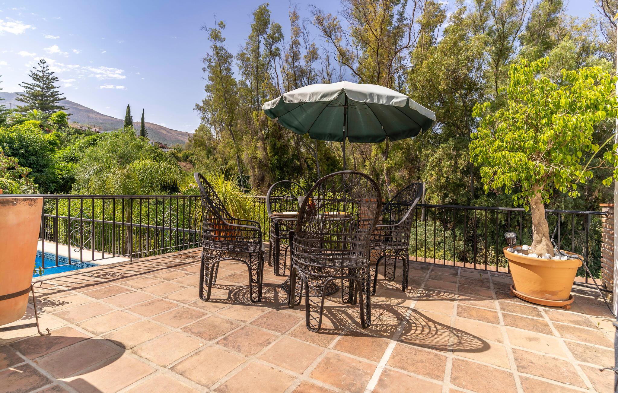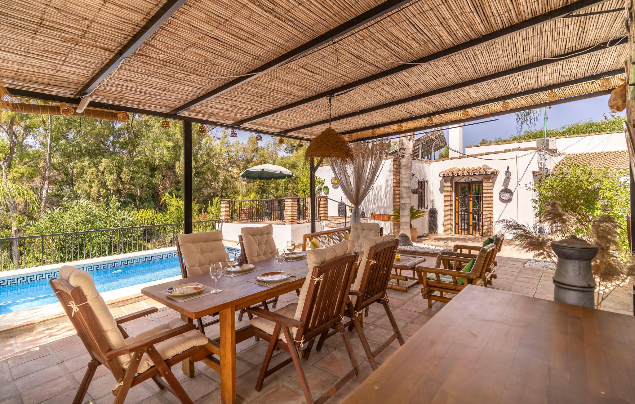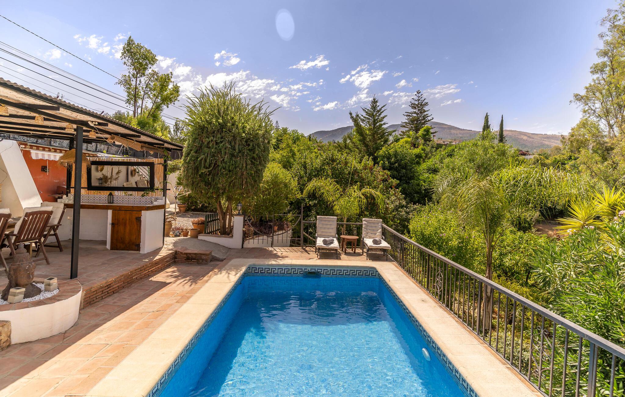 Ihr liebevoll eingerichtetes Ferienhaus bietet Ihnen beste Voraussetzungen für erholsame Tage in ruhiger Lage. Umgeben von viel Grün und traditioneller Architektur, finden Sie hier einen Ort zum Abschalten und Wohlfühlen, nur wenige Minuten vom Zentrum Ihres Urlaubsortes entfernt. Treten Sie ein und machen Sie es sich im gemütlichen Wohnzimmer bequem. Entspannen Sie auf dem Sofa oder schmökern Sie in einem Buch. Die Einrichtung ist hell, freundlich und im andalusischen Stil gehalten. Nutzen Sie die Küche mit dekorativen Fliesen, um Ihre Mahlzeiten selbst zuzubereiten.