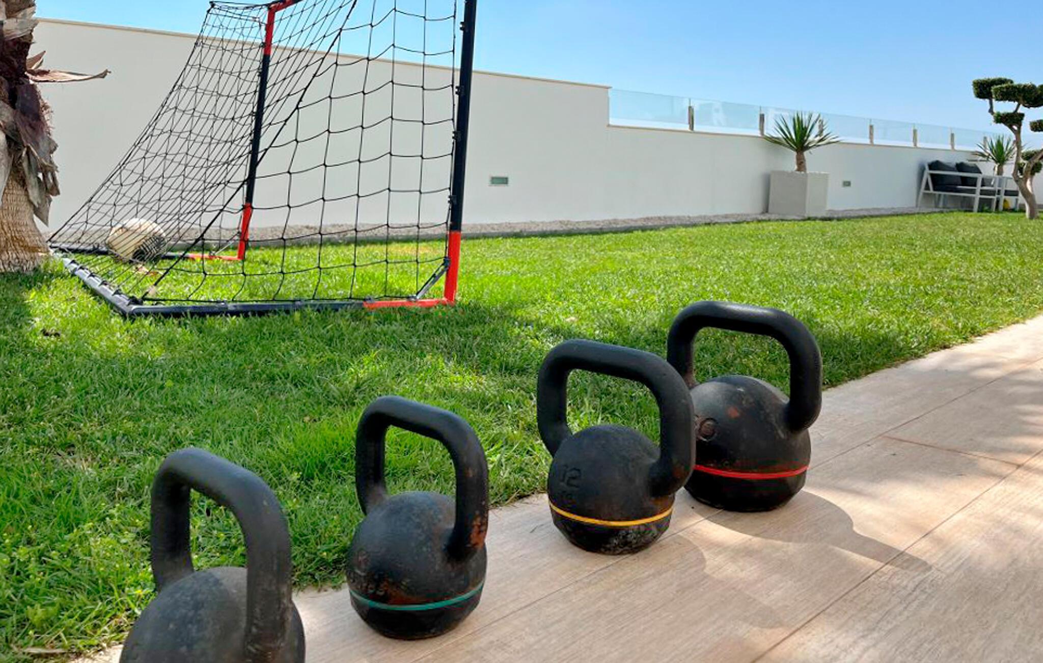 Der Außenbereich begeistert mit einem beheizten Infinity-Pool, einer möblierten Sonnenterrasse und einem Grillplatz. Entspannen Sie in den bequemen Liegestühlen und genießen Sie die mediterrane Sonne oder den spektakulären Sonnenuntergang über der Stadt. Der gepflegte Garten bietet zudem Platz für Freizeitaktivitäten wie Fußball oder Fitness.