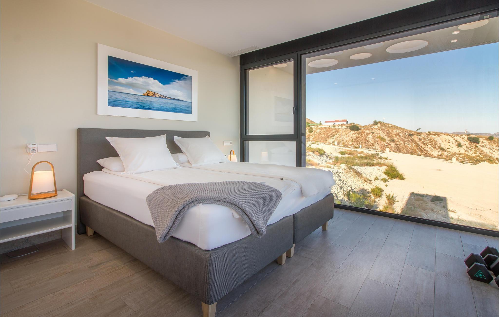 Ihr stilvolles Ferienhaus in Finestrat kombiniert luxuriösen Komfort mit einem atemberaubenden Blick auf die Skyline von Benidorm und das Mittelmeer. Im Inneren der Villa erwarten Sie helle, offene Räume mit minimalistischer Dekoration und einem hochwertigen Design. Das Haus bietet Platz für eine große Familie. Die voll ausgestattete Designerküche und die großzügigen Essbereiche laden zu gemeinsamen Mahlzeiten ein, während die großen Fensterfronten die Räume mit Tageslicht durchfluten.