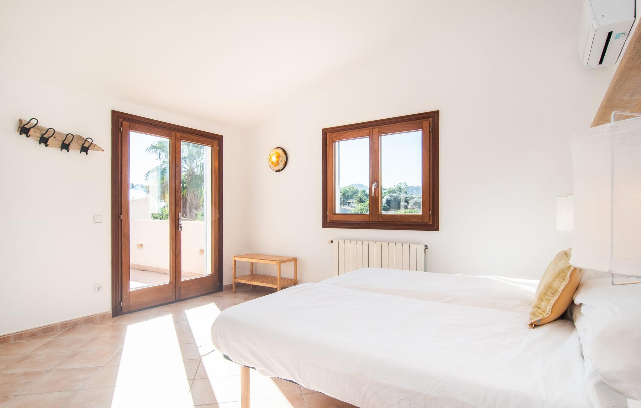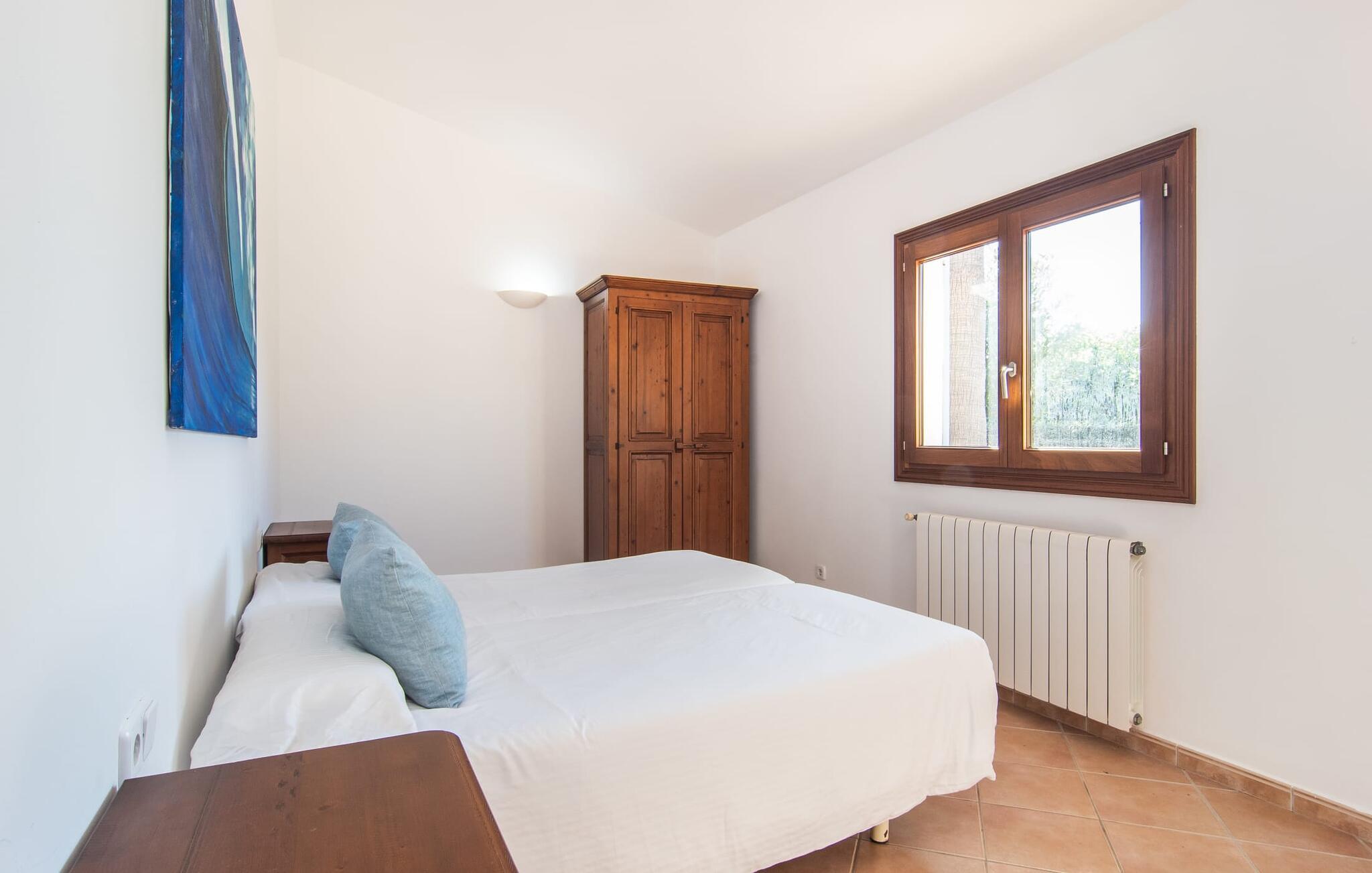 Das Innere des einladenden Ferienbauernhauses ist äußerst attraktiv. Der Wohn- und Essbereich mit offener Küche bietet durch die großen Glasschiebetüren direkten Zugang nach draußen. Diese angenehme Verschmelzung von Innen und Außen unterstreicht das erholsame Urlaubsgefühl, das Sie im Bauernhaus „Almendros“ erwartet. Im Wohnzimmer sorgt ein zweiter Kamin für Gemütlichkeit. Die voll ausgestattete Küche mit Mittelinsel und Barhockern öffnet sich direkt in den Wintergarten mit Essbereich. Insgesamt sechs Personen finden in drei Doppelzimmern hervorragend Platz. Zwei davon und eines der Duschbäder befinden sich im Erdgeschoss. Das dritte Schlafzimmer mit eigenem Duschbad befindet sich im Obergeschoss. Von dort ist die Dachterrasse zugänglich. Das Bauernhaus „Almendros“ lädt mit seinem Landleben und gleichzeitiger Nähe zum Strand und zur Stadt zu einem entspannten Familienurlaub im Osten Mallorcas ein. Das Bauernhaus ist eingebettet in einen mediterranen Garten mit Pool. Das gemütliche Ferienhaus besticht durch ländliche Ruhe und gleichzeitige Nähe zu Cala Ratjada. Die lebhafte Küstenstadt mit ihrer tollen Hafenpromenade sowie mittelalterliche Städte wie Capdepera und Artá ??sind in einer kurzen Autofahrt erreichbar. Schöne Strände wie Cala Agulla sind in einem kurzen Spaziergang sogar zu Fuß erreichbar.