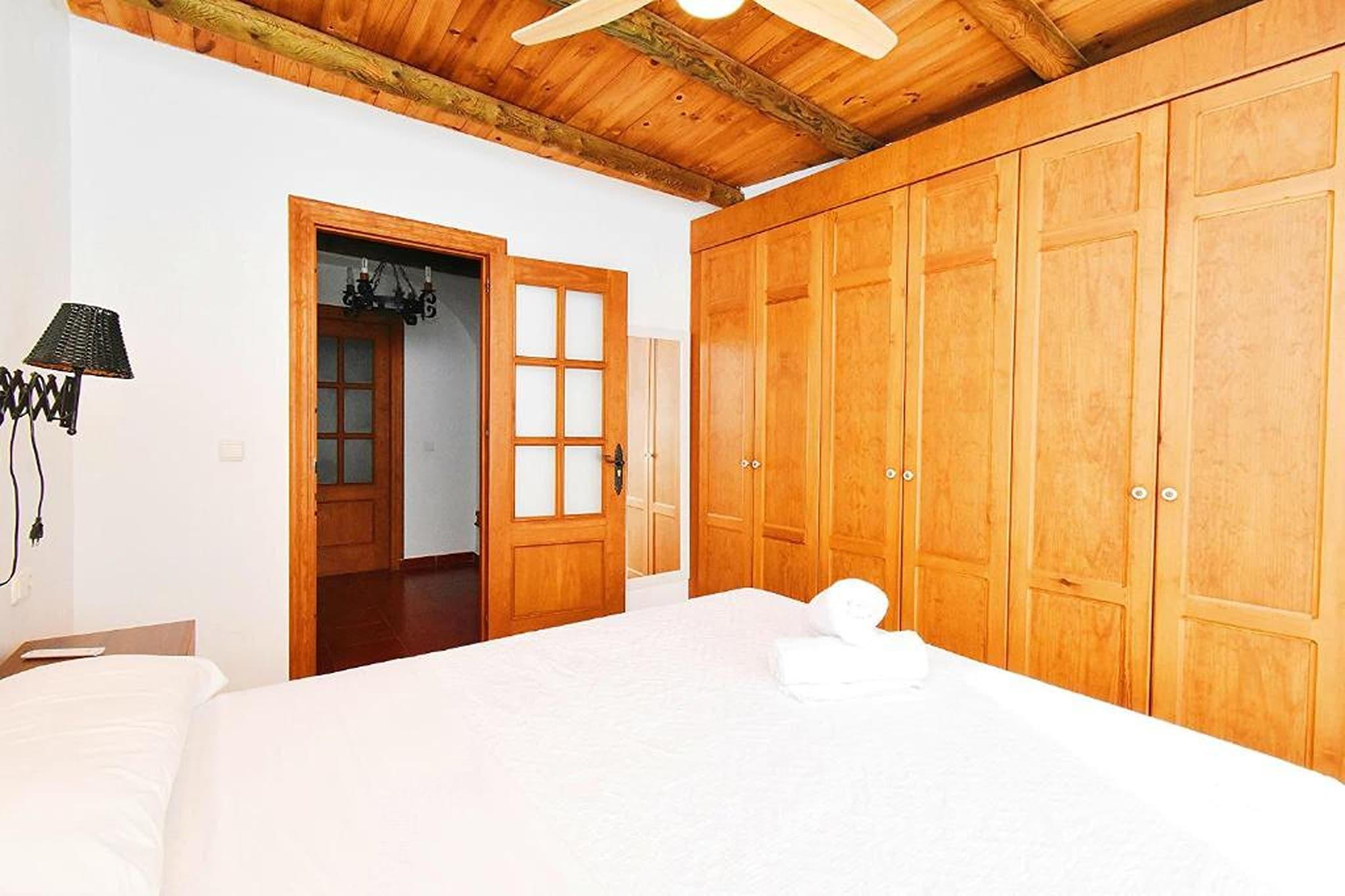 Parterre: (Eingang(von außen erreichbar), offene Küche(Kochplatte, Dunstabzugshaube, Kaffeemaschine, Backofen, Mikrowelle, Kühl-/Gefrierkombination), Wohn/Esszimmer(TV(Flatscreen), Esstisch, Kaminofen, Sitzecke), Schlafzimmer(Doppelbett), Schlafzimmer(Doppelbett), Schlafzimmer(Einzelbett, Einzelbett), Schlafzimmer(Etagenbett oder 2 Einzelbetten), Badezimmer(Badewanne mit Dusche, Waschbecken, Toilette, Bidet), Klimaanlage, Terrasse, ) Garage, Gartentüren, Patio, Gartenmöbel, Bügelbrett, Bügeleisen