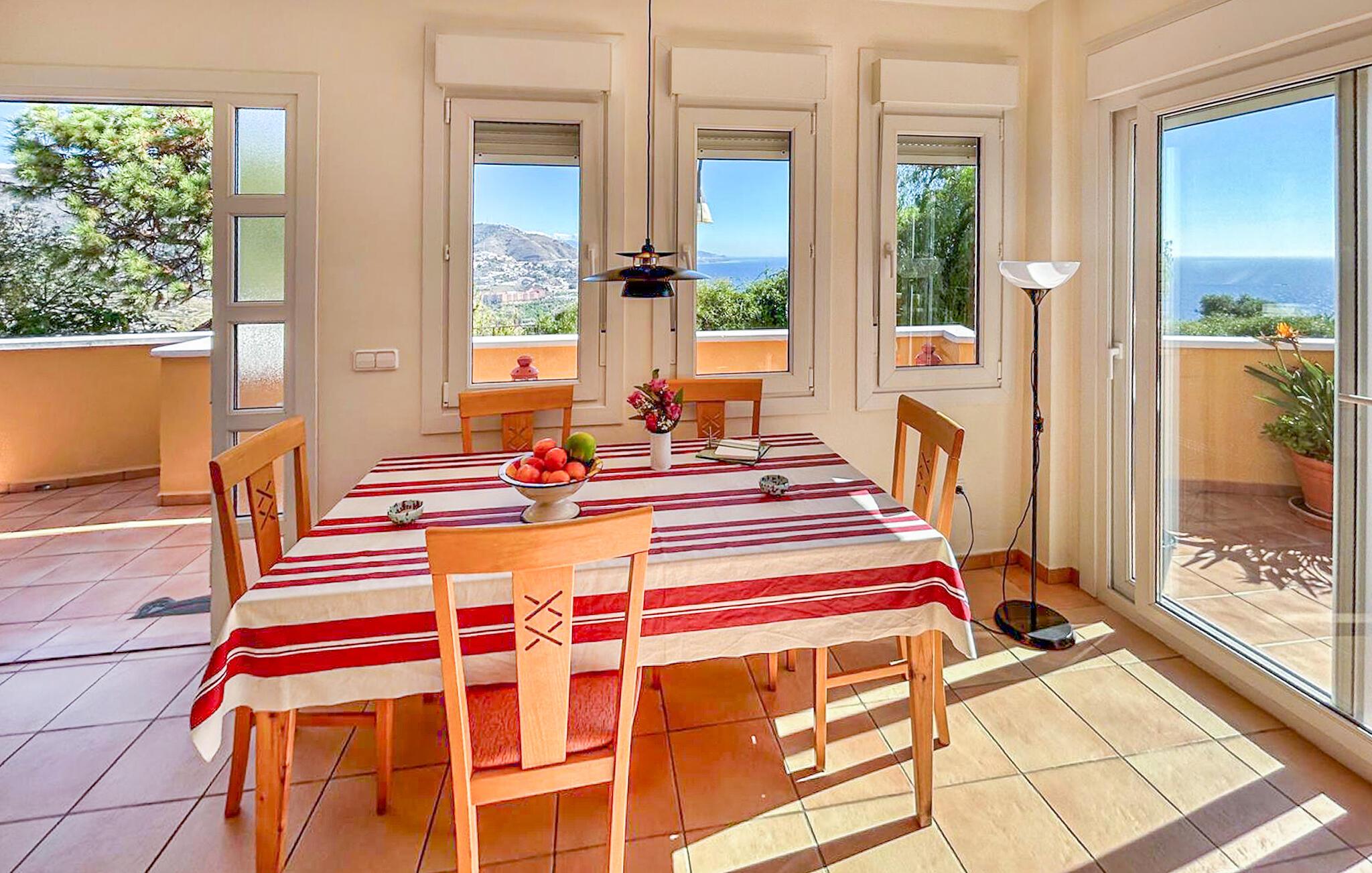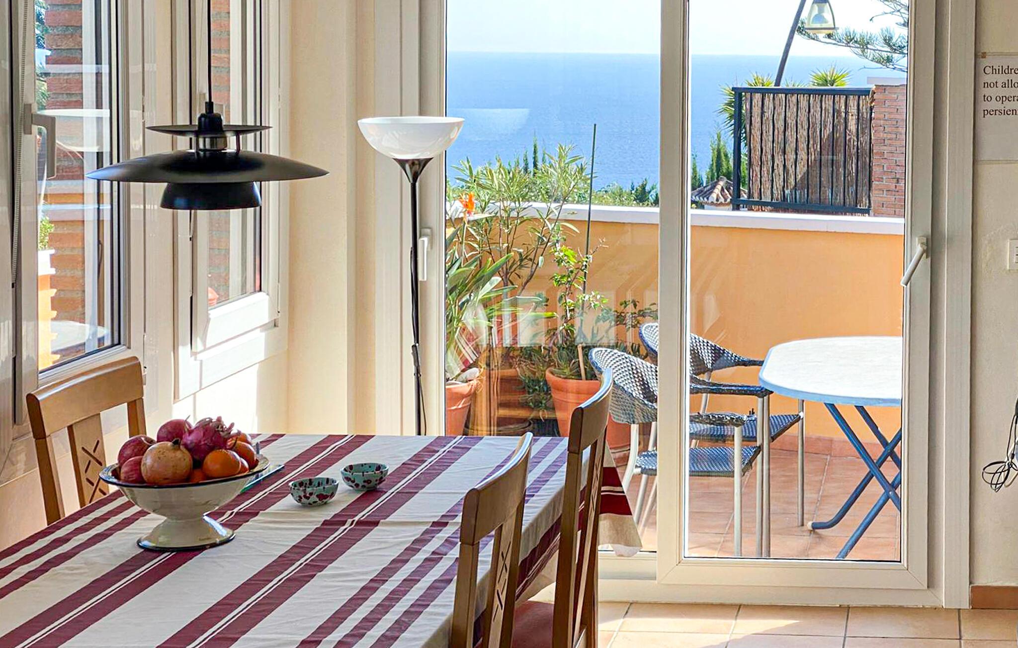 Verbringen Sie eine gemütliche Auszeit in diesem komfortablen Ferienhaus mit Meerblick und Zugang zum Pool.