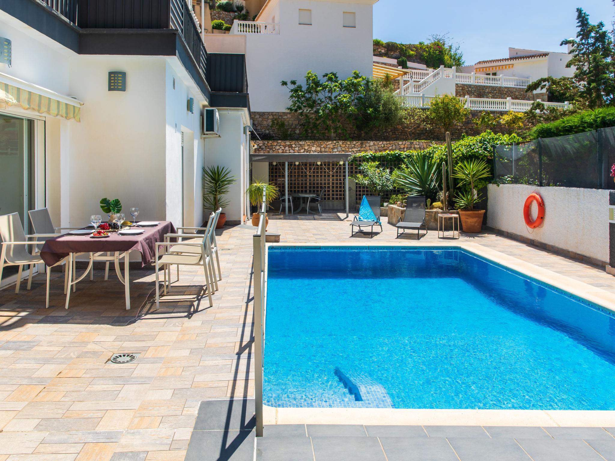 "Bugambilla", 4-Zimmer-Villa 72 m2. Hell, komfortabel und schön eingerichtet: Wohn-/Esszimmer mit Digital-TV, Klimaanlage und Warmluftheizung. Ausgang zur Terrasse, zum Schwimmbad. 1 Zimmer mit 1 franz. Bett (160 cm, Länge 200 cm), Dusche/WC, Klimaanlage und Warmluftheizung. Ausgang zur Terrasse, zum Schwimmbad. 1 Zimmer mit 1 franz. Bett (160 cm, Länge 200 cm), Dusche/WC, Klimaanlage und Warmluftheizung. Ausgang zur Terrasse, zum Schwimmbad. 1 grosses Zimmer mit 1 franz. Bett (160 cm, Länge 200 cm), Klimaanlage. Küche (Backofen, Geschirrspüler, 4 Glaskeramikplatten, Toaster, Wasserkocher, Mikrowelle, Tiefkühler, elektrische Kaffeemaschine). Gartensitzplatz. Liegestühle. Zur Verfügung: Waschmaschine, Safe, Bügeleisen, Haartrockner. Internet (WLAN, gratis). VFT/GR/10064 // Reg. Nr.: ESHFTU0000180160003077720020000000000000VFT/GR/100649