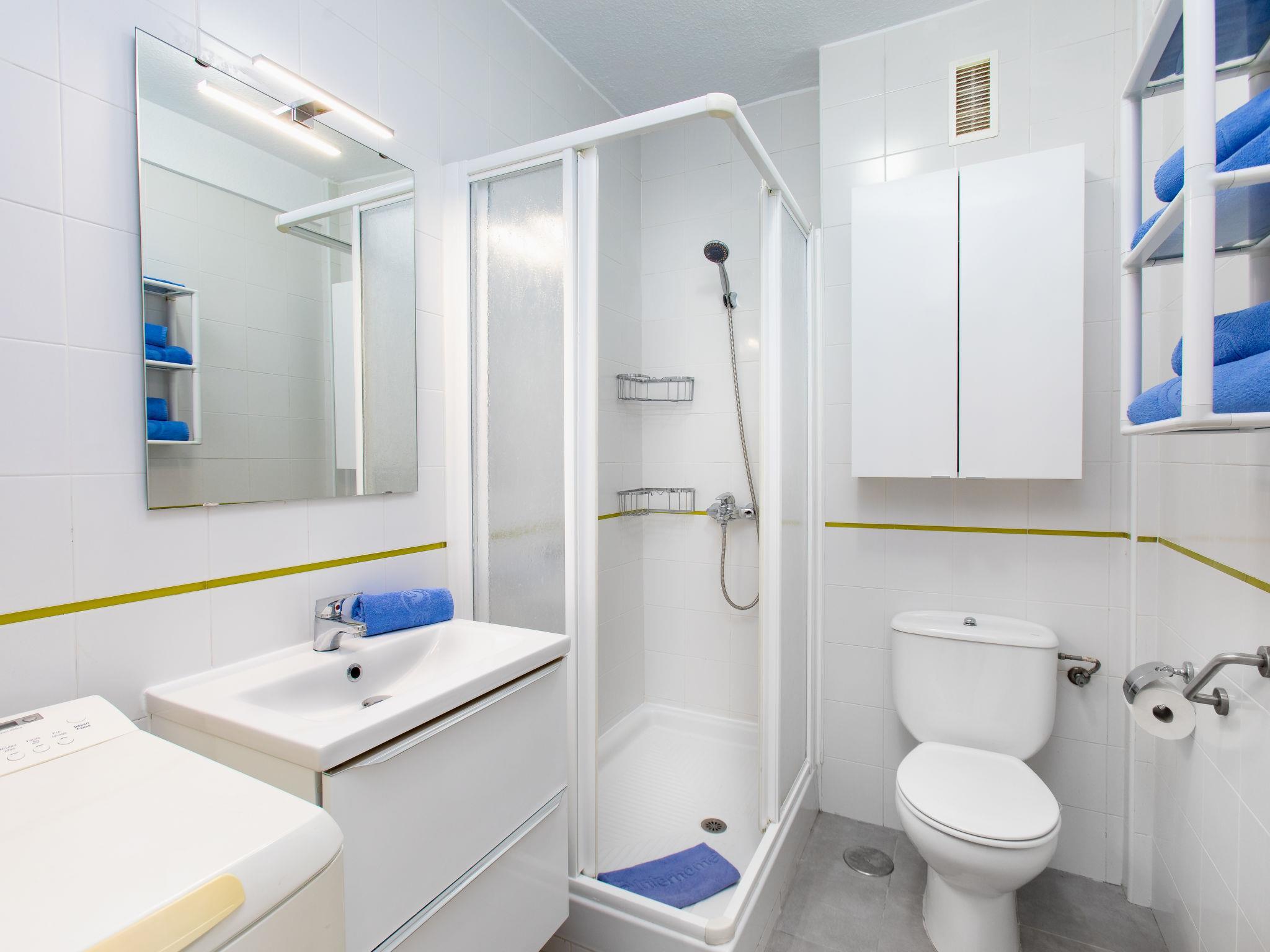 "Velilla", 3-Zimmer-Wohnung 65 m2 im 7. Stock, Südlage. Hell, einfach und zweckmässig eingerichtet: Wohn-/Esszimmer mit Digital-TV. Ausgang zur Terrasse. 1 Zimmer mit 2 Betten (90 cm, Länge 190 cm), Ventilator. 1 Zimmer mit 1 franz. Bett (180 cm, Länge 200 cm), Ventilator. Offene Küche im Eingang (4 Kochplatten, Backofen, Toaster, Wasserkocher, Mikrowelle, Tiefkühler, elektrische Kaffeemaschine, Kapseln für die Kaffeemaschine (dolce gusto)) mit Klimaanlage und Warmluftheizung. Dusche/WC. Grosse Terrasse. Terrassenmöbel. Panoramasicht auf das Meer und die Ortschaft. Zur Verfügung: Waschmaschine, Bügeleisen, Kinderhochstuhl, Babybett bis 2 Jahre, Haartrockner. Internet (WLAN, gratis). VUT/GR/08390 // Reg. Nr.: ESFCTU0000180160000403580000000000000000VUT/GR/083906