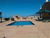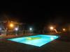 Direkt neben dem Haus befindet sich die Terrasse (270 m²) mit dem acht mal vier Meter großen Swimmingpool. Das gesamte Grundstück hat eine Fläche von ca. 2000 m² und ist eben. Das Grundstück verfügt sogar über einen Minigolfplatz (10 m²) und Parkplätze für bis zu zehn Fahrzeuge. Es gibt vier Liegestühle, zwei Sonnenschirme, eine Außendusche und einen Grill am Pool. Tische und Sitzgelegenheiten unter dem überdachten Bereich der Poolterrasse laden zum Entspannen ein.