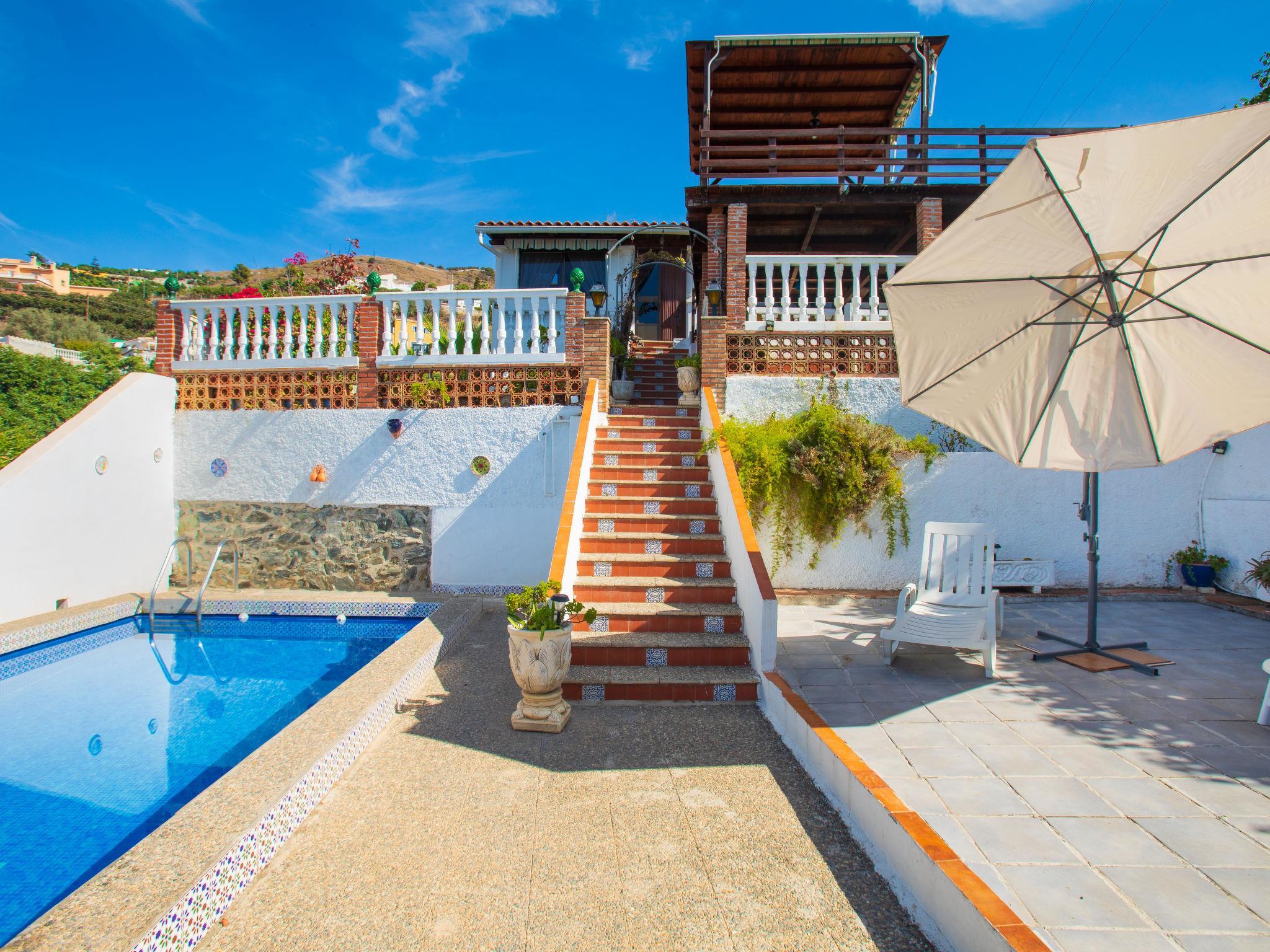 Zweifamilienhaus "Fortuna". Im Ortsteil Playa Cabria, 4 km vom Zentrum von Almuñécar, 500 m vom Meer, direkt am Strand. Zur Alleinbenutzung: Grundstück 1'000 m2 (eingezäunt), terrassierter Garten mit Pflanzen und Bäumen, Schwimmbad (6 x 3 m, 150 - 200 cm tief, saisonale Verfügbarkeit: 01.Mai. - 31.Okt.). Im Hause: Waschmaschine. Treppenweg (39 Stufen) bis zum Haus. Parkplatz auf dem Grundstück. Einkaufsgeschäft 1.3 km, Bushaltestelle "Taramay (Ctra de Almería)" 1.5 km, Sandstrand "Playa Cabria" 300 m. Nahe gelegene Sehenswürdigkeiten: Nerja, Cuevas de Nerja, Frigiliana, Granada, Salobreña, Aquatropic. Bekannte Skigebiete sind gut erreichbar: Sierra Nevada. Wandergebiete: Valle de Lecrin, Alpujarras, Sierra Almijara. Bitte beachten: Fahrzeug empfohlen. Der Besitzer akzeptiert keine Jugendgruppen. Der Besitzer wohnt auf dem gleichen Grundstück.