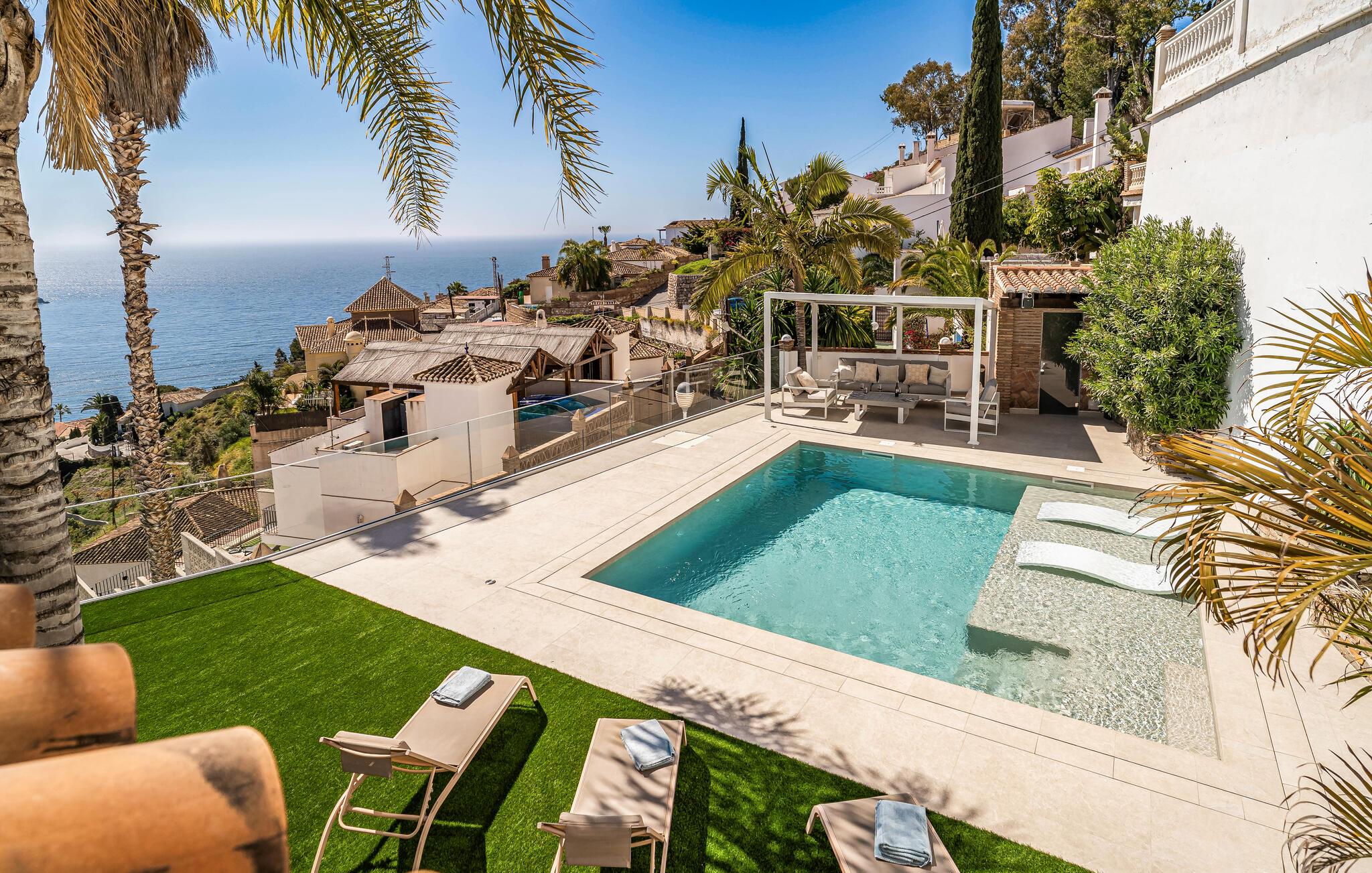 Die Nähe zu Städten wie Granada am Fuße der Sierra Nevada, in 78 km und der Stadt Málaga, in 75 km Entfernung, macht diese beeindruckende Villa zu einem sehr attraktiven Ausgangspunkt für Ausflüge. In der traumhaften Landschaft, reich an beeindruckenden Naturkulissen, finden Sie Wasserfälle und Flüsse, die sich durch die tiefen Schluchten ziehen.