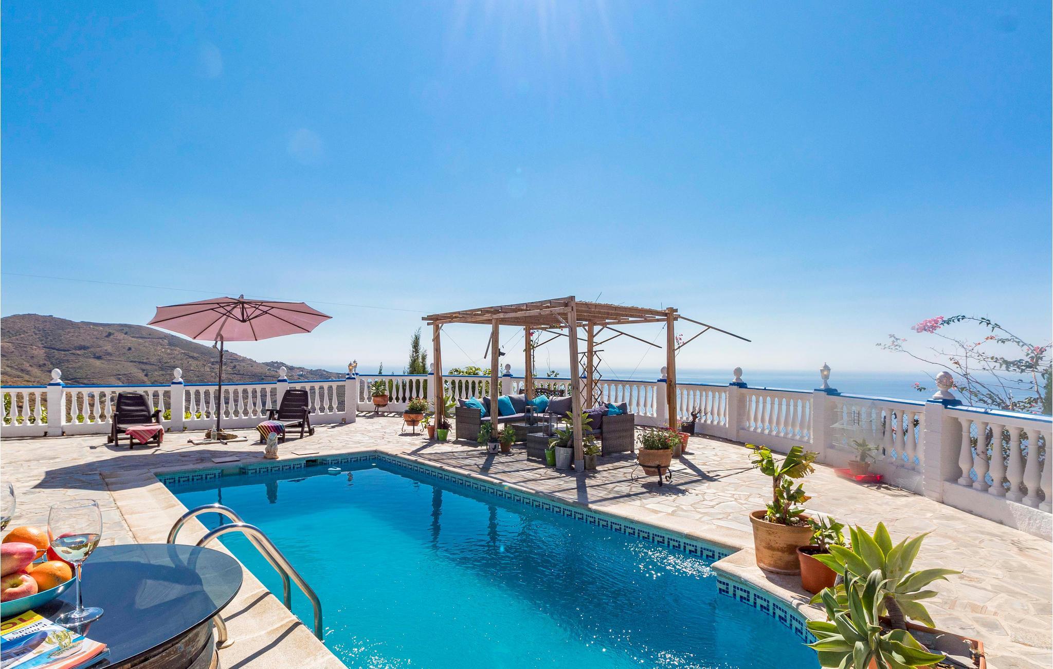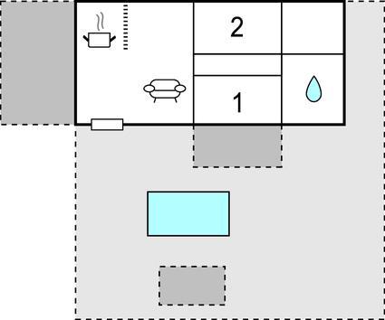 Das Ferienhaus bietet Platz für eine Familie oder Freunde, die zusammen einen entspannten Urlaub mit Sonne, Pool und schönen Urlaubsmomenten verbringen möchten. Im Inneren des Hauses erwarten Sie ein Wohnzimmer mit Essbereich und offener Küche, zwei Schlafzimmer und ein Badezimmer.