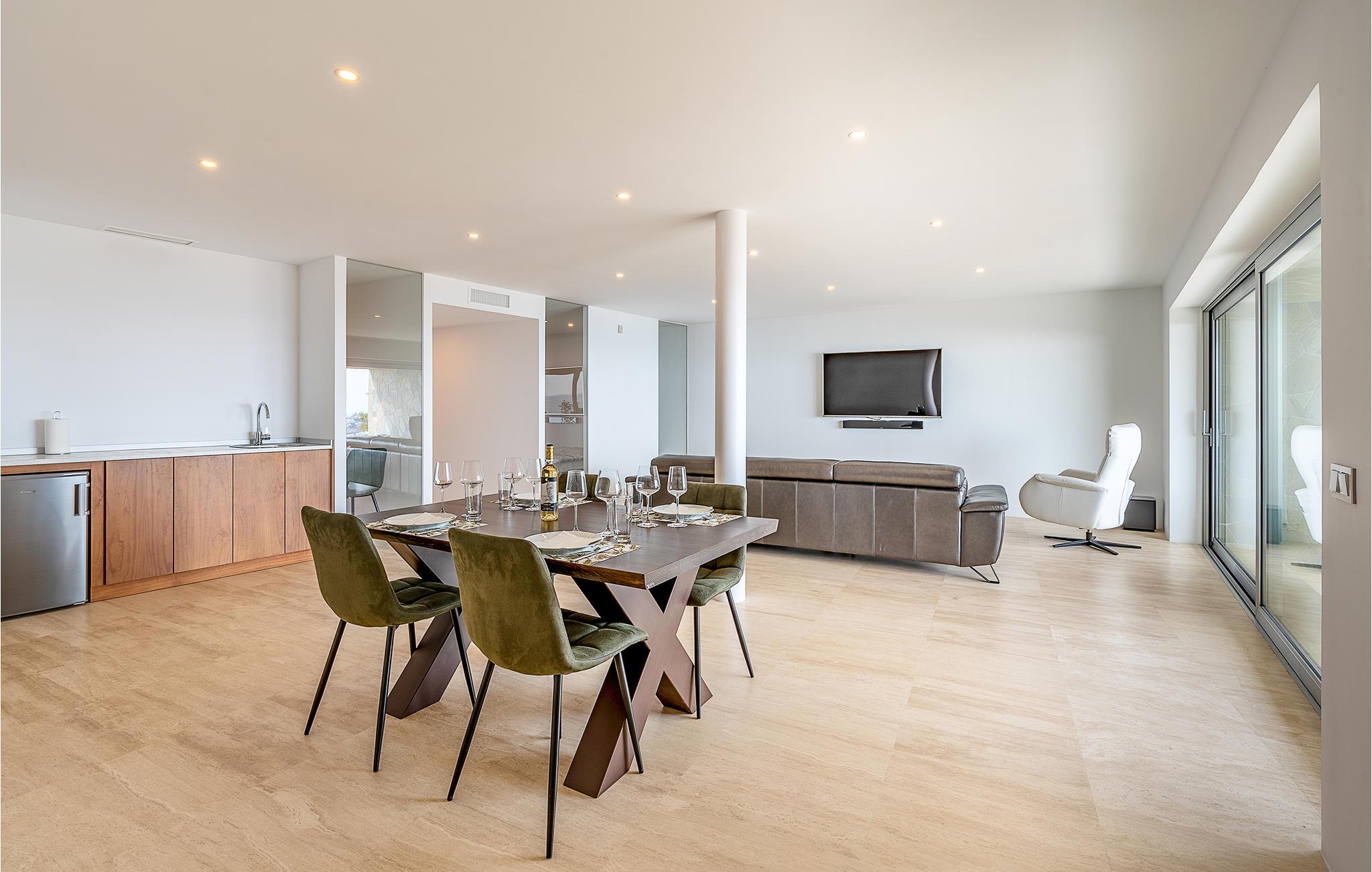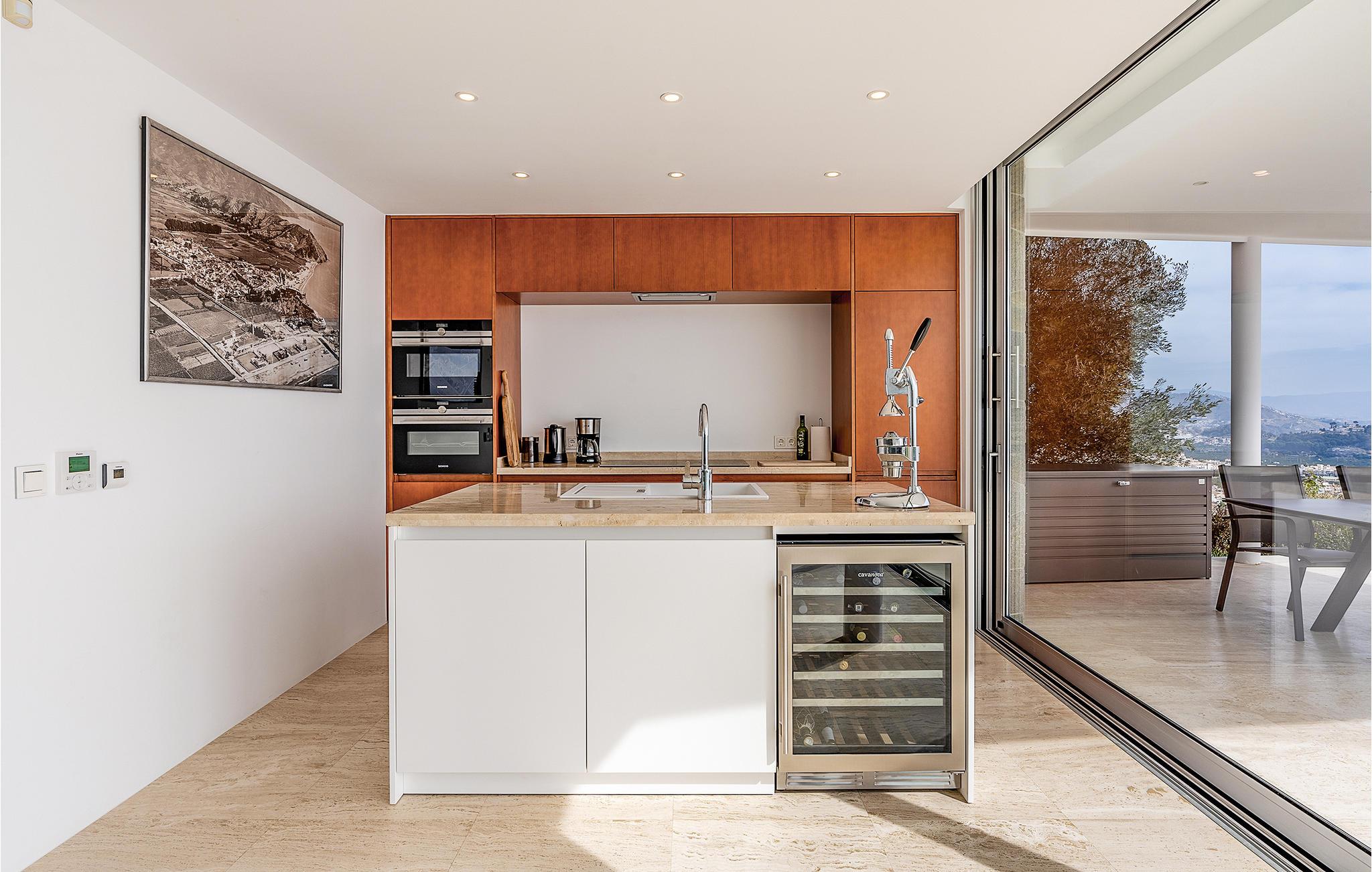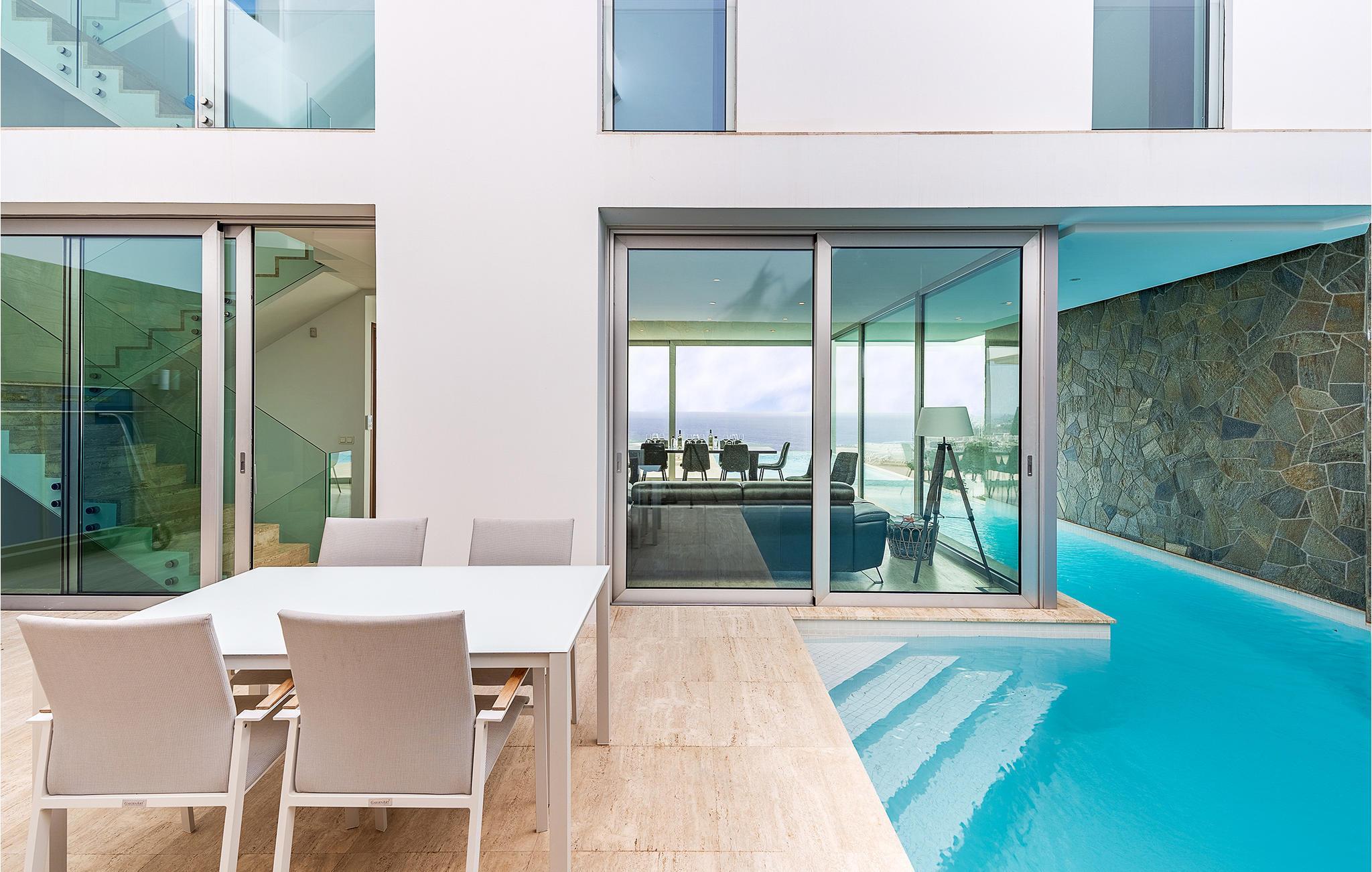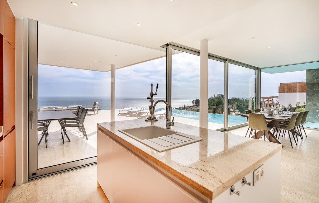 Diese moderne und sehr geräumige Ferienvilla ist der Traum Ihrer unerfüllten Urlaubswünsche. Erfüllen Sie sich den Traum und gönnen Sie sich mit Ihrer Großfamilie oder einer befreundeten Familie unvergessliche Ferien in diesem wunderschönen Haus. Die moderne Architektur mit großen Fenstern erfüllt das gesamte Haus mit natürlichem Licht. Genießen Sie es mit dem Blick auf das Meer und die Stadt am Morgen aufzuwachen und sich zu entspannen. Der Übergang von den wunderschön gestalteten Räumen in den Außenbereich sind somit fließend. Nehmen Sie am Morgen Ihr Frühstück schon auf der Terrasse ein und spüren die morgendlichen Sonnenstrahlen auf der Haut. Anschließend können Sie entweder in den fantastischen Infinitypool springen und unterm dem Haus hindurchschwimmen, an Ihrer Sommerbräune arbeiten oder einen Krimi auf den Loungemöbeln lesen.