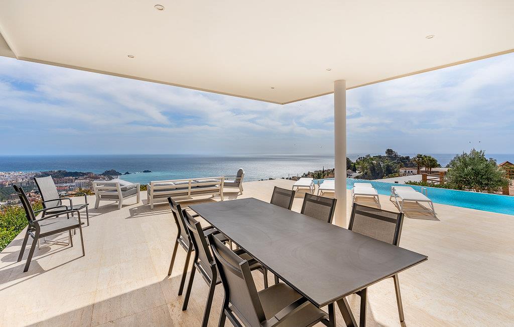 Verbringen Sie Ihren Luxusurlaub in dieser atemberaubenden Villa über den Dächern Almuñecars.