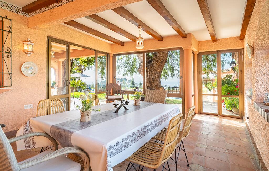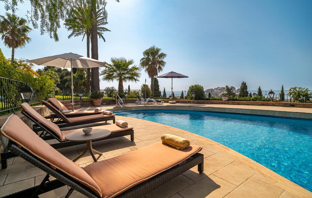 Gönnen Sie sich einen luxuriösen Traumurlaub in diesem großzügigen Ferienhaus mit Pool und Meerblick.