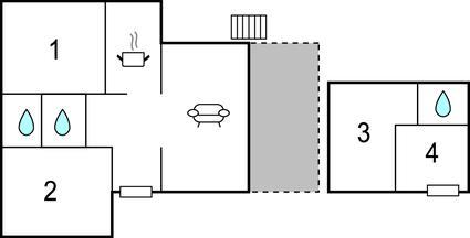 Badezimmer (nr. 3) - WC. Warmes und kaltes Wasser. Dusche