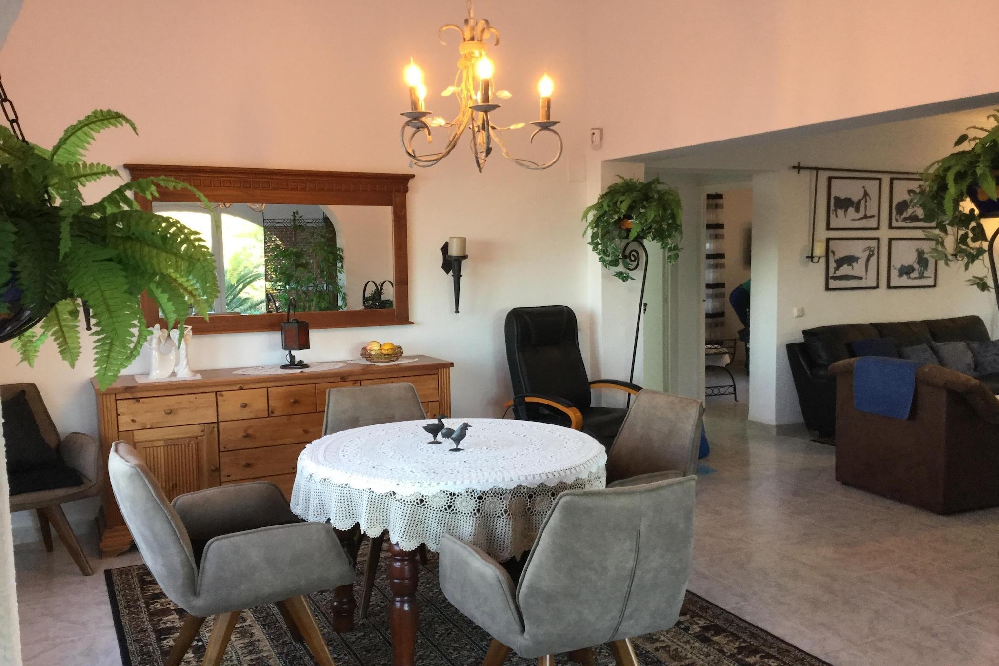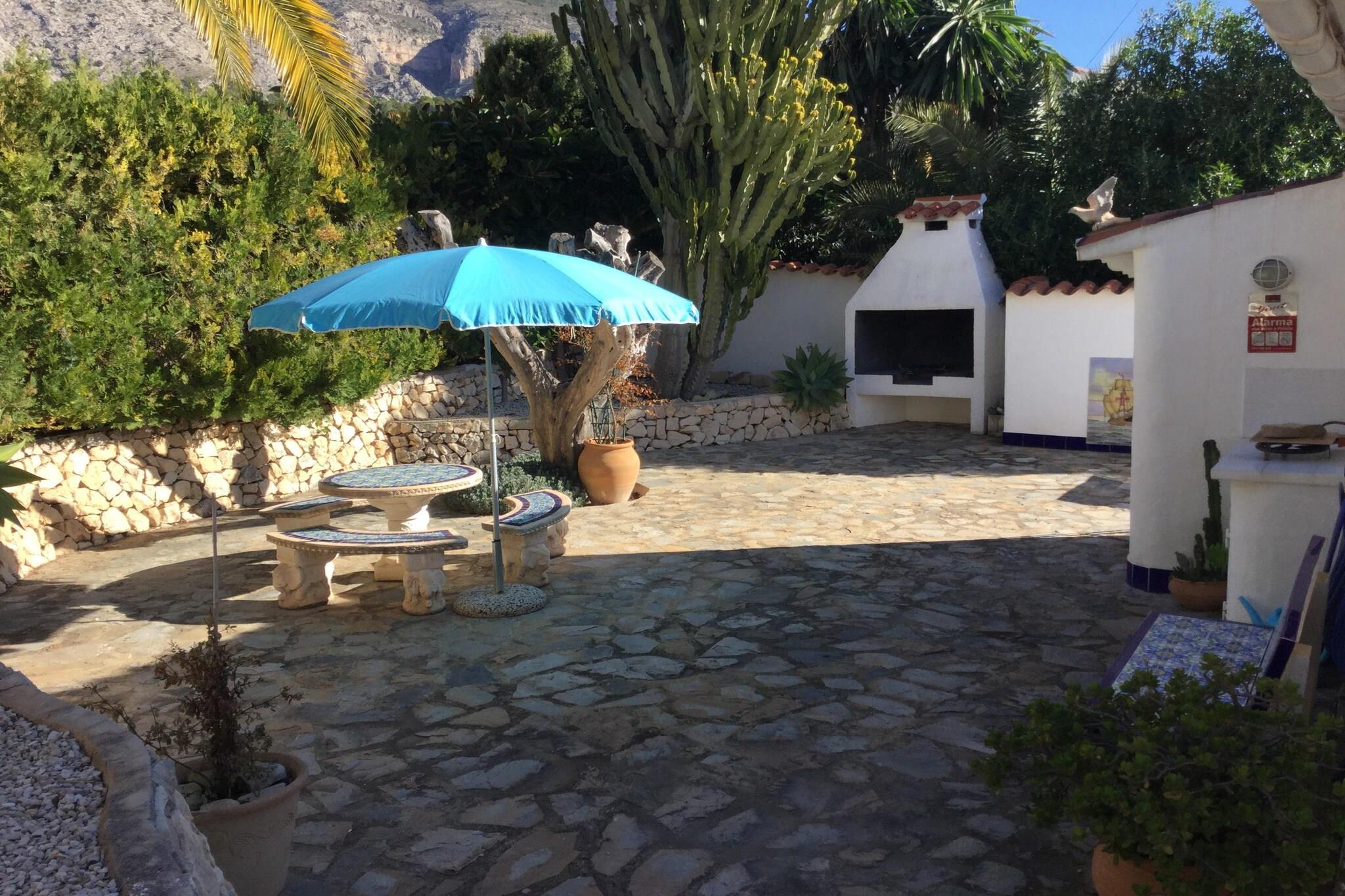Villa mit privatem Pool, geeignet für bis zu 6 Personen. Eine wunderschöne Villa mit 3 Schlafzimmern inmitten einer spektakulären Berglandschaft mit privatem Pool in Altea. Eine traditionelle Villa für 6 Personen in Altea La Vella mit einer Auswahl an Geschäften, zwei Supermärkten, einer Bäckerei und Restaurants. In einem Wohngebiet gelegen, sind die Ferienvilla und das Gelände privat und friedlich. Ein privater Pool, umgeben von einer Terrasse und einem Gasgrill im Freien. Die halboffene Küche zum Wohn- und Esszimmer ist voll ausgestattet, komplett mit Geschirrspüler und Mikrowelle.Das Ferienhaus verfügt über 3 ziemlich große Schlafzimmer mit zwei Bädern auf 2 Etagen. Ein separater Anbau mit 1 Schlafzimmer mit Doppelbett. Es gibt Parkplätze für 2 Autos vor Ort.Genießen Sie einen beleuchteten privaten Pool mit Meerblick.