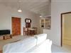 Die Wohnung im Erdgeschoss bietet ein Schlafzimmer, ein geräumiges Wohnzimmer mit integrierter Küche und einen schönen Patio-Innenhof. Die Einrichtung des Hauses ist geschmackvoll und komfortabel.