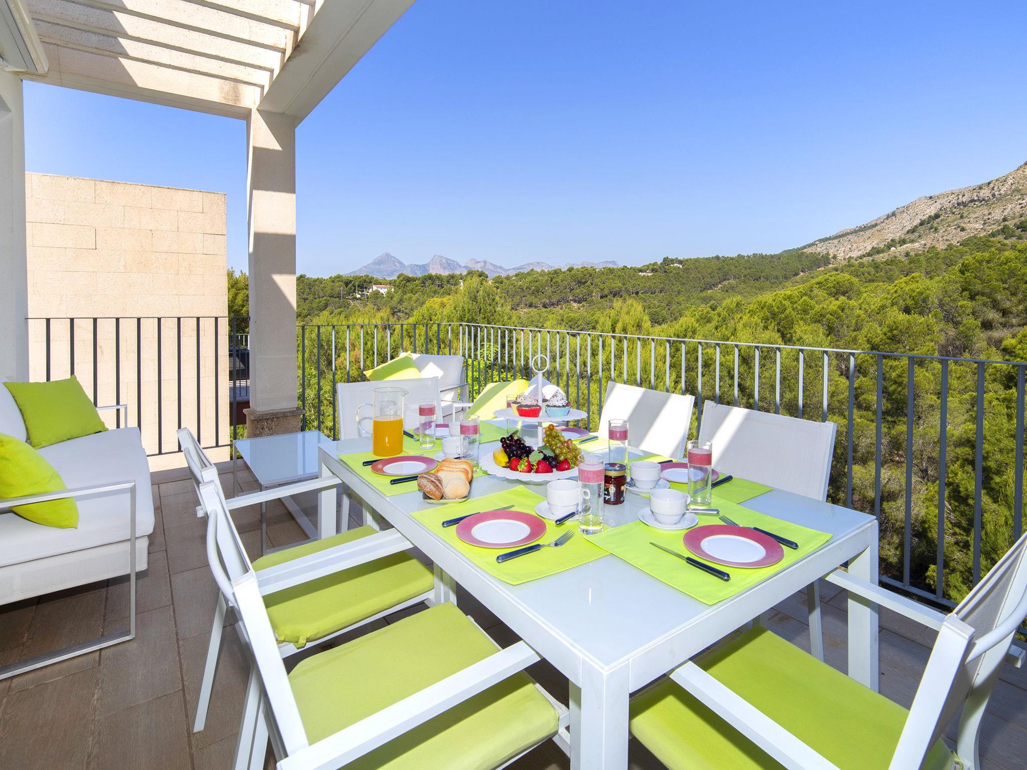 Modernes, schönes Reihenhaus "Mont Verd", auf 2 Stockwerken. 16 Häuser im Ferienresort. Am Ortsrand, 6 km vom Zentrum von Altea, ruhige Lage im Villenviertel, verkehrsberuhigte Zone, 4 km vom Meer, 4 km vom Strand. Zur Mitbenutzung: Grundstück (eingezäunt), Garten, Schwimmbad (10 x 6 m, saisonale Verfügbarkeit: 01.Jan. - 31.Dez.). Kinderbecken, Aussendusche. Supermarkt 2 km, Restaurant 2 km, Bushaltestelle 2.2 km, Felsstrand "Playa L´Olla" 4 km. Sporthafen 5 km, Jacht-Hafen 7 km, Golfplatz (9 Loch) 2.3 km. Nahe gelegene Sehenswürdigkeiten: Aqualandia Benidorm 20 km, Mundomar Benidorm 19 km, Terra Mitica Benidorm 22 km, Terra Natura Benidorm 19 km, Guadalest 22 km, Fuentes del Algar 14 km. Bitte beachten: Fahrzeug empfohlen. Der Besitzer akzeptiert keine Jugendgruppen.