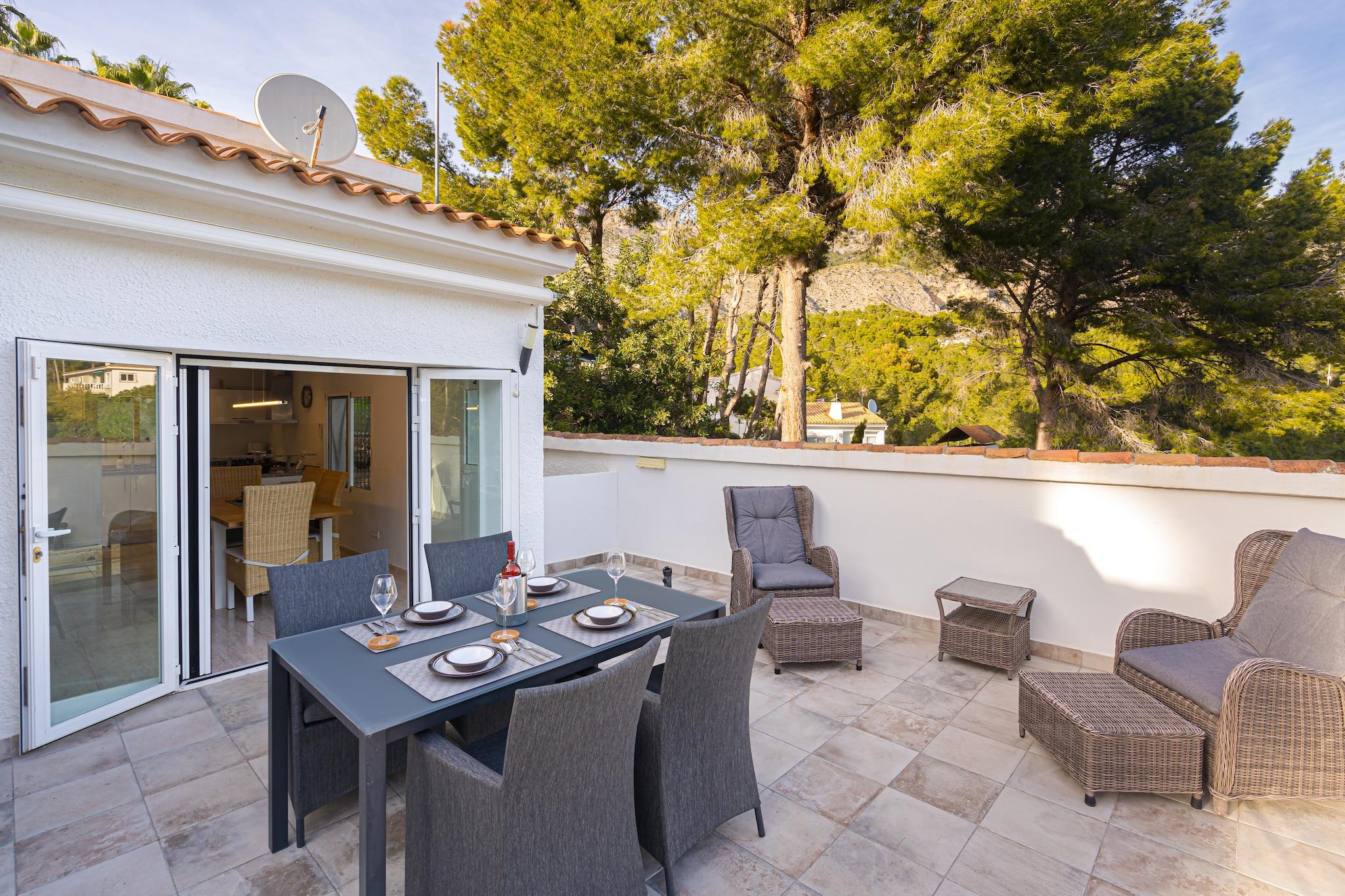 Diese schöne Villa wurde komplett renoviert. Es wurde im Ibiza-Stil neu gestaltet. Mit drei Doppelzimmern und zwei kompletten Badezimmern, verteilt auf 2 Etagen. Halboffene Küche zum Wohnzimmer. und Esszimmer, von dem aus Sie die schöne Aussicht auf die Sierra de Bernia genießen können. Vom Wohnzimmer aus hat man Zugang zur sonnigen Terrasse und zum Pool, alles auf der gleichen Ebene. Auf der Terrasse gibt es einen Grill. Perfekt vorbereitet, um die Terrasse, den Garten und den Pool in einer völlig natürlichen und mediterranen Umgebung zu genießen.