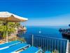 Die aus Naturstein erbaute Villa verfügt über zwei Sonnenterrassen, die nahtlos in einen hellen Wohnbereich mit großen Fenstern übergehen. Gäste können sich auf den Gartenmöbeln oder den entspannenden Sonnenliegen bei einem erfrischenden Getränk entspannen und die ruhige Atmosphäre genießen.