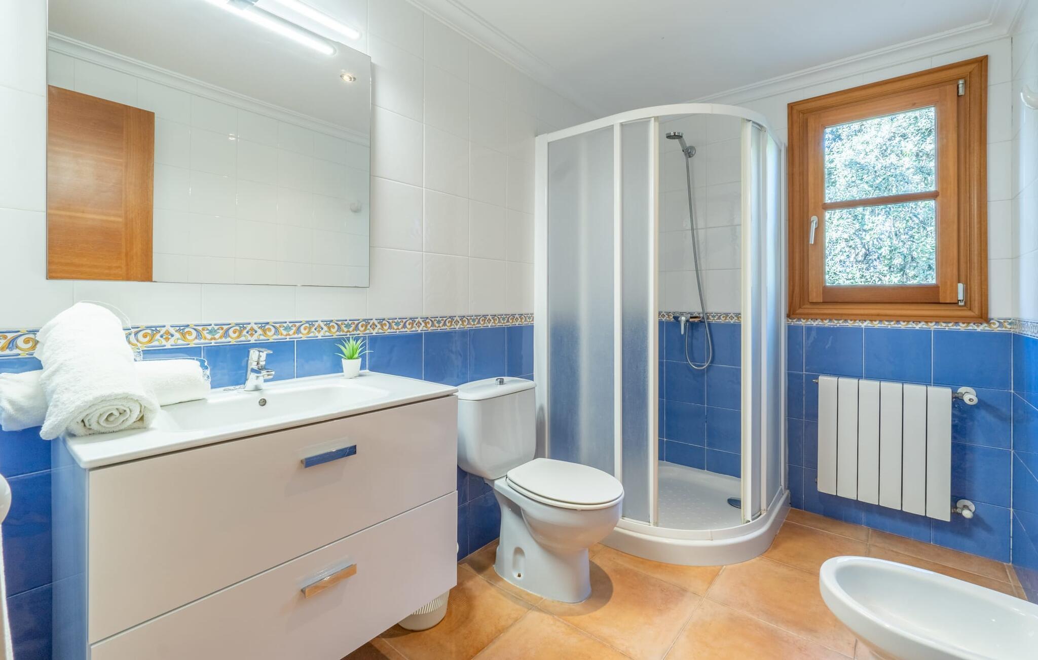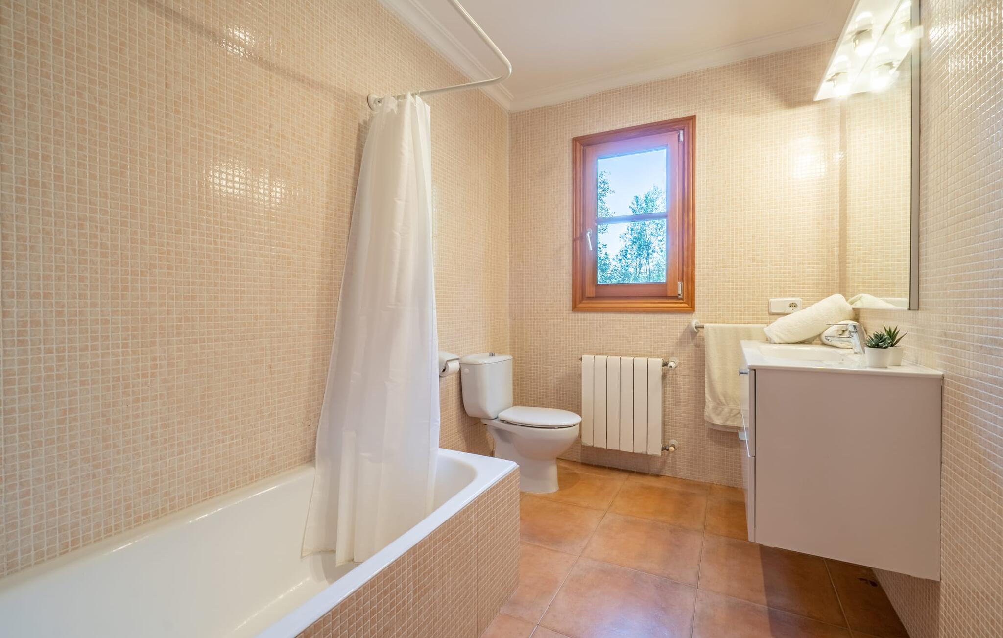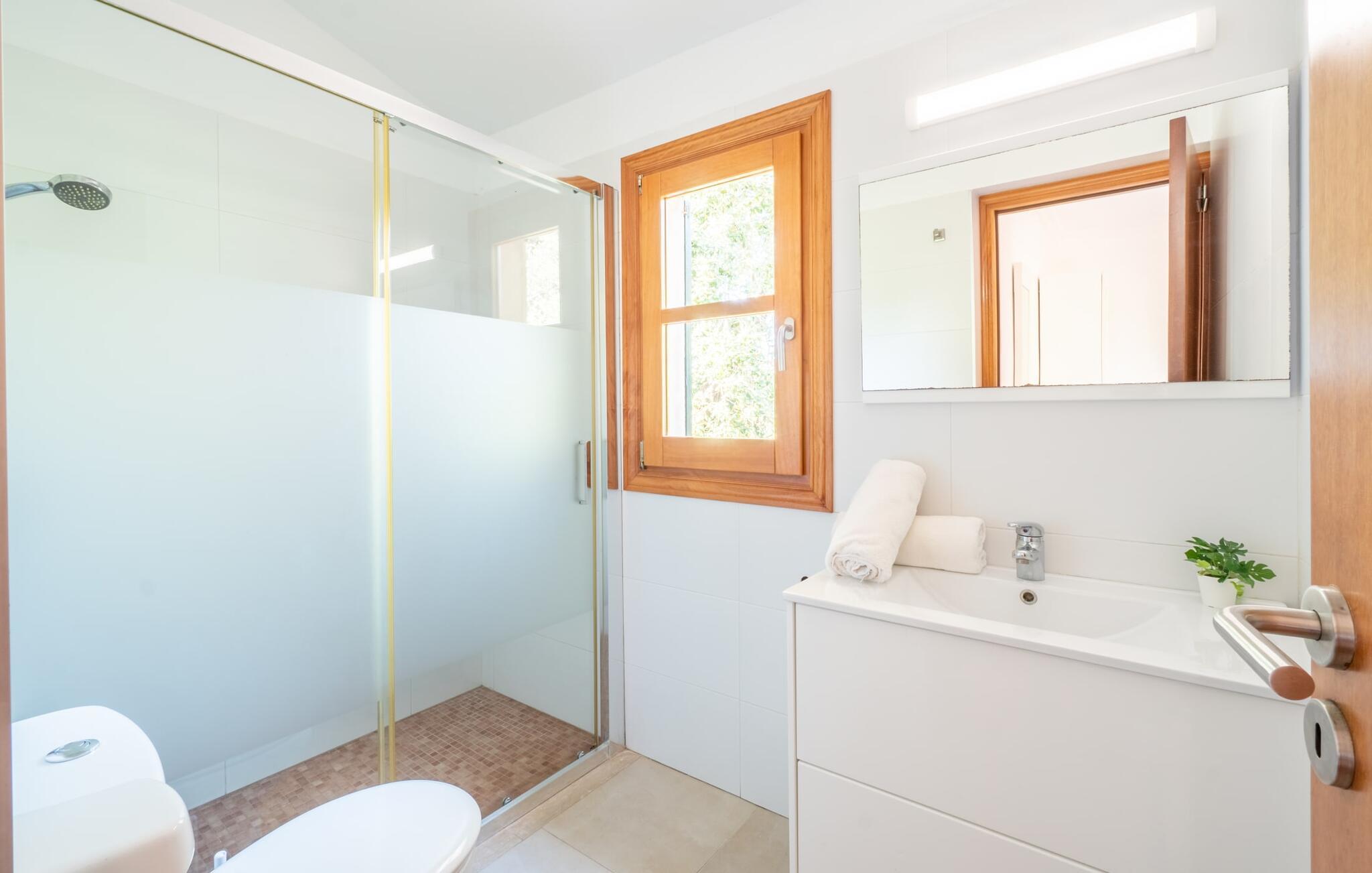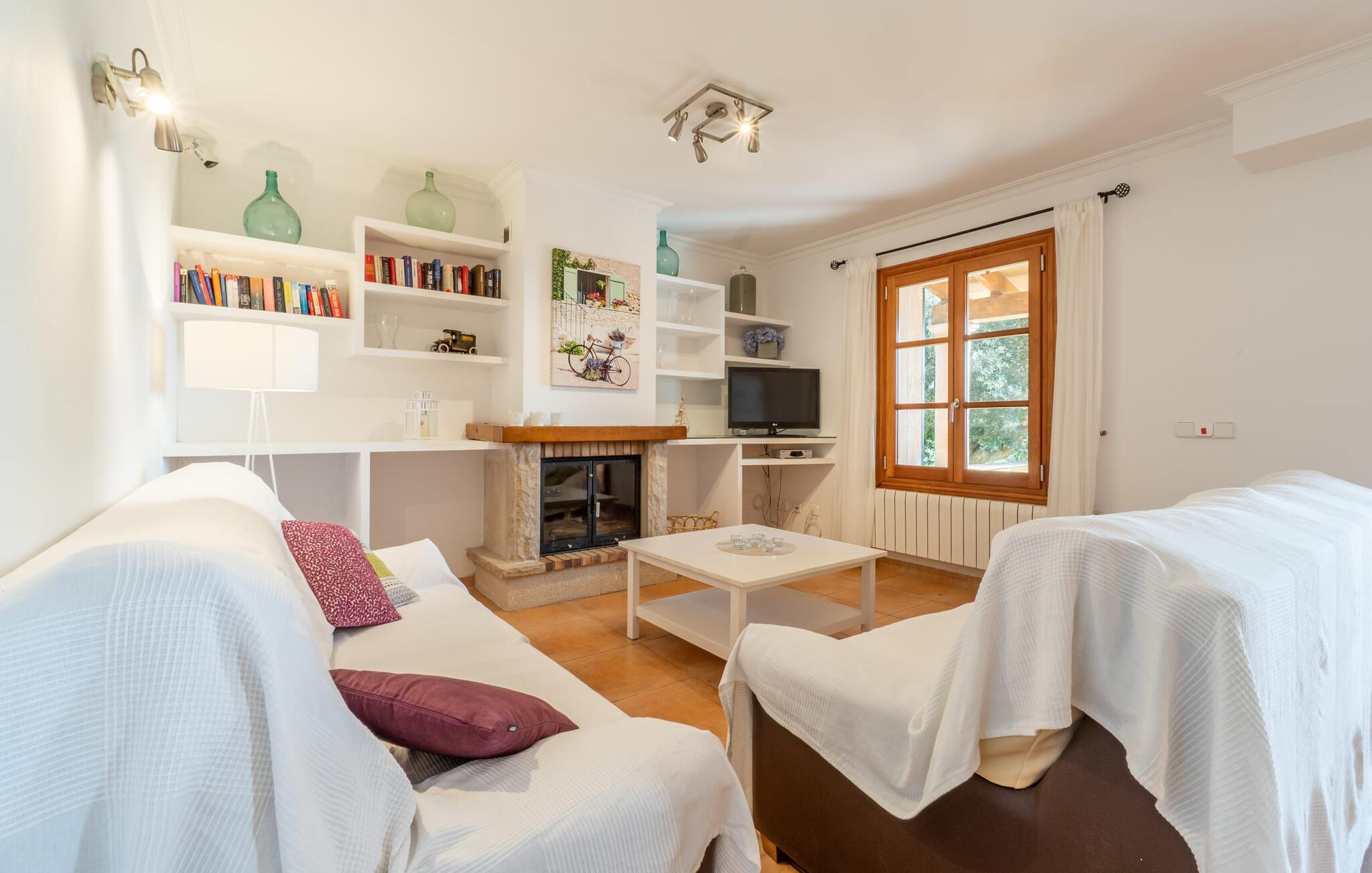 Der Innenraum verfügt über hochwertige Möbel und viel Platz zum Entspannen. Das große Wohnzimmer mit offenem Kamin bietet eine gemütliche Sofaecke zum Lesen oder Ansehen von Filmen. Der angrenzende Essbereich bietet Platz für bis zu 12 Gäste und die gut ausgestattete Küche sorgt für ein angenehmes Selbstversorgererlebnis. Neben sechs Doppelzimmern (vier im Erdgeschoss, zwei im ersten Stock) und sechs modernen Badezimmern bietet diese Finca auch eine Zentralheizung für eine gemütliche Atmosphäre in den kühleren Monaten.