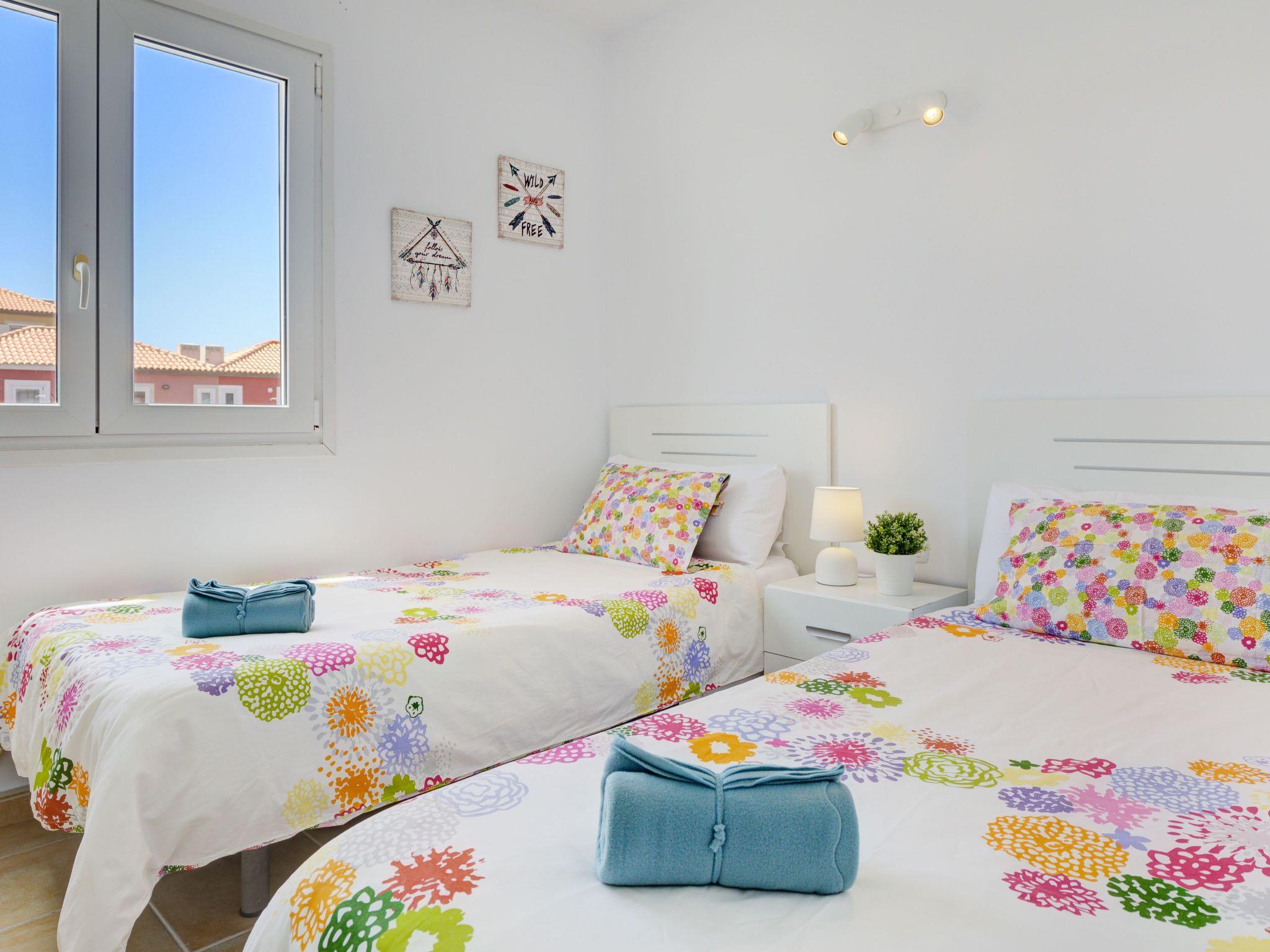 Im Inneren besticht "Fuerteventura Costa Golf" durch sein geräumiges und helles Wohn- und Esszimmer mit Blick auf den Pool, das sich auf eine schöne private Terrasse erstreckt. Die neue Küche ist komplett mit den neuesten Geräten ausgestattet, darunter eine Waschmaschine, ein Kühlschrank mit Gefrierfach ohne Frost A+, ein Cerankochfeld und eine Mikrowelle. Sie bietet außerdem alle Annehmlichkeiten, die man braucht, um sich wie zu Hause zu fühlen, von kostenlosem Wi-Fi bis zu TVSAT mit über 90 Kanälen und einem DVD-Player. Die Zimmer sind eine Oase der Ruhe, eines mit einem Doppelbett und das andere mit zwei Einzelbetten, beide mit großen Einbauschränken.