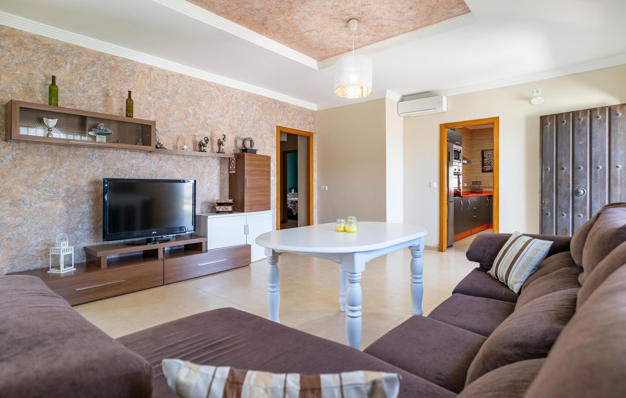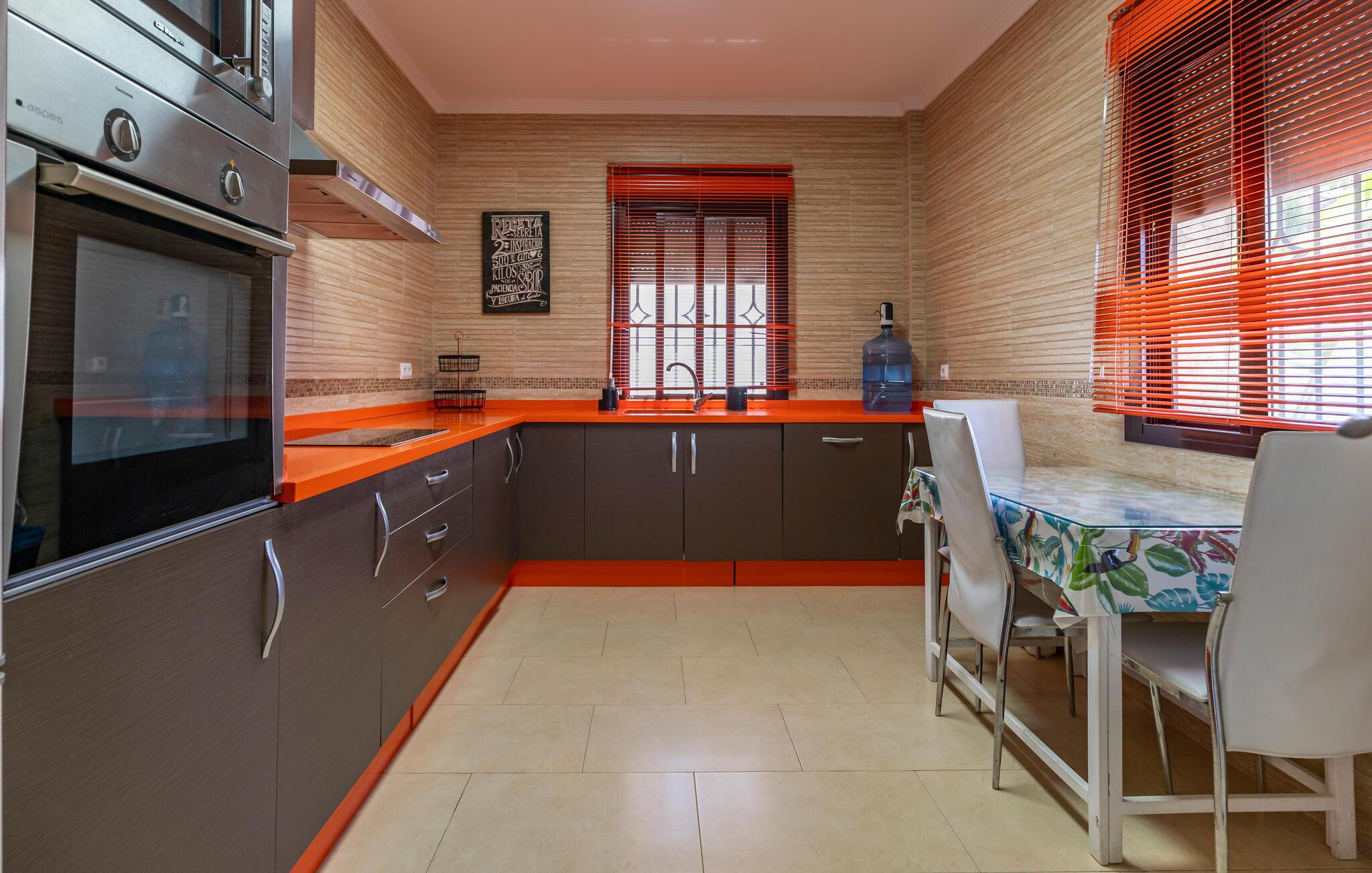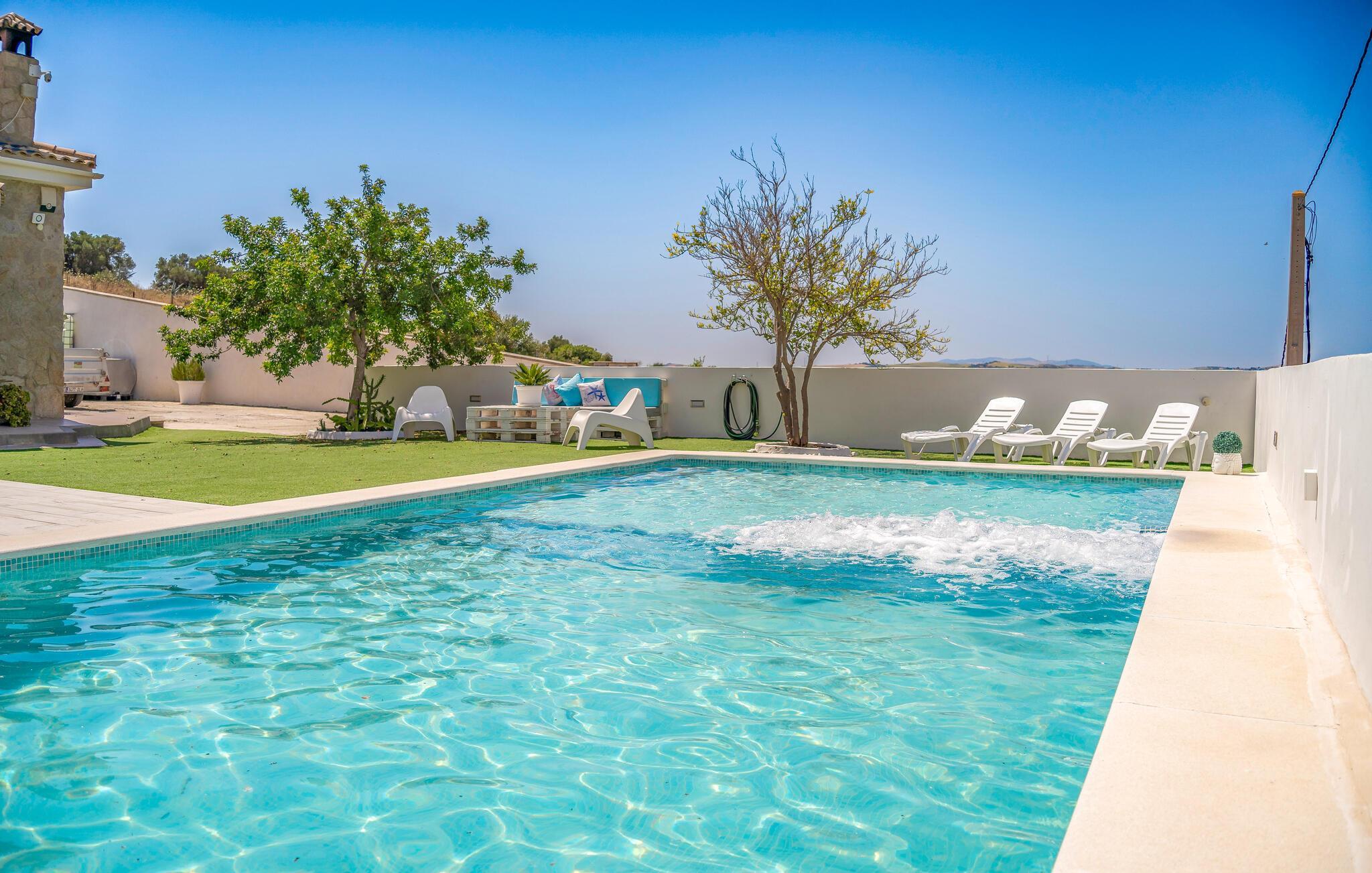 Beginnen Sie den Tag mit einem erfrischenden Bad im großzügigen Pool und genießen Sie die Sonne auf der einladenden Terrasse. Der Blick auf die malerische Landschaft von Arcos de la Frontera wird Sie verzaubern und lädt dazu ein, die Seele baumeln zu lassen. Entspannen Sie anschließend im Whirlpool und lassen Sie den Alltagsstress hinter sich. Genießen Sie die ländliche Idylle und gönnen Sie sich eine Auszeit vom hektischen Alltag. Im Außenbereich steht Ihnen zudem eine Tischtennisplatte zur Verfügung. Eine perfekte Gelegenheit, um sich sportlich zu betätigen und Spaß mit der Familie zu haben. Der überdachte Essbereich im Freien lädt zu gemeinsamen Mahlzeiten ein, während der Grill Ihnen die Möglichkeit bietet, abends in geselliger Runde den Tag ausklingen zu lassen.