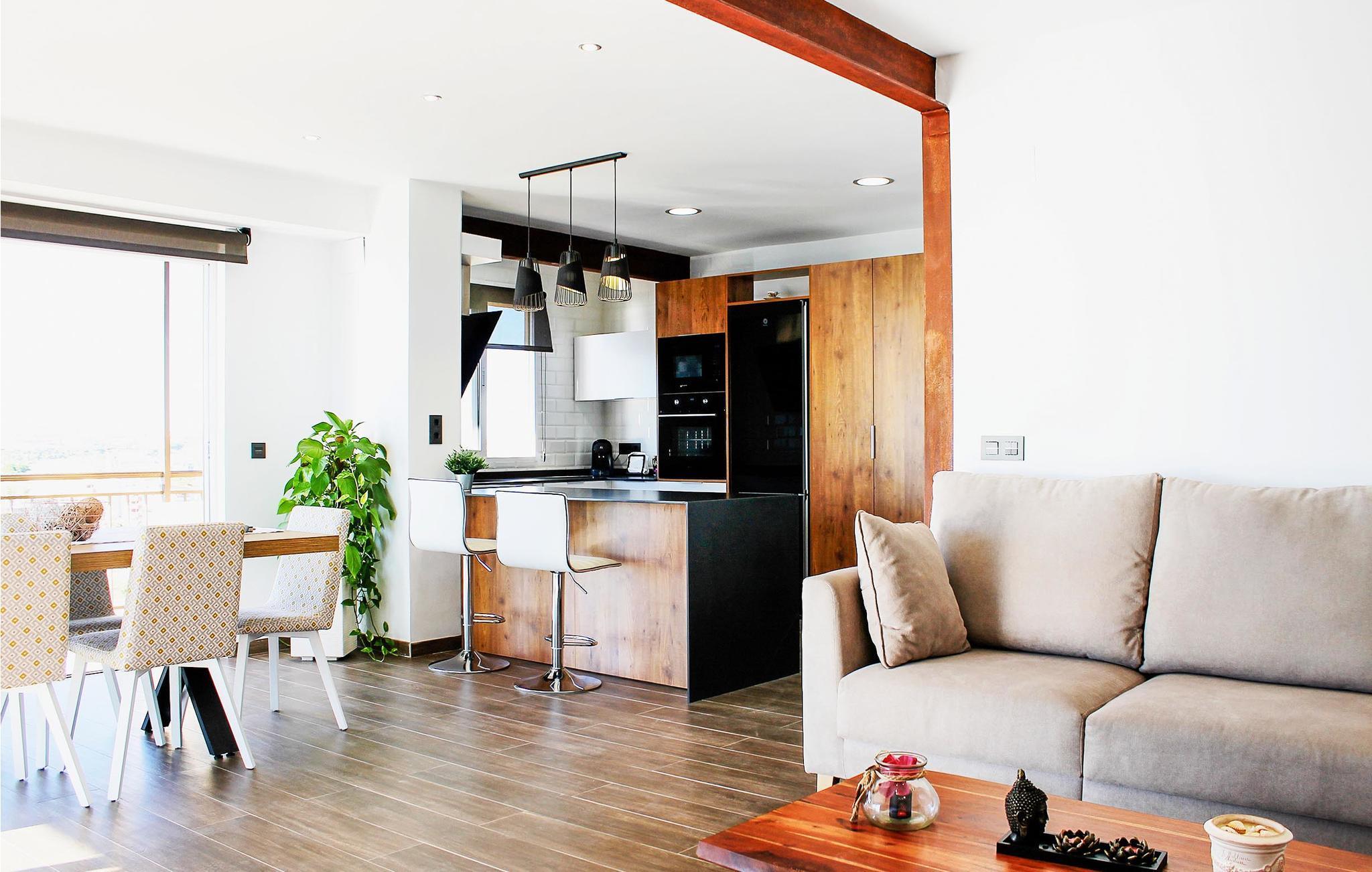 Die Wohnung empfängt Ihre Gäste nur wenige Schritte vom Strand entfernt und bietet Ihnen ein herrliches Meerespanorama. Entspannen Sie hier in stilvollem Ambiente und genießen Sie schon beim gemeinsamen Frühstück den wundervollen Blick auf das Meer durch große Fenster. Nach einem erlebnisreichen Tag können Sie hier zusammen kochen und es sich auf dem bequemen Sofa gemütlich machen.