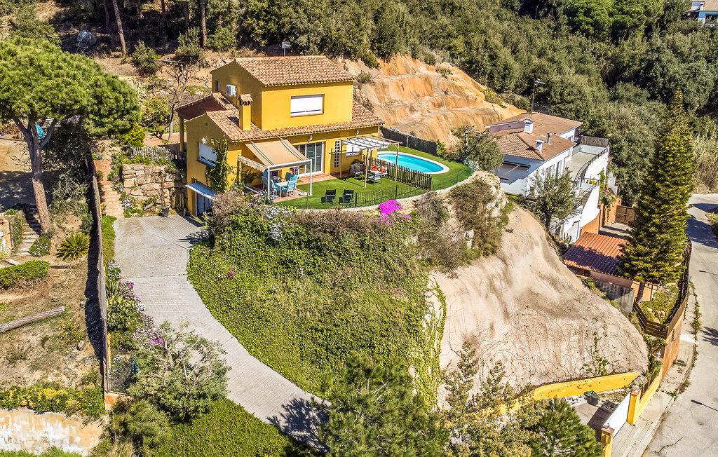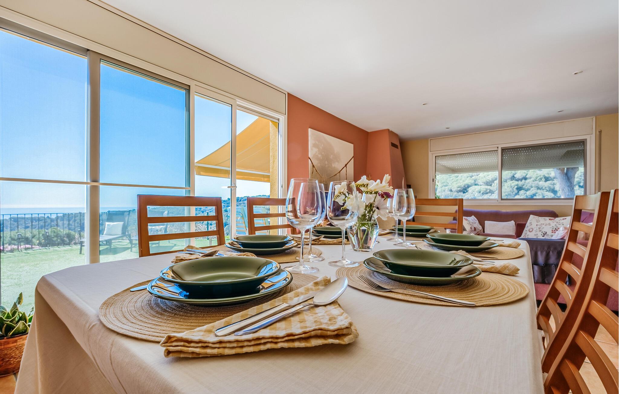 Verbringen Sie sonnige Tage in diesem großzügigen Ferienhaus mit Pool und wunderschönem Panoramablick bis zum Meer.