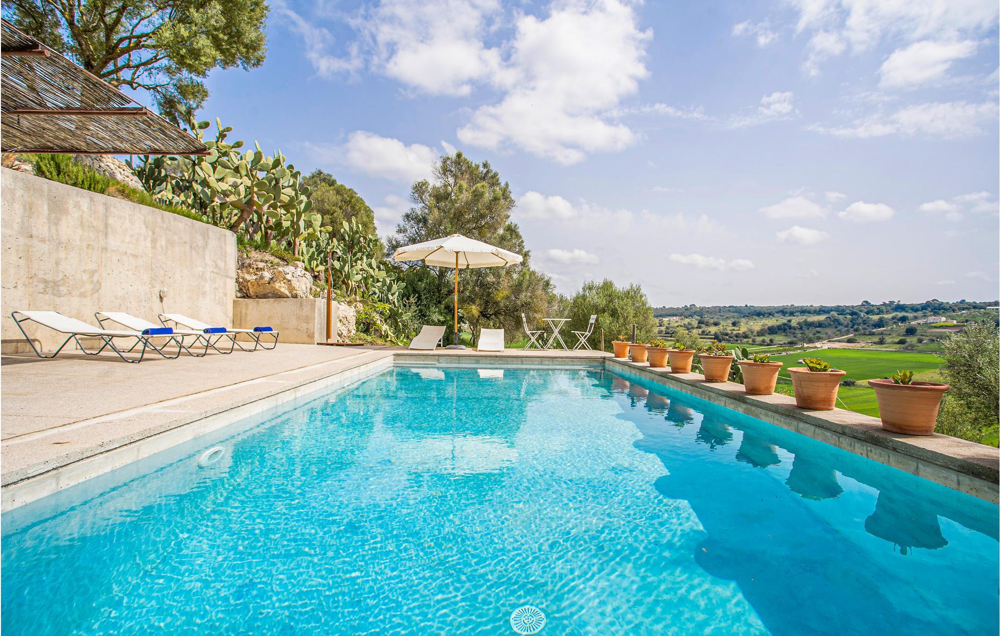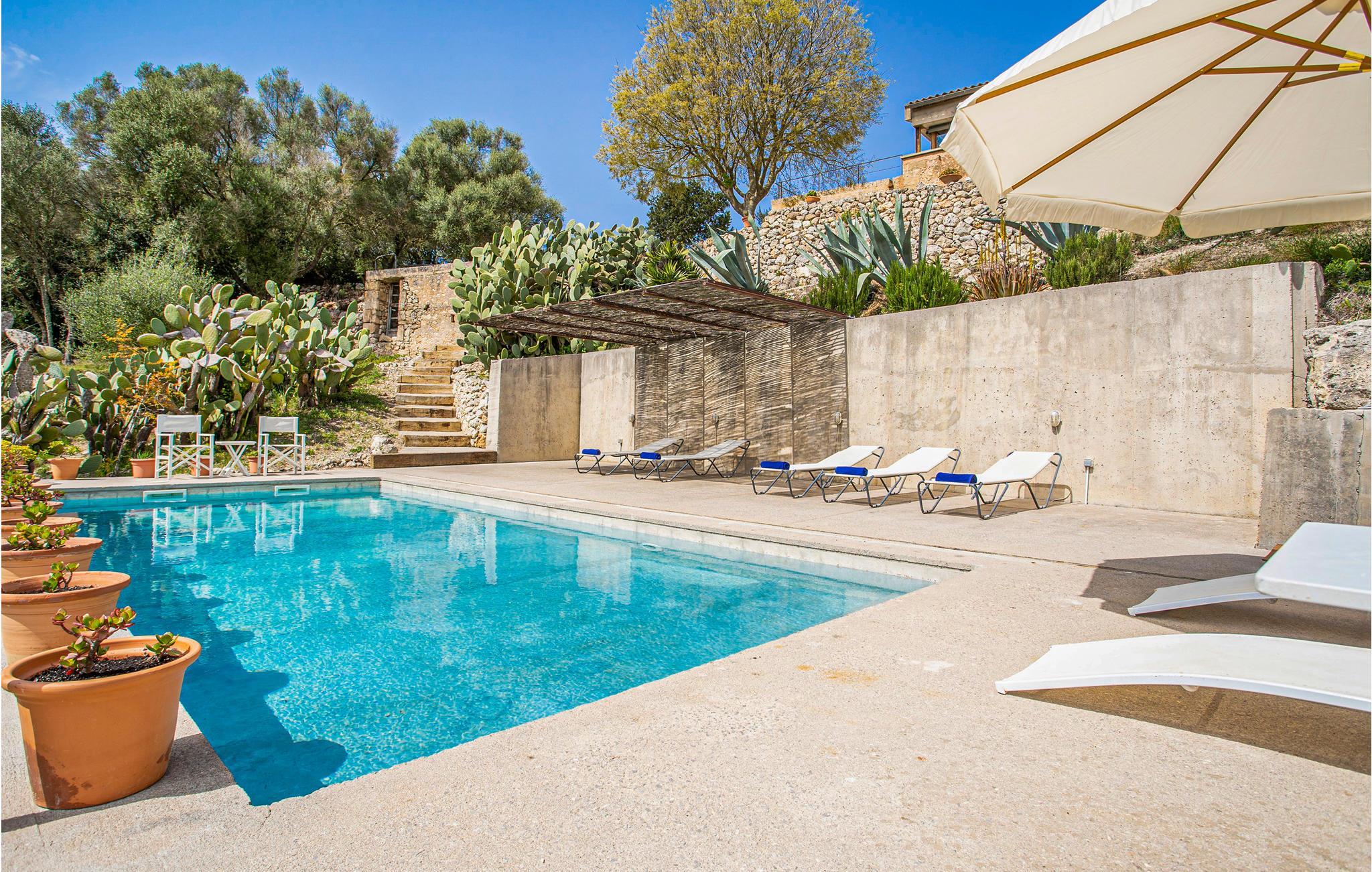 Diese traumhafte Finca ist eine Oase der Entspannung - inmitten der Natur, absolut ruhig und nicht einsehbar. Das geschichtsträchtige Landgut wurde nach dem neusten Stand umgebaut und vollsaniert. Schwimmen Sie in der modern gestalteten Poolanlage mit hautfreundlichem, leicht salzhaltigem Wasser. Für die Kinder stehen ein Trampolin, ein Fußballtor, Tischfußball, Badmintonschläger und weitere Spiele zur Verfügung. Das Hauptschlafzimmer verfügt über ein originelles, integriertes, offenes Badezimmer und einer herrlichen Terrasse mit schöner Weitsicht. Schlafzimmer4 und Schlafzimmer5 sind mit einem offenen Durchgang verbunden. Gruppen (ausgenommen Familien und Pärchen ü30) auf Anfrage und mit Spezialkaution. Lizenznummer: ET/2507