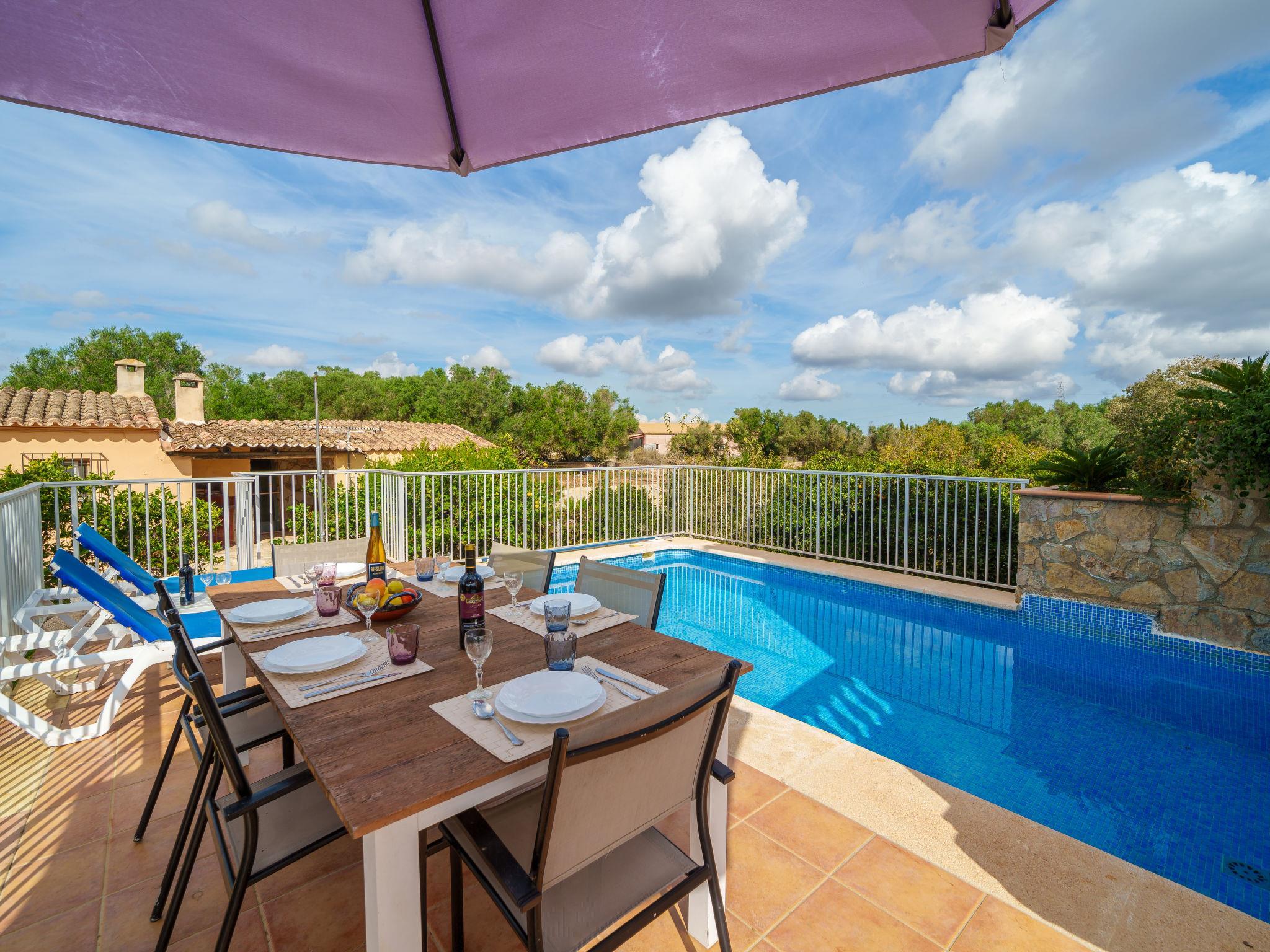 Sehr gemütliche, komfortable Villa "Campas", auf 2 Stockwerken, umgeben von Feldern. Ausserhalb des Ortes, 850 m vom Zentrum von Ariany, ruhige, sonnige Lage, 18 km vom Meer, im Grünen. Zur Alleinbenutzung: Grundstück (eingezäunt), schöner Garten mit Pflanzen und Bäumen, Schwimmbad rund (3 x 7 m, 50 - 220 cm tief, saisonale Verfügbarkeit: 01.Jan. - 31.Dez.). Aussendusche, Sitzplatz, Gartenmöbel, Grill, Poolpflege durch den Besitzer/Gärtner. Lebensmittelgeschäft 1.3 km, Supermarkt 5.5 km, Bar 1.2 km, Bäckerei 1.2 km, Zentrum zu Fuss in 10 Minuten erreichbar, Bushaltestelle "Ariany" 850 m, Sandstrand "Playas de Muro - Can Picafort" 18 km. Sporthafen 20 km, Golfplatz (18 Loch) 31.2 km, Sportzentrum 1.6 km, Radweg 50 m. Nahe gelegene Sehenswürdigkeiten: Pueblos:Sta. Margalida,Petra,Vilafranca, Manacor. Wandergebiete: Ruta de Petra a Sa Valleta, Rutas Cicloturistas, Serra de Tramuntana. Bitte beachten: Fahrzeug empfohlen. Objekt geeignet für 7 Erwachsene. Der Besitzer akzeptiert keine Jugendgruppen. Flugplatz 44 km vom Haus. Ferienwohnung Ref. ES8900.100.1 befindet sich auf dem gleichen Grundstück. In dieser Anlage zusätzlich mietbar: 2 Chalets.
