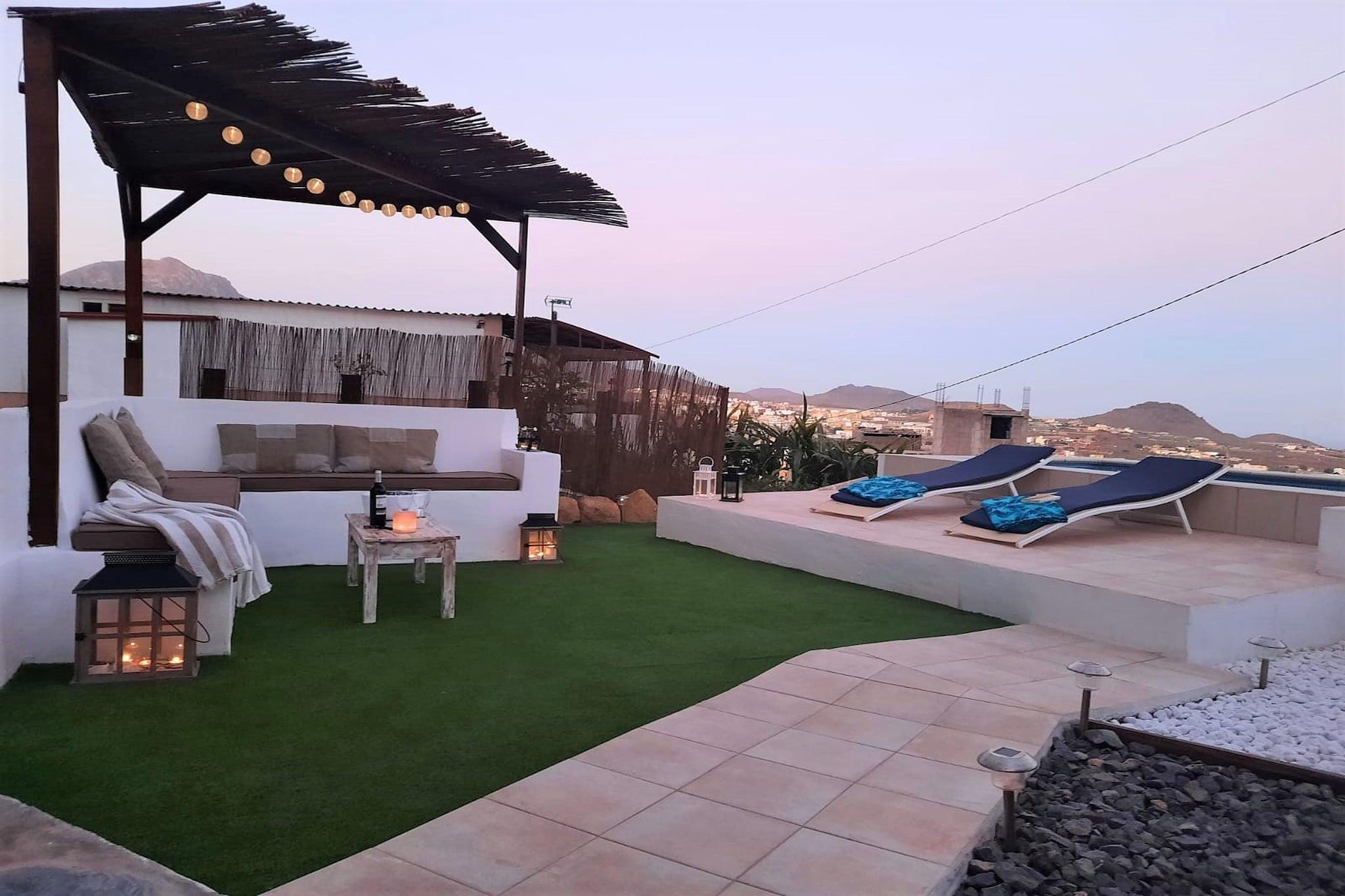 Casa Héctor ist ein Haus mit privatem Schwimmbad, Hängematten, Solarium, Bio-Gemüsegarten und Grill. Dieses schöne Ferienhaus in Arona verfügt über ein Schlafzimmer und ein Wohn- / Schlafzimmer für 4 Personen. Es ist die ideale Unterkunft, wenn Sie Intimität und Privatsphäre suchen, perfekt, um der Stadt zu entfliehen, sich auszuruhen, die Aussicht, das Äußere des Hauses und das Meer zu genießen, nur wenige Minuten entfernt. Das Zentrum ist 1,8 km entfernt Qualitätszeit, den Markt genießen und das leckere Essen genießen. Es gibt viele Meeresstrände in und um die Umgebung, an denen Sie inmitten von Sonne und Sandwasser entspannen können. Das Geschäft für allgemeine Lieferungen und das Restaurant sind 950 m vom Haus entfernt, von wo aus Sie das Nötigste kaufen und alles essen können, was Ihr Herz begehrt. Das Haus verfügt über ein Solarium und eine private Terrasse, auf der Sie die Aussicht auf die Umgebung genießen können. Es steht ein Parkplatz zur Verfügung. Die Kinder können sich auf dem Hochstuhl und dem Kinderbett entspannen, die hier zur Verfügung gestellt werden. Bereiten Sie leckere Mahlzeiten in der Küche zu und legen Sie sie auf den Esstisch. Der Flughafen Teneriffa Süd liegt 10 km entfernt. Besuche sind verboten, nur Personen, die sich bei der Ankunft korrekt registriert und ihre Identität nachgewiesen haben, können untergebracht werden. Nichtbeachtung führt zur sofortigen Abreise der Gäste und zur Stornierung ihrer Reservierung ohne Anspruch auf Rückerstattung.