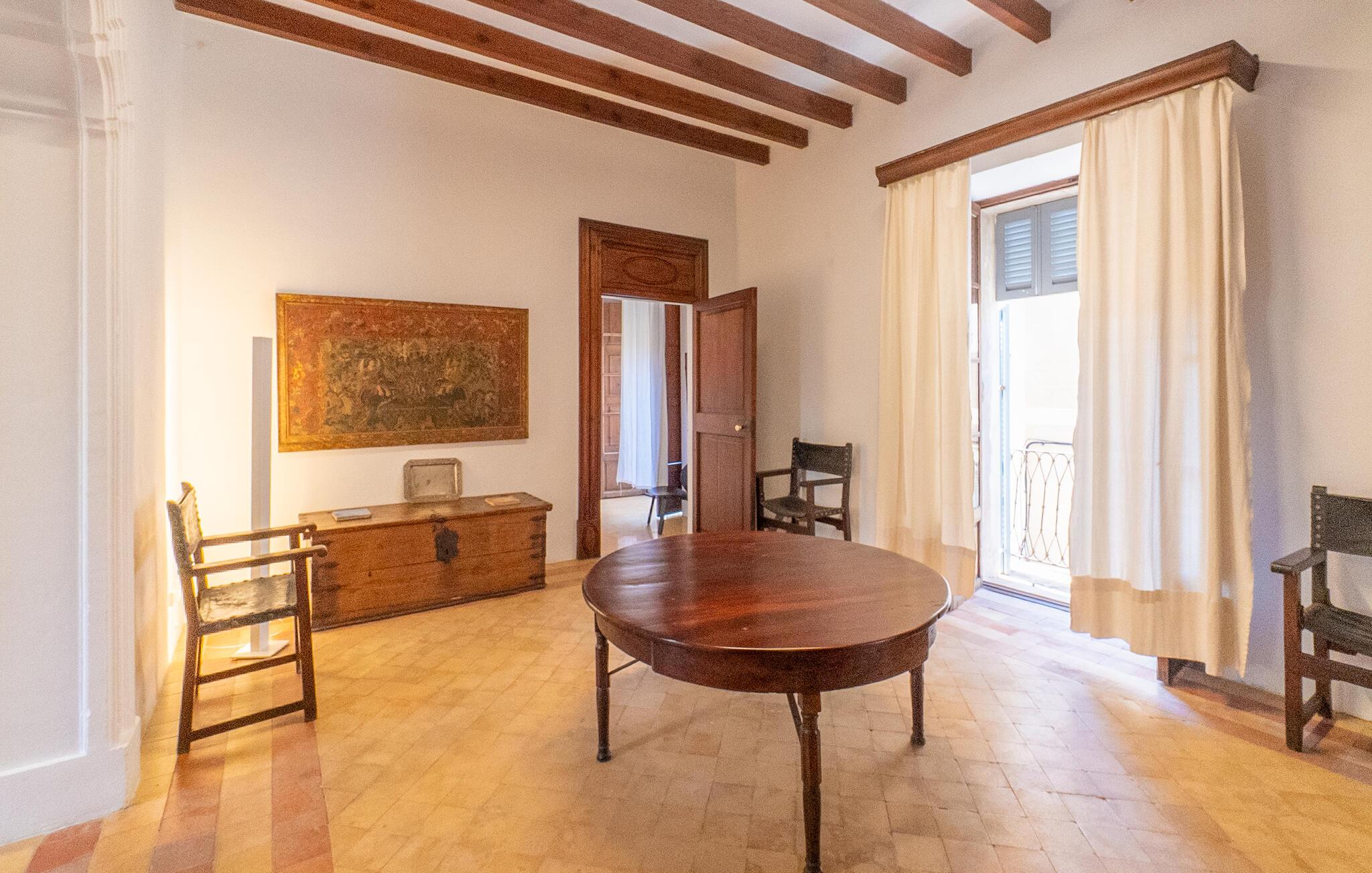 Genießen Sie einen unvergesslichen Aufenthalt in diesem stilvollen Mallorca-Ferienhaus. Umgeben von einem wunderschönen Garten bietet Ihnen dieses Haus historisches Flair und modernen Komfort. Betreten Sie das elegante Interieur mit hohen Decken, freiliegenden Holzbalken und stilvollen Möbeln. Machen Sie es sich in den geräumigen Wohnbereichen gemütlich und entspannen Sie auf dem großen Sofa. Die großzügige Küche lädt zum gemeinsamen Zubereiten von regionalen Spezialitäten ein. Nutzen Sie die zahlreichen großen Flächen im Haus für Ihre morgendlichen Yogaübungen.