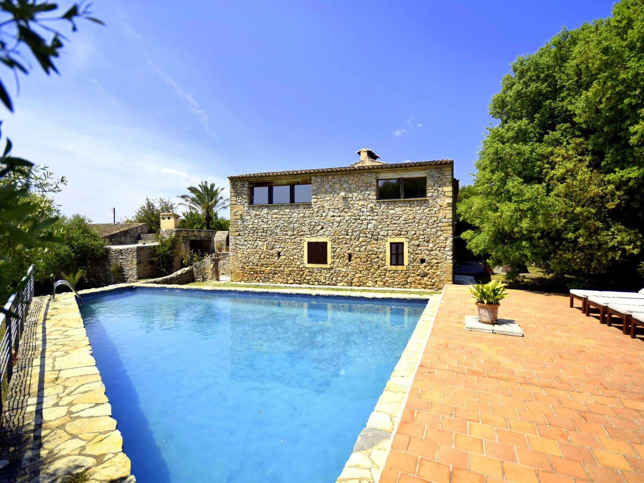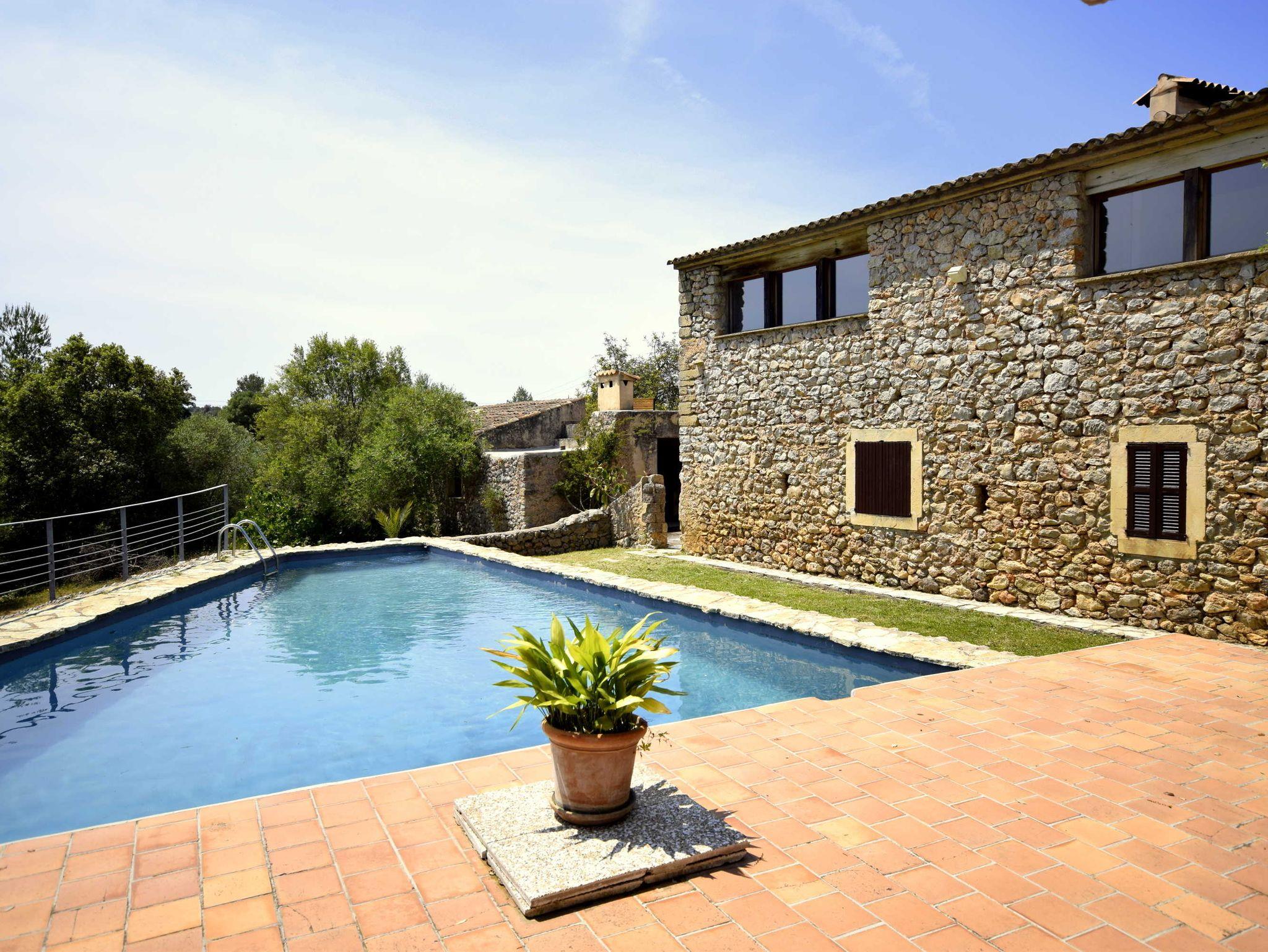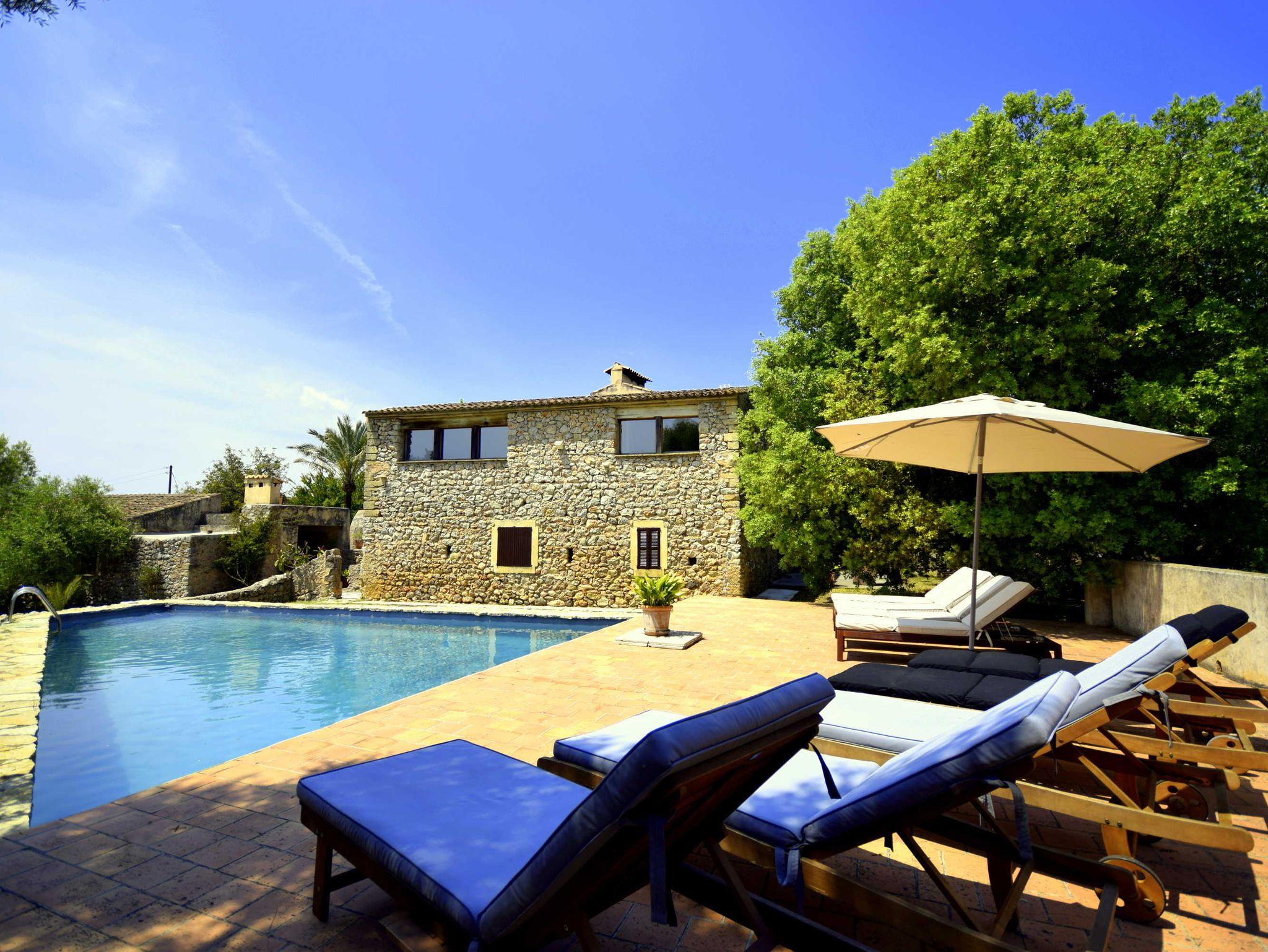 Diese historische Finca Son Pastor aus dem Beginn des 19. Jahrhunderts wurde 2003 unter Erhaltung klassischer Elemente liebevoll restauriert und modernisiert. Auf 60.000 Quadratmeter Grundstückgröße gelegen bietet auch das Haus mit Nebengebäuden und Terrassen reichlich Platz, Rückzugspunkte und Ruhe. Der Pool wurde aus einem ehemaligen Wasserdepot umfunktioniert und ist zwischen 4 und 7 Meter breit bei einer Länge von 12 Metern. Er fällt von 1,5 Meter bis auf 3 Meter ab !Das Haus kann ohne weiteres mit mehr als 10 Personen genutzt werden, wobei eine Aufbettung notwenig wird. Die Finca verfügt über mehrere Terrassen. Im Haus verfügen Sie über 5 helle und geräumige Schlafzimmer, 4 davon mit Einzelbetten die entweder zusammen oder getrennt stehen und ein Doppelbett. Ebenso drei moderne Bäder.