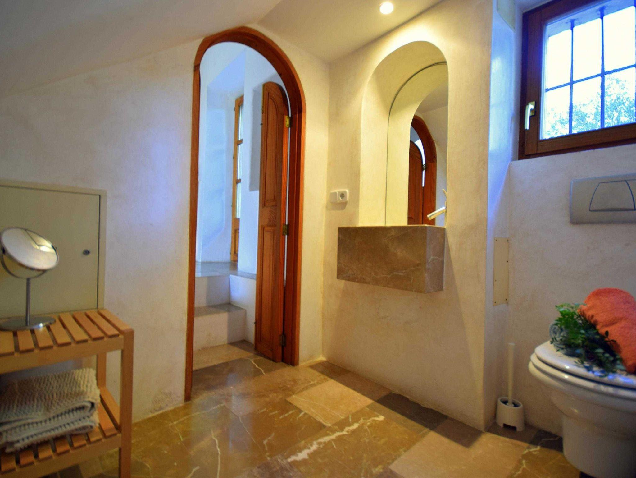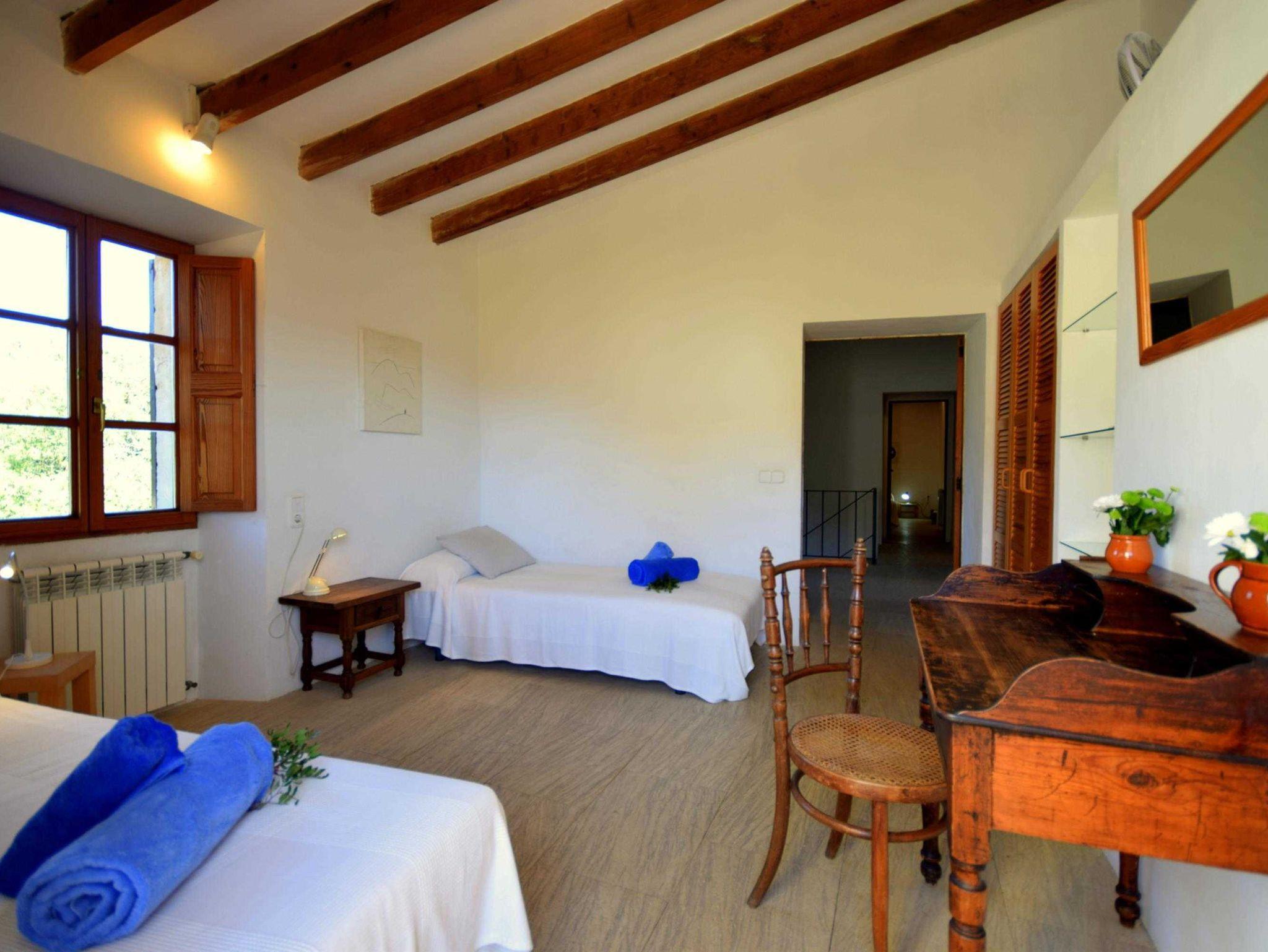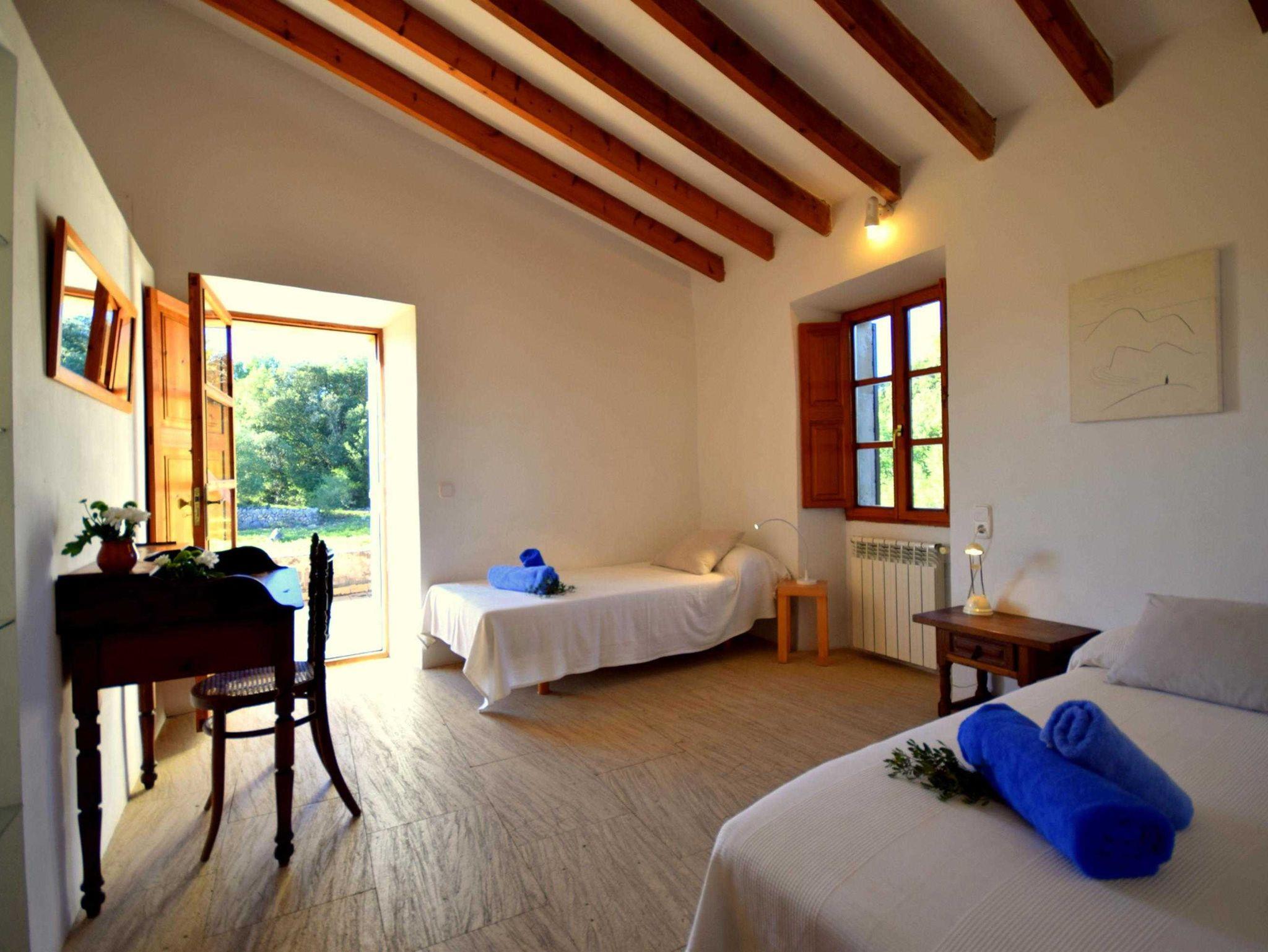 Diese historische Finca Son Pastor aus dem Beginn des 19. Jahrhunderts wurde 2003 unter Erhaltung klassischer Elemente liebevoll restauriert und modernisiert. Auf 60.000 Quadratmeter Grundstückgröße gelegen bietet auch das Haus mit Nebengebäuden und Terrassen reichlich Platz, Rückzugspunkte und Ruhe. Der Pool wurde aus einem ehemaligen Wasserdepot umfunktioniert und ist zwischen 4 und 7 Meter breit bei einer Länge von 12 Metern. Er fällt von 1,5 Meter bis auf 3 Meter ab !Das Haus kann ohne weiteres mit mehr als 10 Personen genutzt werden, wobei eine Aufbettung notwenig wird. Die Finca verfügt über mehrere Terrassen. Im Haus verfügen Sie über 5 helle und geräumige Schlafzimmer, 4 davon mit Einzelbetten die entweder zusammen oder getrennt stehen und ein Doppelbett. Ebenso drei moderne Bäder.