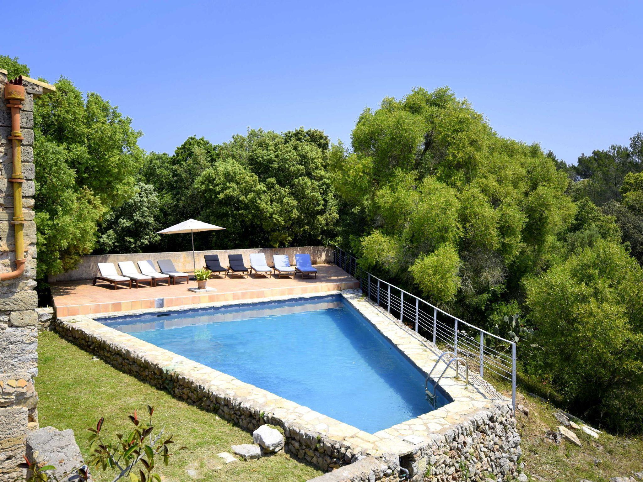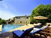 Der Aussenbereich liegt sehr ruhig unweiten des Waldes mit privatem Pool und überdachter Grillecke.