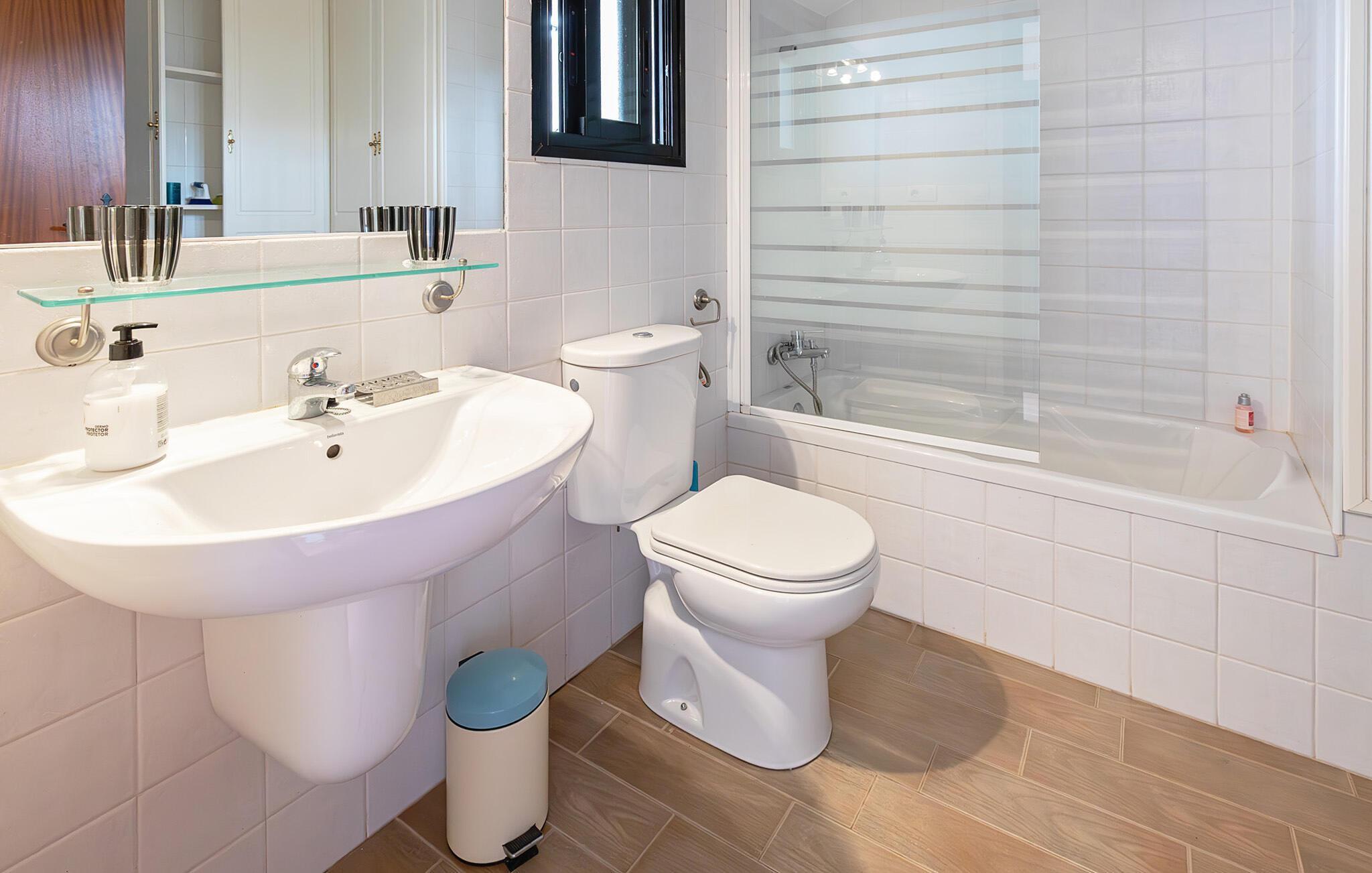 Badezimmer (nr. 1) - WC. Warmes und kaltes Wasser. Dusche und Badewanne