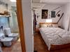 Haupteingang ins Zwischengeschoß: Diele. Küche (4 Induktionsfelder, Backofen, Mikrowelle, Geschirrspüler, Kühl-/Gefrierkombination, Kaffeemaschine (Kapseln), Toaster). Schlafzimmer mit franz. Bett und direkter Zugang zu Dusche mit Massagedüsen, Bidet und WC.