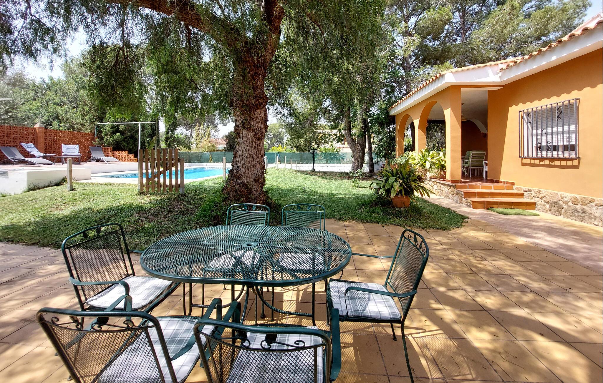 Erfrischen Sie sich nach Lust und Laune im Pool und tanken Sie neue Energie auf der Sonnenliege. Nach einer Partie Basketball können Sie sich für ein stimmungsvolles Abendessen auf der Terrasse versammeln.