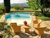 Privater Pool, umgeben von Rasenflächen, mit der Möglichkeit einer Umzäunung für die Sicherheit der Kleinsten.