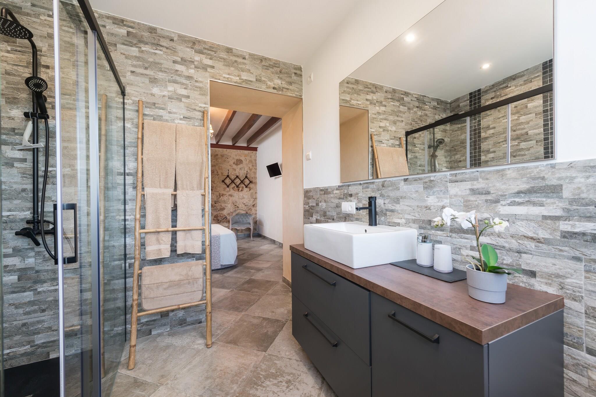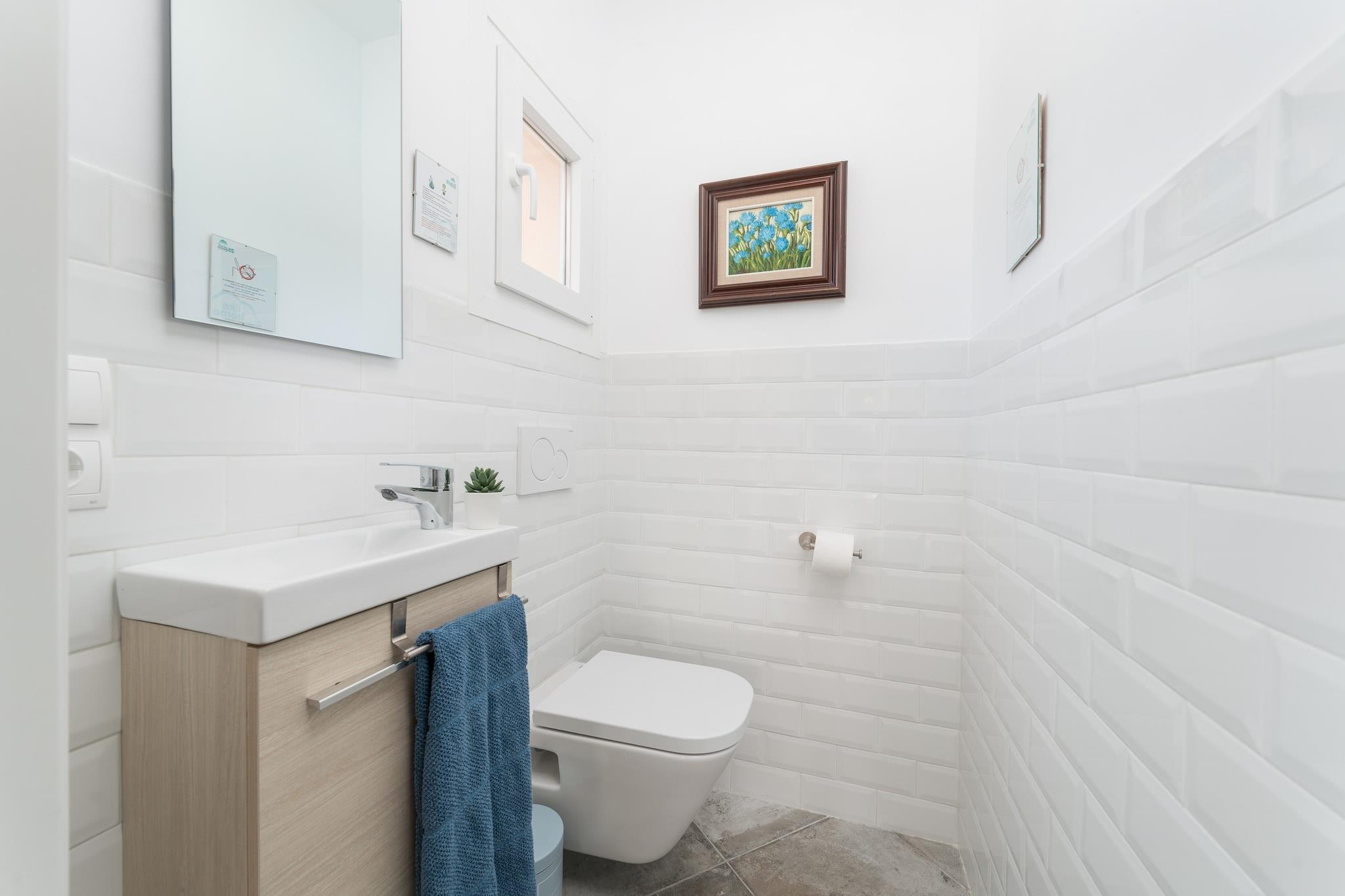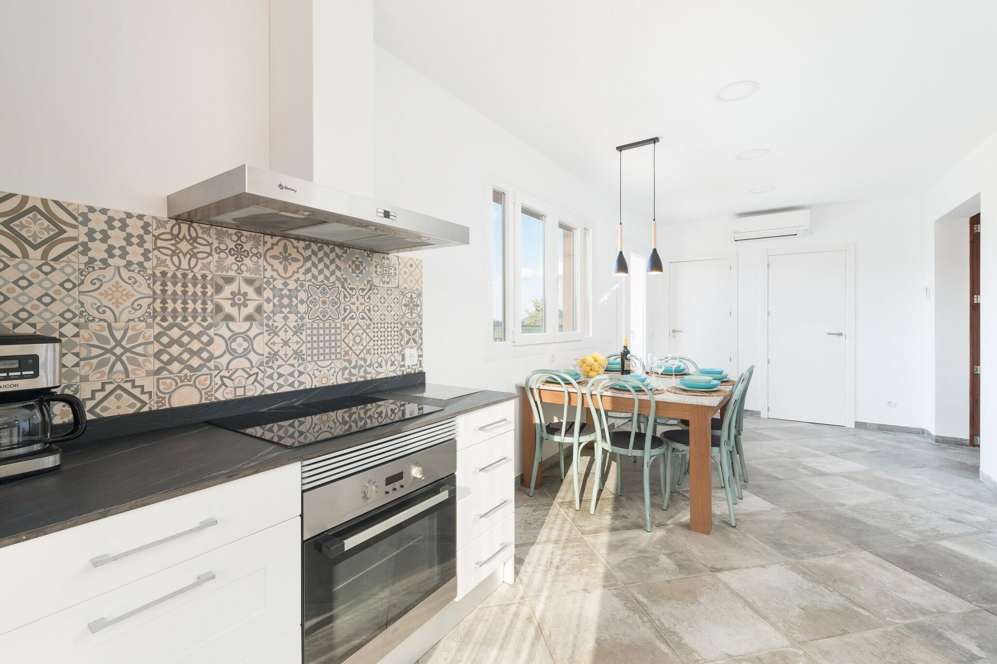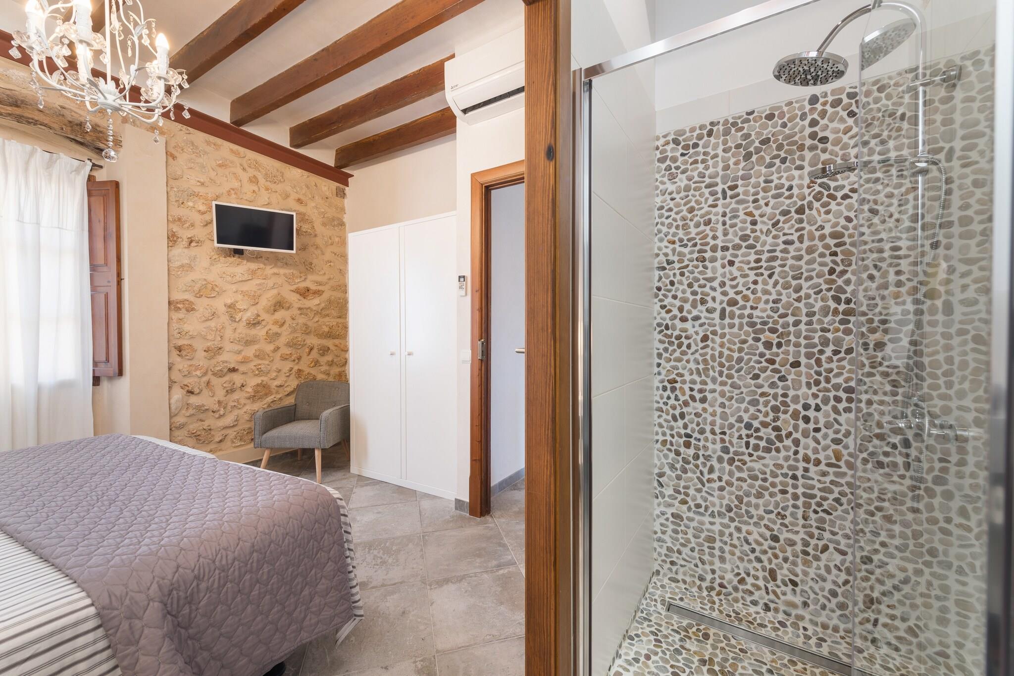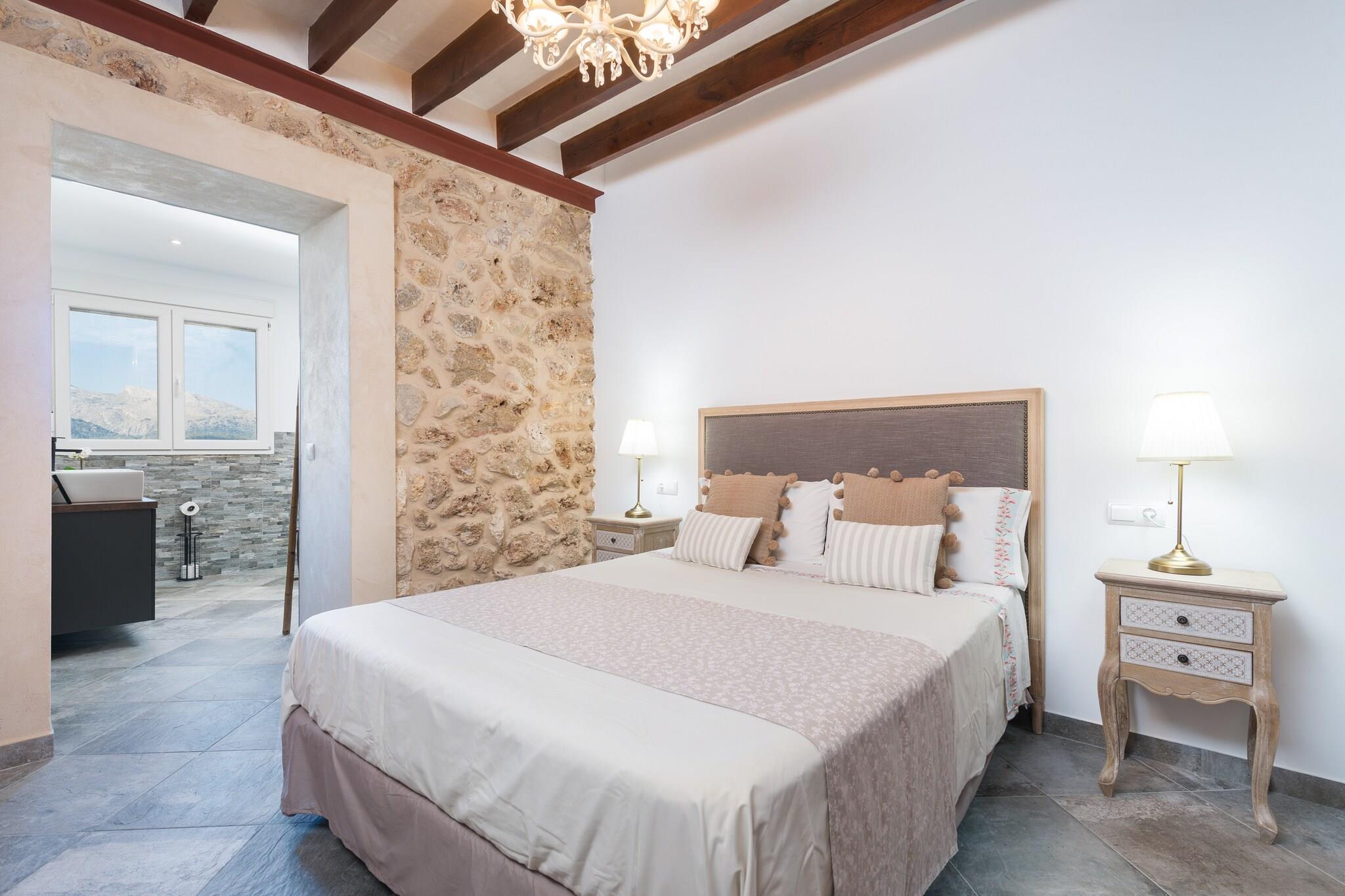 Mit einem besonderen Charme bietet dieses Haus alles, was Sie für einen rundum gelungenen Urlaub benötigen. Obwohl es im Dorf liegt, steht Ihnen eine Terrasse zur Verfügung, auf der Sie traumhafte Momente mit Blick auf die Berge und einem Panoramablick über das Dorf genießen können. Der Pool ist ein Salzwasserpool, misst 6 m x 4 m, hat eine Tiefe von 1,30 m bis 1,45 m und ist von 6 Sonnenliegen umgeben. Die Wohnräume verteilen sich über 2 Etagen. Vom Eingang, auf Strassenhöhe, führt Sie ein kleiner Eingangsbereich in den klimatisierten Wohnraum mit gemütlichem Sofa und Sesseln zum Entspannen oder Fersehen (Sat TV). Im Winter heizt hier ein Palletsofen. Anschließend kommen Sie in die klimatisierte Wohnküche, wo Sie auf einem Cerankochfeld kochen, dafür alle wichtigen Geräte und Utensilien zur Verfügung haben und sich auf lange Tischgespräche freuen. Es gibt eine Waschmaschine, Trockner, Bügelbrett und Bügeleisen. Auf dieser Etage befinden sich 3 klimatisierte Schlafzimmer mit je einem Schrank und en-Suite Bad mit Dusche. 2 der Zimmer haben je 2 Einzelbetten, 1 ist mit einem Doppelbett eingerichtet. Wenn Sie mit einem Baby reisen wird gerne ein Babybett und Hochstuhl bereitgestellt (auf Anfrage). Es gibt ein Gäste WC für alle Bewohner zugänglich. Eine Treppe führt ins Untergeschoss, wo sich der Billardraum und der Fitnessraum befinden. Búger ist ein kleines Dorf in der Inselmitte, perfekt für alle die in Ruhe abschalten möchten. Im Ort finden Sie, neben einem Lebensmittelladen für den täglichen Einkauf, auch ein paar gute Bars und Restaurants mit typischer Küche. Der nächste Strand, in Can Picafort, liegt ca 17,5km entfernt, mit dem Auto brauchen Sie ca. 15-20min. Es erwarten Sie ein fantastischer, feiner Sandtrand und klares Wasser, genau richtig um einen abwechslungsreichen Tag zu verbringen. Der nächste Golfplatz ist in Pollença, ca 15km entfernt. Ein Wechsel der Handtücher und der Bettwäsche während des Aufenthaltes ist inbegriffen. Eventuelle Nebenkosten müssen beim Anbieter nachgefragt werden. Haustiere sind verboten. Partys oder ähnliche Veranstaltungen sind nicht gestattet. Es gibt Freiluftparkplätze für 3 Autos. Entfernungen Strand: 17.5 km - Platges de Muro Flughafen: 45.7 km - Son Sant Joan Golfplatz: 15 km - Golf Pollença Ortsmitte: 0 km - Búger Bahnhof: 5.2 km - Sa Pobla Bushaltestelle: 0.35 km - Búger Fähre: 21.3 km - Puerto de Alcúdia Krankenhaus: 9.7 km - Hospital Comarcal d'Inca Die Gäste werden freundlich gebeten, sämtlichen Müll zu entsorgen und sicherzustellen, dass die Unterkunft vor der Abreise ordnungsgemäß aufgeräumt ist. Andernfalls werden 90 EURO von der Kaution einbehalten. Touristen Lizenz: ETV/10788Einheitsregister: ESFCTU0000070220005090580000000000000000000ETV/107884Auf den Balearen gibt es eine Touristensteuer, die Ecotasa genannt wird. Diese Steuer muss vom Gast bezahlt werden. Der zu zahlende Betrag beträgt zwischen 0.55EURO pro Nacht und Gast in der Nebensaison und 2.2EURO pro Nacht und Gast in der Hochsaison. Ab dem 9. Tag reduziert sich die Steuer um die Hälfte. Personen unter 16 Jahren sind davon ausgenommenHomerti - Central de Reservas CR/33