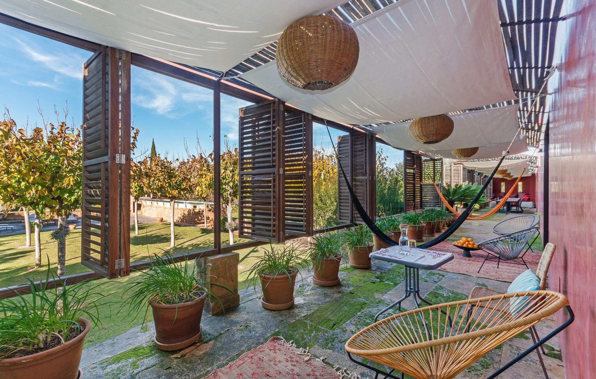 Das Anwesen verfügt über einen einzigartigen Swimmingpool, der aus einem ehemaligen Wasserreservoir kreativ umgestaltet wurde und einen erfrischenden Rückzugsort nach dem Sonnenbad bietet. Abgeschiedene Sitzbereiche, oft begleitet von ruhigen Wasserspielen, schaffen ruhige Wellness-Oasen, perfekt für eine schattige Siesta. Eine Außensauna lädt zum Entspannen ein und für genussvolle Grillabende steht ein Weber-Grill zur Verfügung.