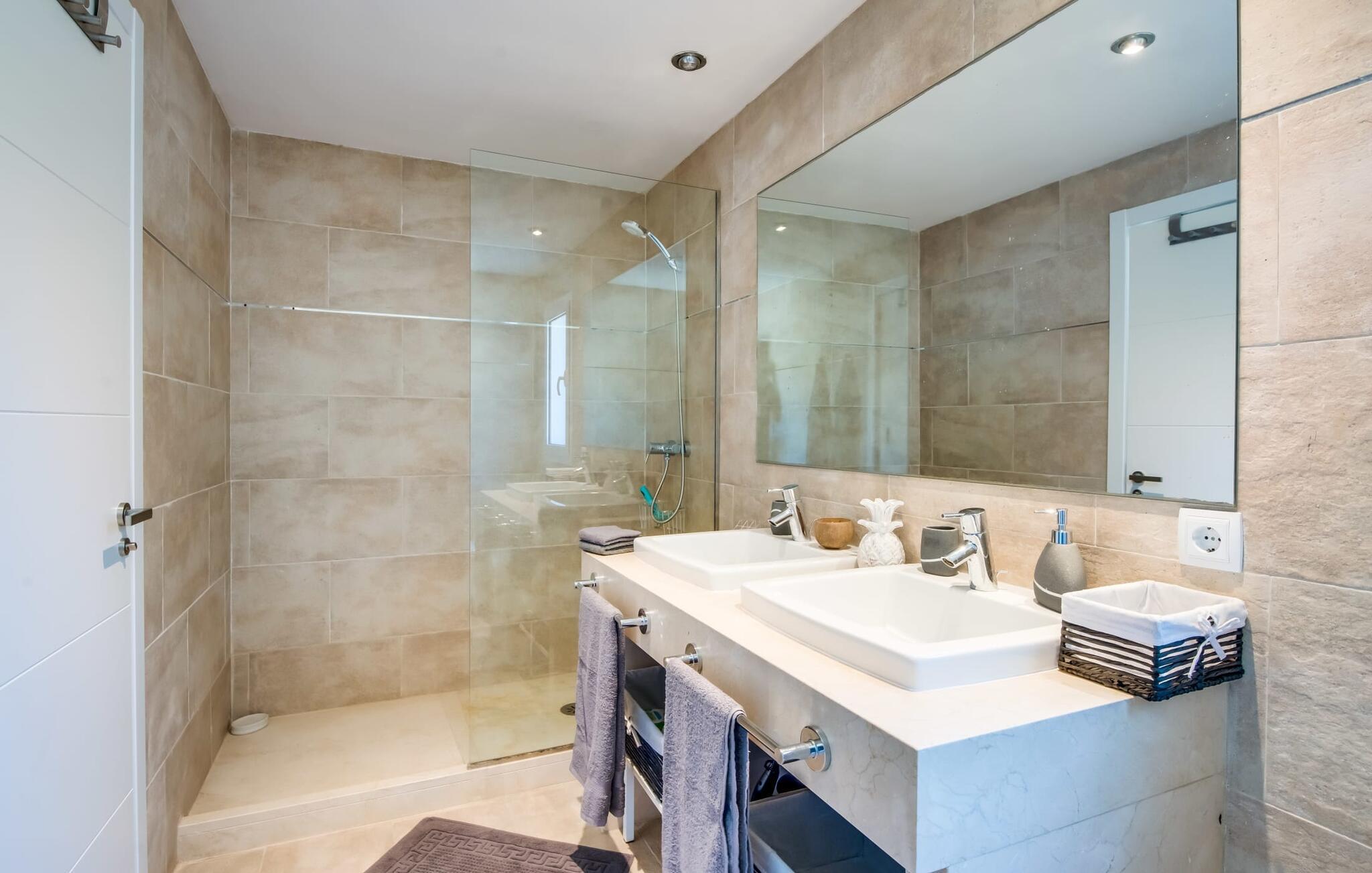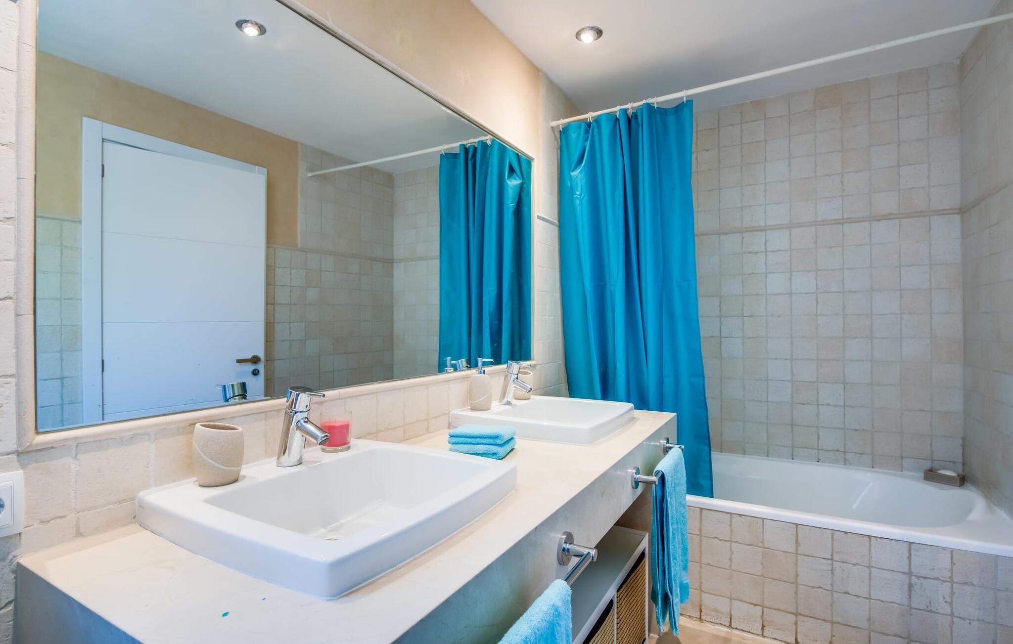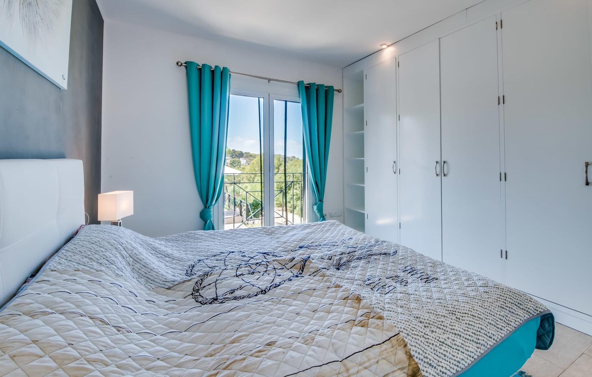 Bis hierher ist so viel klar geworden: Zeit unter freiem Himmel kann hier als echte Quality Time verbracht werden. Das Innere dieser Villa auf Mallorca hingegen lädt zweifellos dazu ein, ausgiebige Stunden im Innenbereich zu verbringen. Hier sind Ausstattung, Design und Dekoration umfassend, aber nie aufdringlich. Viel Weiß bildet den Rahmen für allerlei farbenfrohe Accessoires und Details, die durch ihre Platzierung im Raum eindrucksvoll zur Geltung kommen und ein äußerst geschmackvolles Ambiente verbreiten. Und so könnte es sein, dass man auf dem Sofa sitzt und glaubt, mitten in einem Schöner-Wohnen-Katalog zu sein... – hier fühlt man sich ganz leicht zu Hause! Auch die hervorragende Ausstattung trägt dazu bei, dass Sie hier rundum ankommen und sich in dem vorhandenen Komfort wohlfühlen können. Die offene Gestaltung von Wohn-, Ess- und Küchenbereich unterstreicht den Gemeinschaftscharakter dieses Ferienhauses. Auch der Raum, der sich weiter zur Eingangshalle und zum Treppenhaus hin öffnet, unterstreicht – auch mit den imposanten Säulen – die Großzügigkeit des Hauses, das mit 280 m² Wohnfläche tatsächlich viel Freiraum bietet. Stilvolle Ruheräume verteilen sich auf verschiedene Ebenen: Ein paar Stufen tiefer liegen zwei Doppelschlafzimmer und zwei Badezimmer, eines davon en suite. Im Obergeschoss befinden sich die beiden weiteren Schlafzimmer und Badezimmer, eines davon en Suite. Wir von Fincallorca geben diesem Haus, das auf ganzer Linie überzeugt, eine besondere Empfehlung!