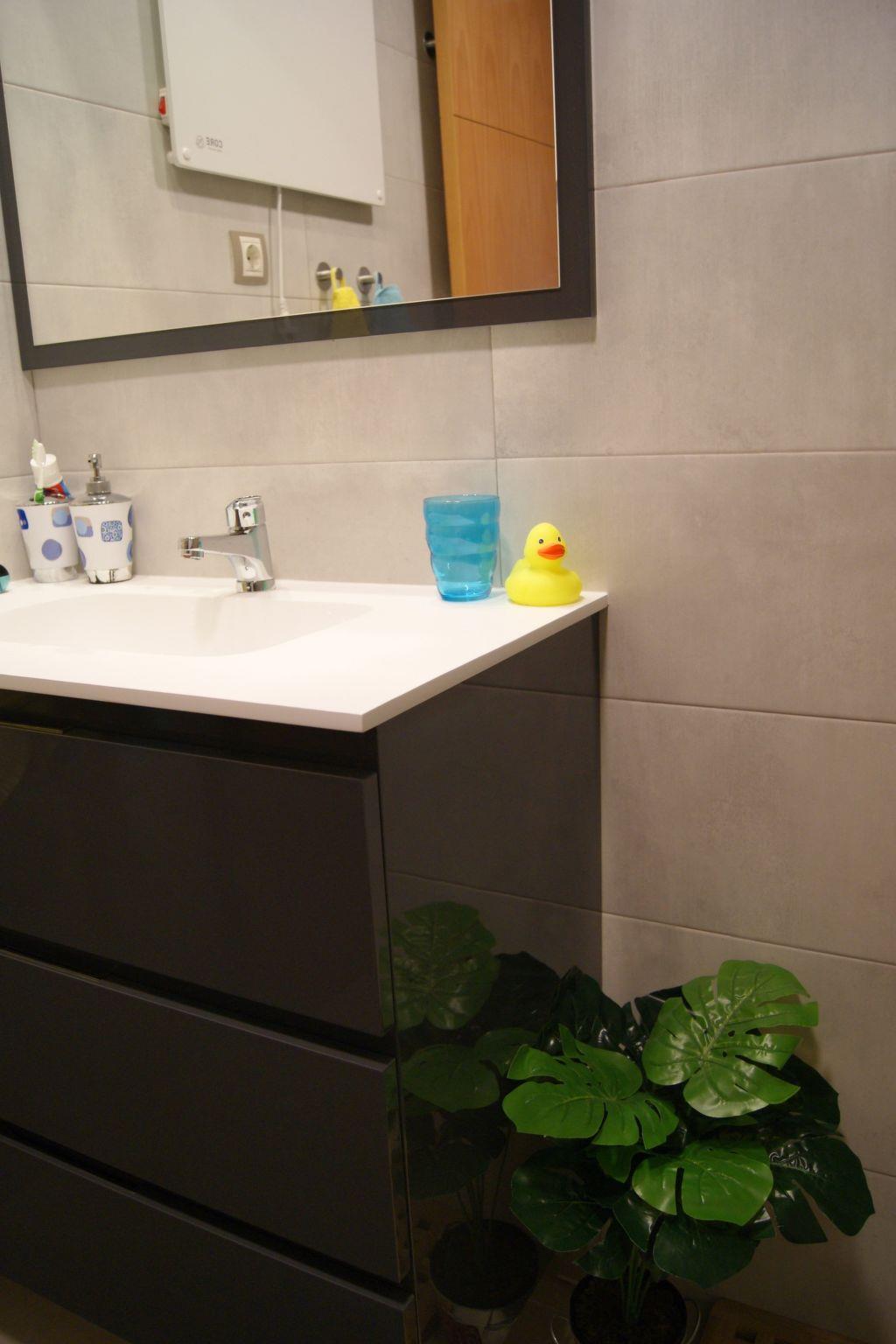 Die Wohnung verfügt über eine unterirdische und geschlossene Tiefgarage, in der zwei Stellplätze zur Wohnung gehören. Mit dem Aufzug gelangt man in den 1. Stock, wo sich die große überdachte Terrasse der Wohnung mit Blick auf die Stadt und das Mittelmeer befindet. Die gesamte Wohnung befindet sich im Erdgeschoss. Sowohl das Wohnzimmer als auch das Hauptschlafzimmer bieten Zugang zur Terrasse. Es gibt auch eine voll ausgestattete Küche mit allen Geräten (Backofen, Herd, Geschirrspüler, Waschmaschine, Kühlschrank mit Gefrierfach, Mikrowelle, Toaster, Kaffeemaschine usw.) und ein komplettes Badezimmer mit Regendusche, Waschbecken und Toilette. Die gesamte Wohnung ist mit einer Klimaanlage ausgestattet. An kalten Abenden in der Wintersaison fungiert sie zusätzlich als Heizung. Schnelles WiFi ist ebenfalls in der gesamten Wohnung verfügbar.