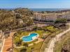 Treten Sie aus dem Wohnzimmer auf die Terrasse, von der Sie einen herrlichen Blick auf das Meer genießen. Erfrischen Sie sich nach Belieben im Gemeinschaftspool.