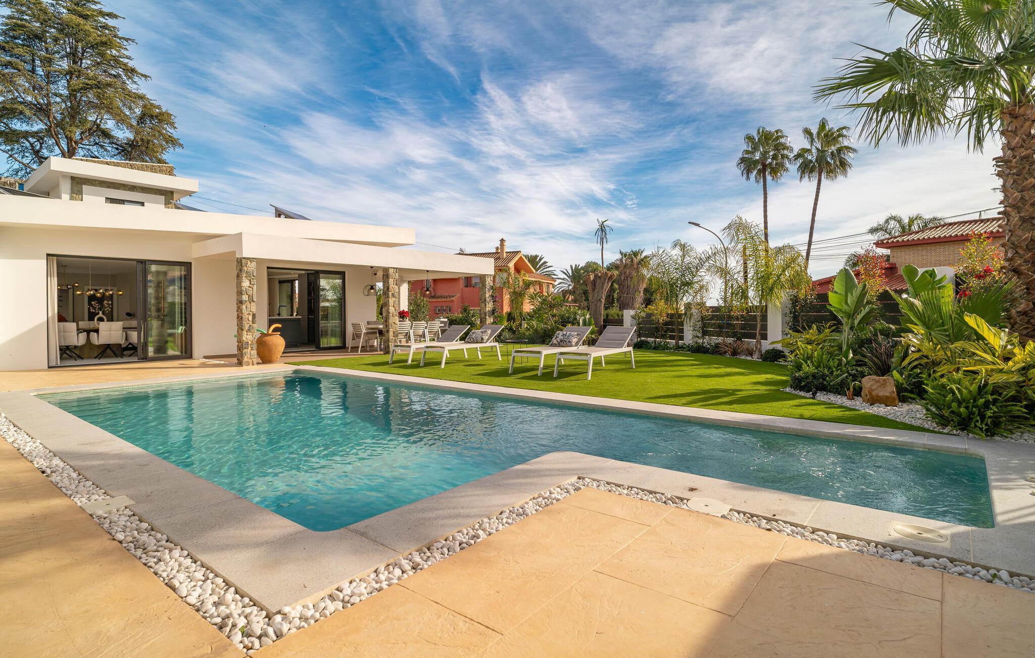 Die Außenbereiche sind ebenso beeindruckend. Genießen Sie die Mittelmeersonne auf den privaten Terrassen, erfrischen Sie sich mit einem Bad in Ihrem funkelnden Pool oder verbringen Sie unvergessliche Abende am Grill zusammen mit Freunden oder der ganzen Familie.